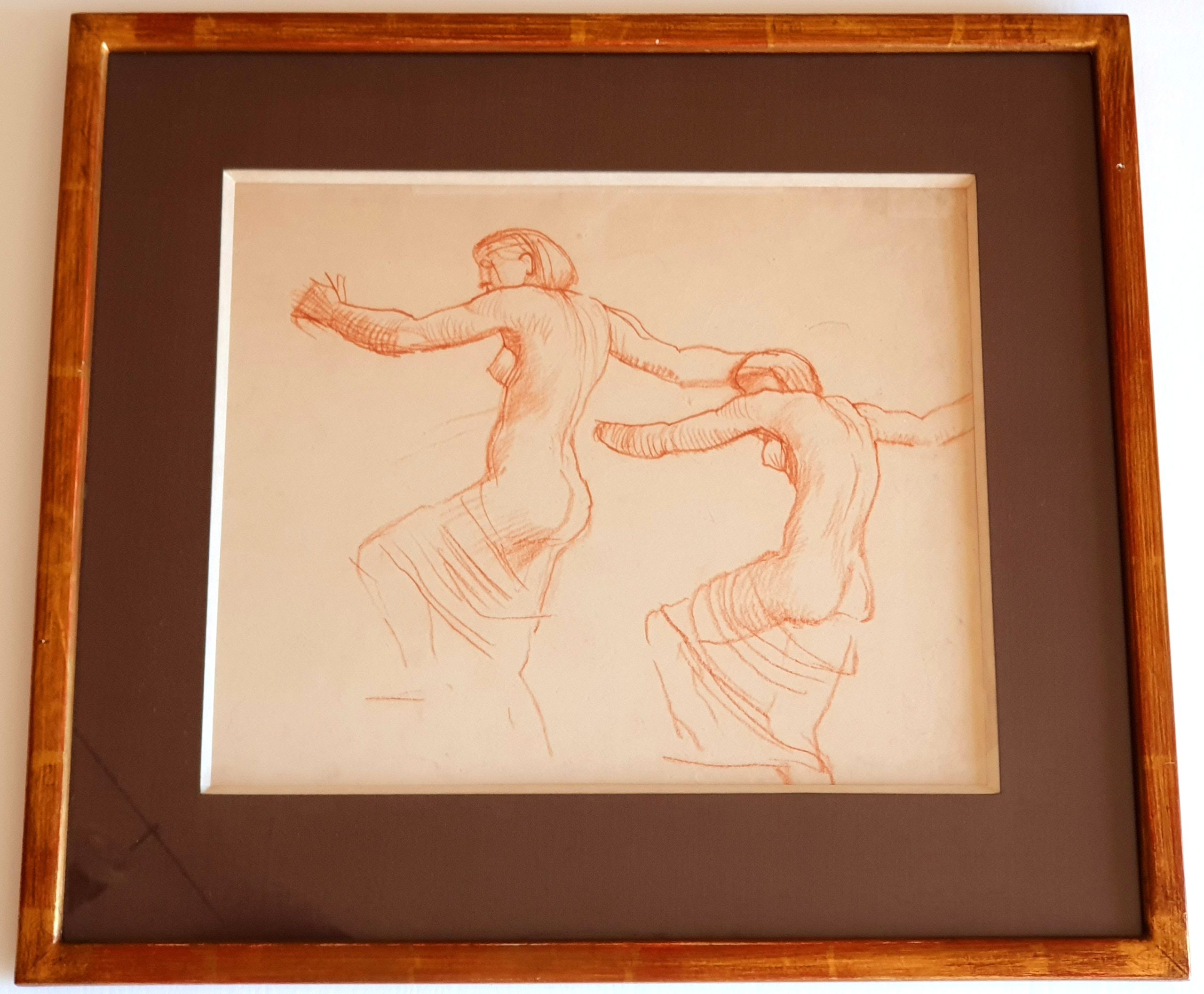 Théophile-Alexandre Steinlen (1859-1923), « Etudes de deux égyptiennes nues dansant », Sanguine.