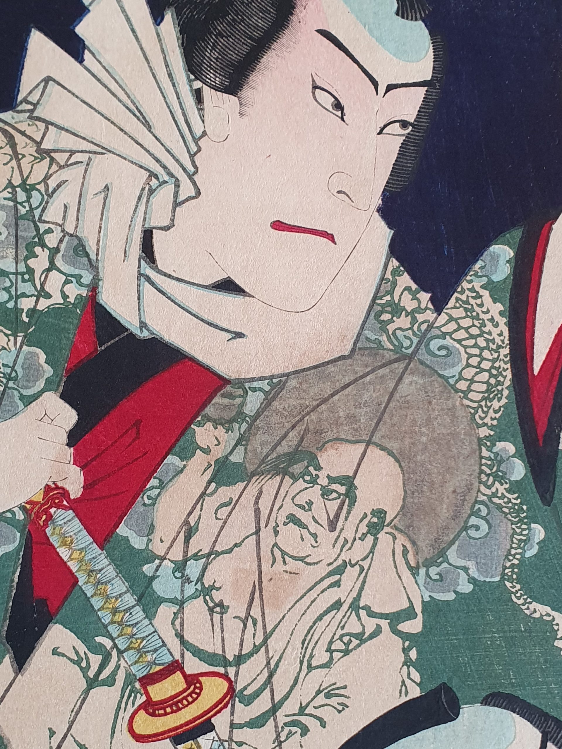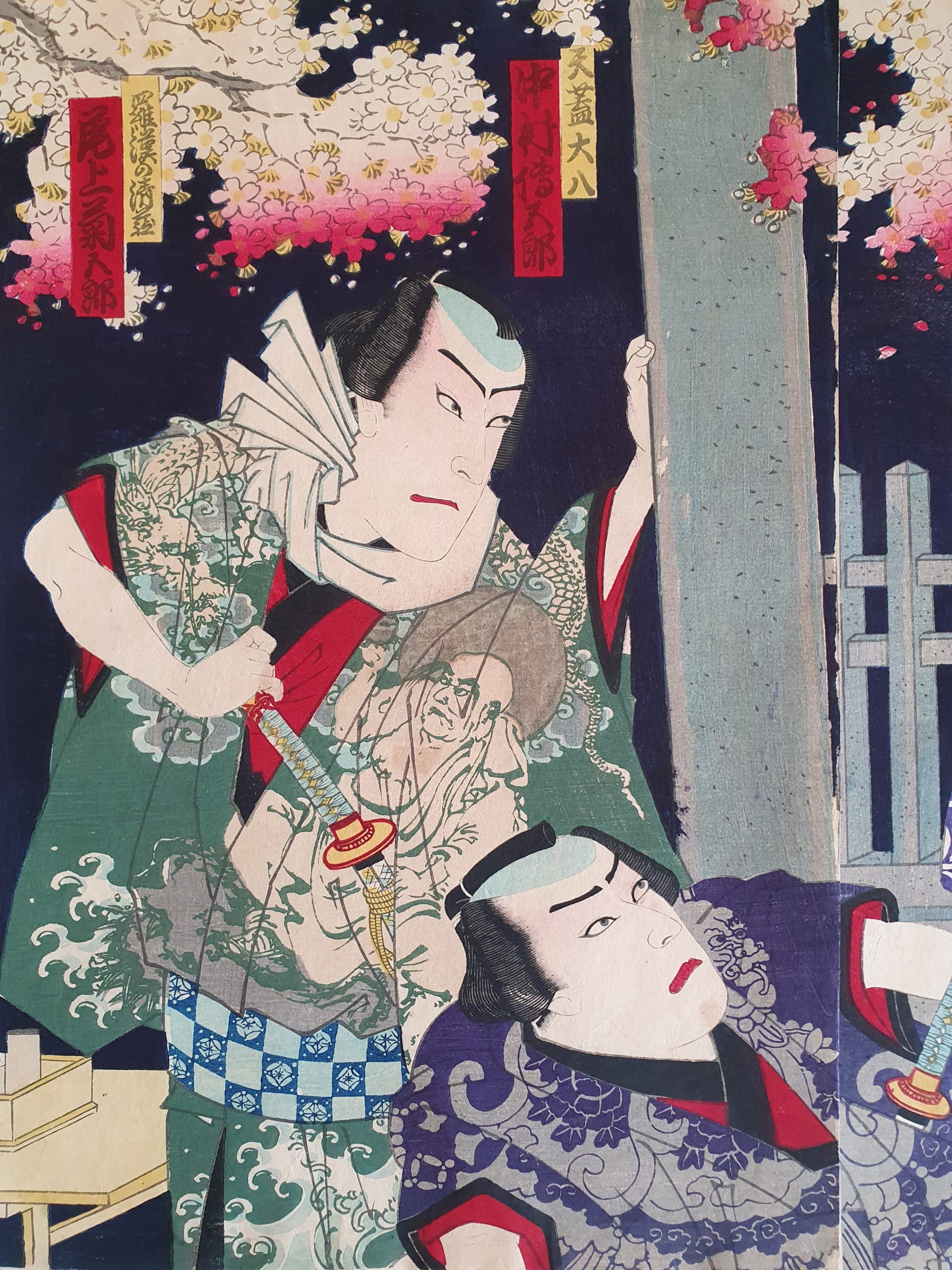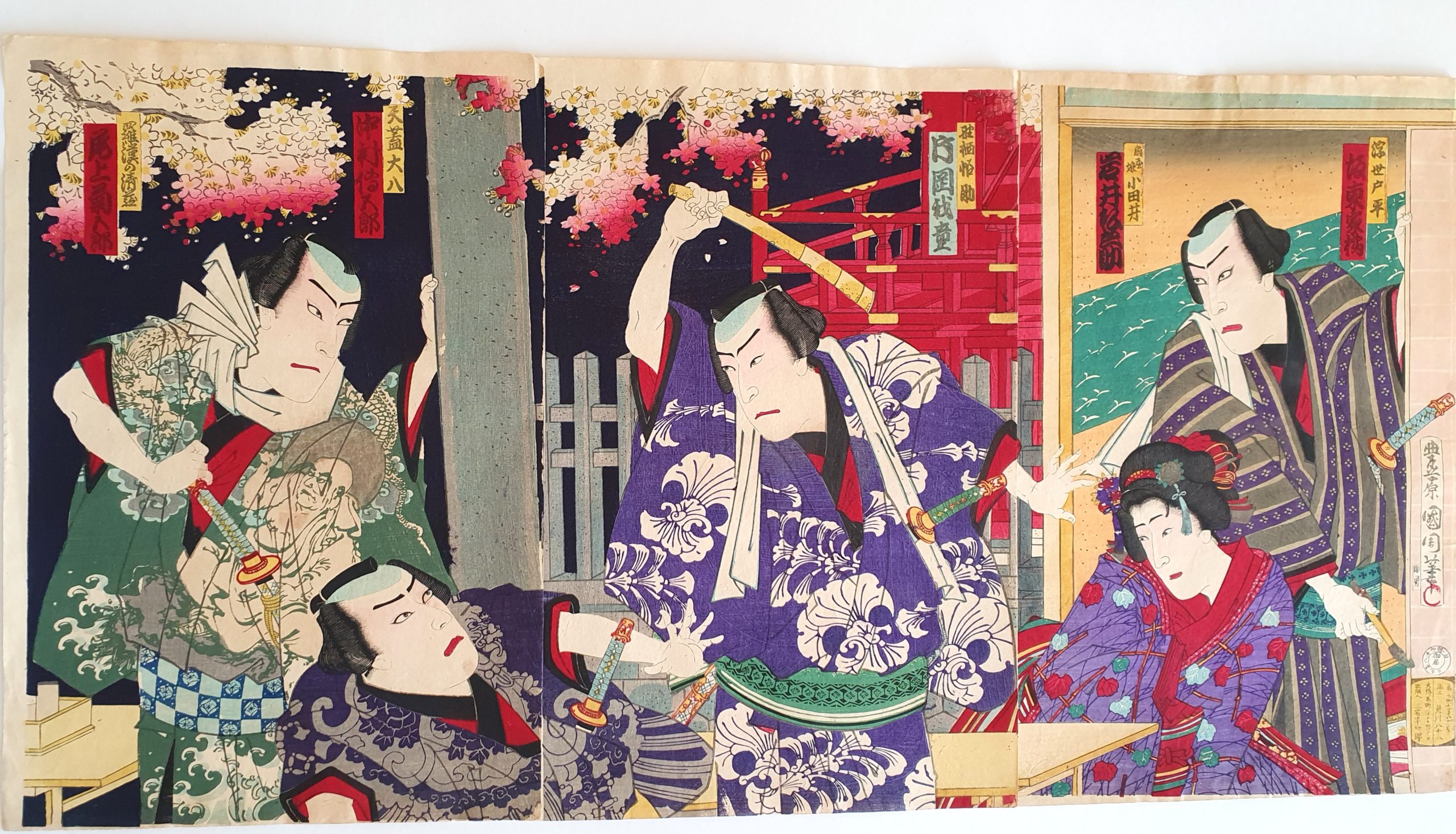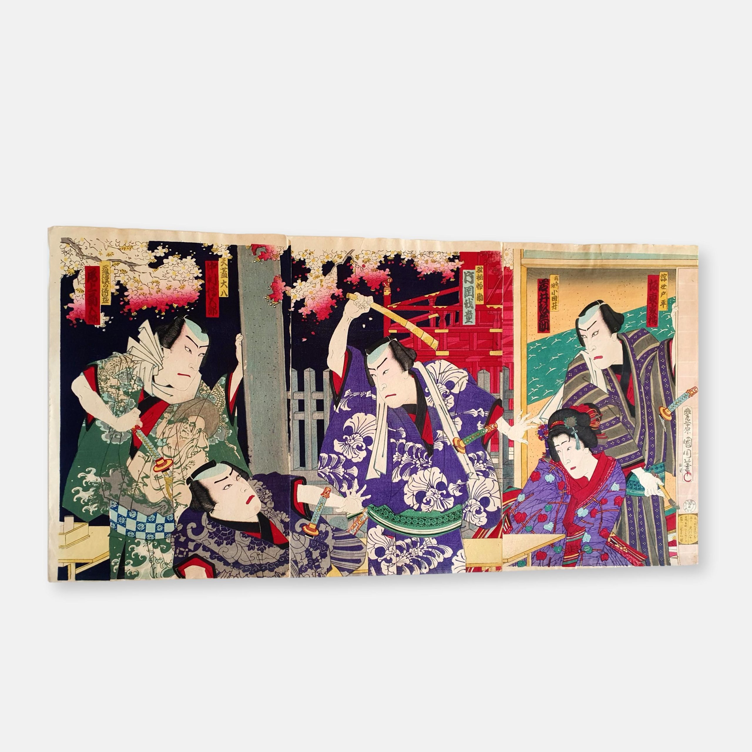 TRIPTYQUE, oban, Suibodai Shinshu Matayoku- scènes de Kabuki, sur papier japon Washi.