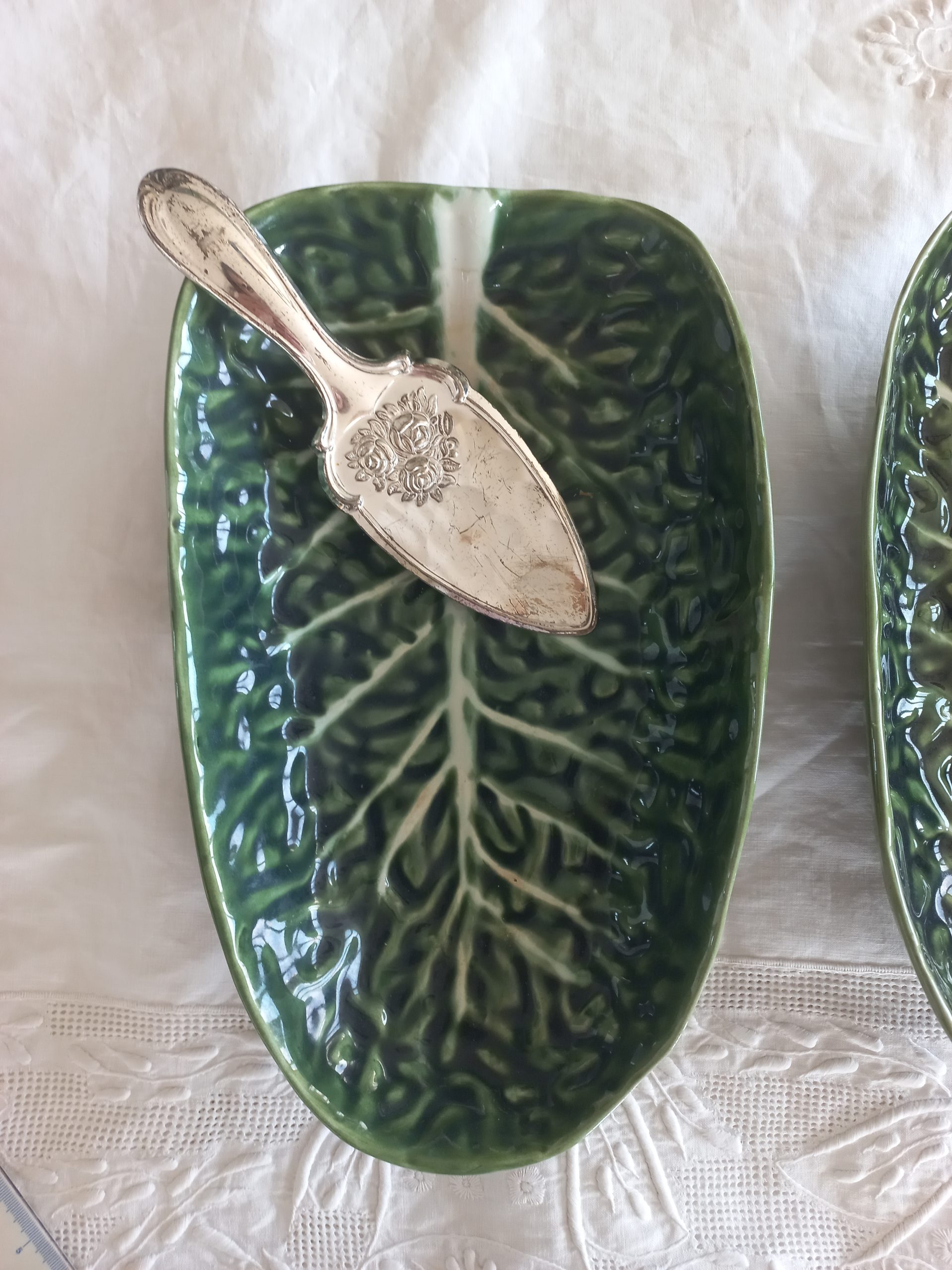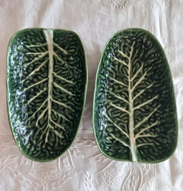 2 plats barbotine feuille de choux