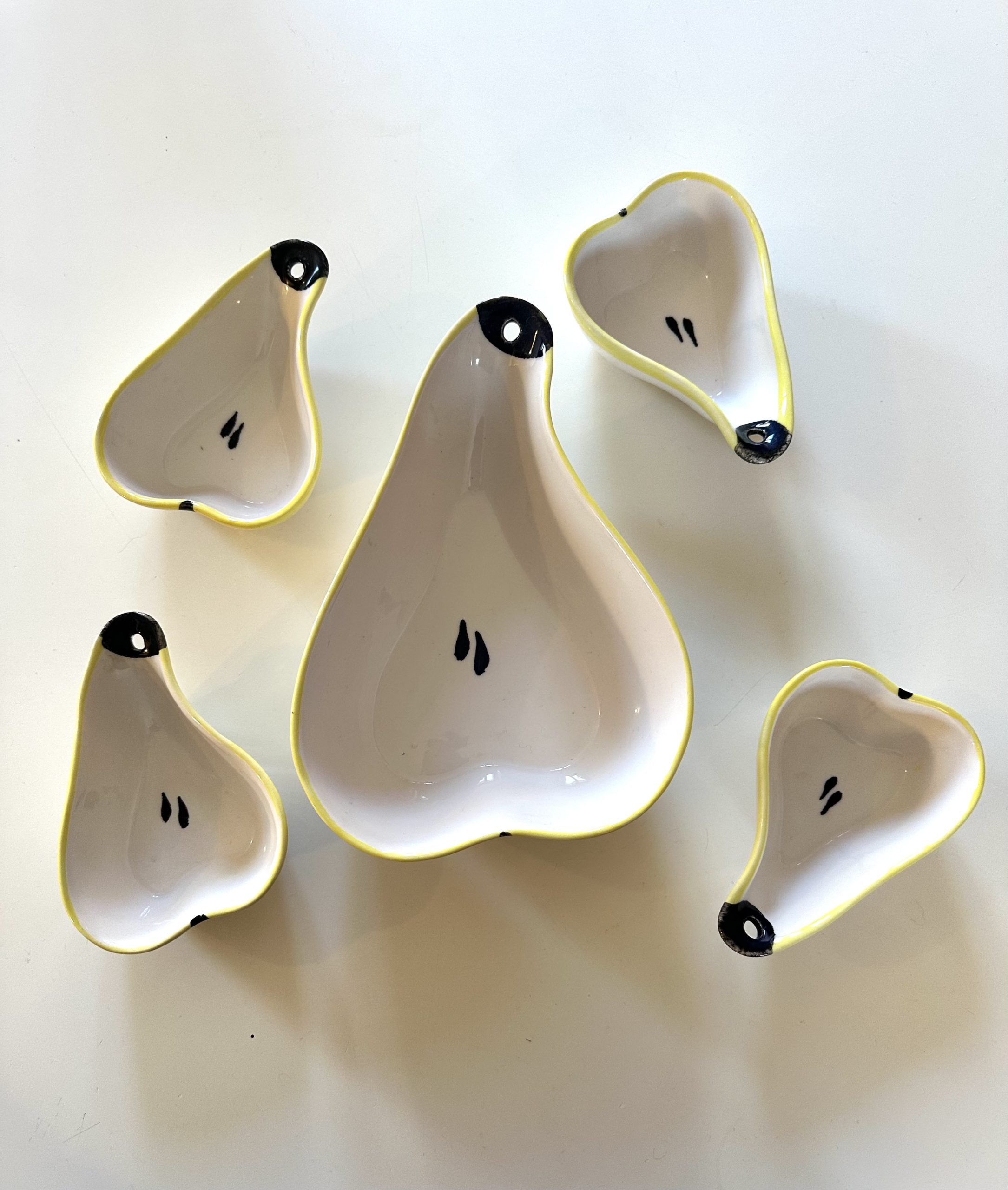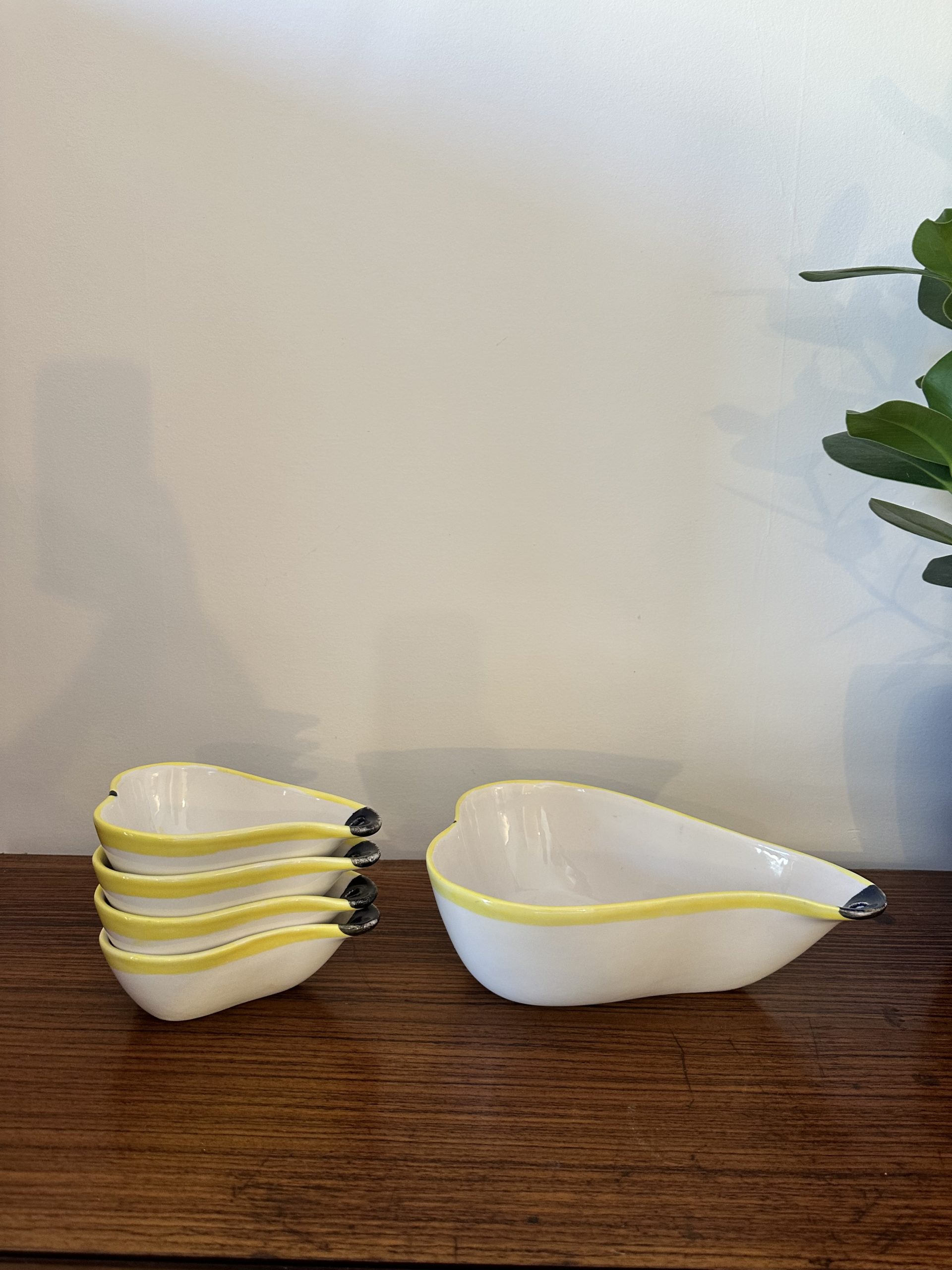 Ensemble de 5 bols vintage en céramique, made in Italy M.A.C Salerno, illustrant des poires.