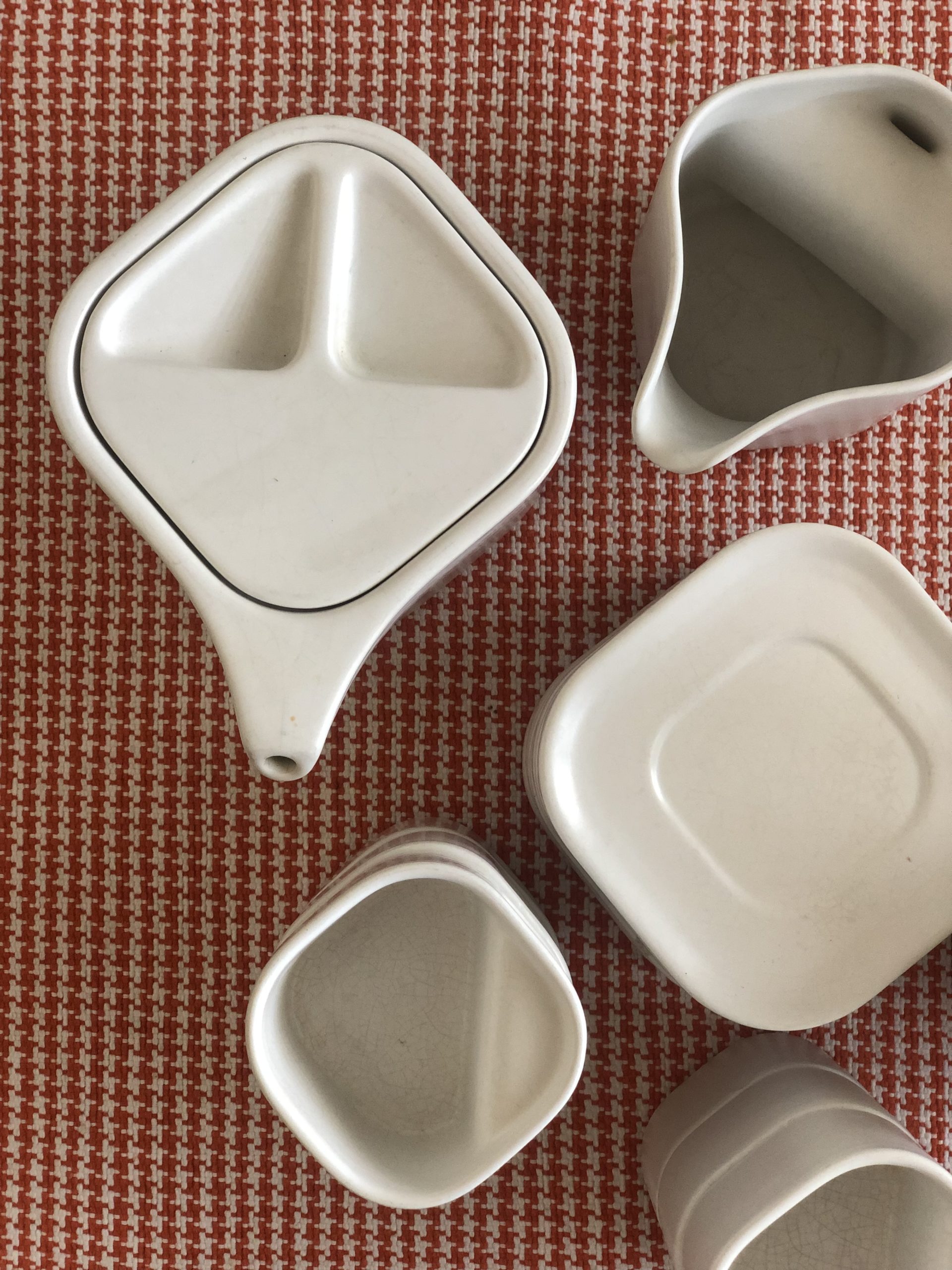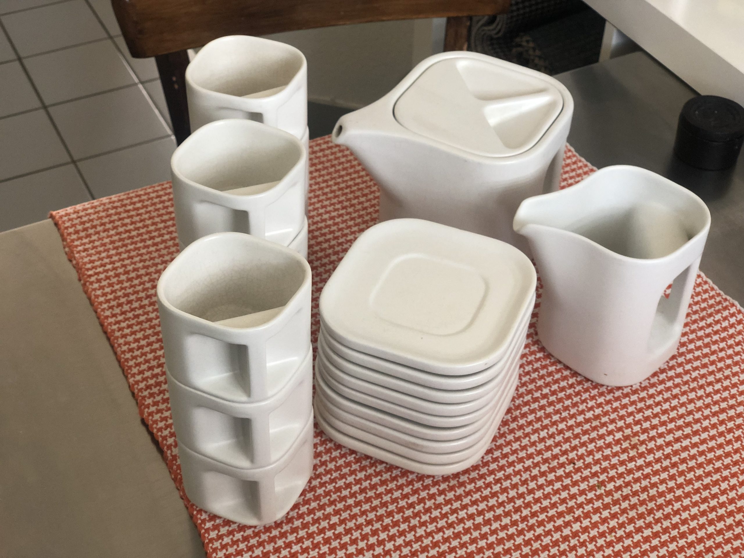 Ensemble de café italien, Makio Hasuike, Avant garde, Arnolfo di Cambio, céramique des années 70, Ravelli Laveno, ensemble de café ou thé.