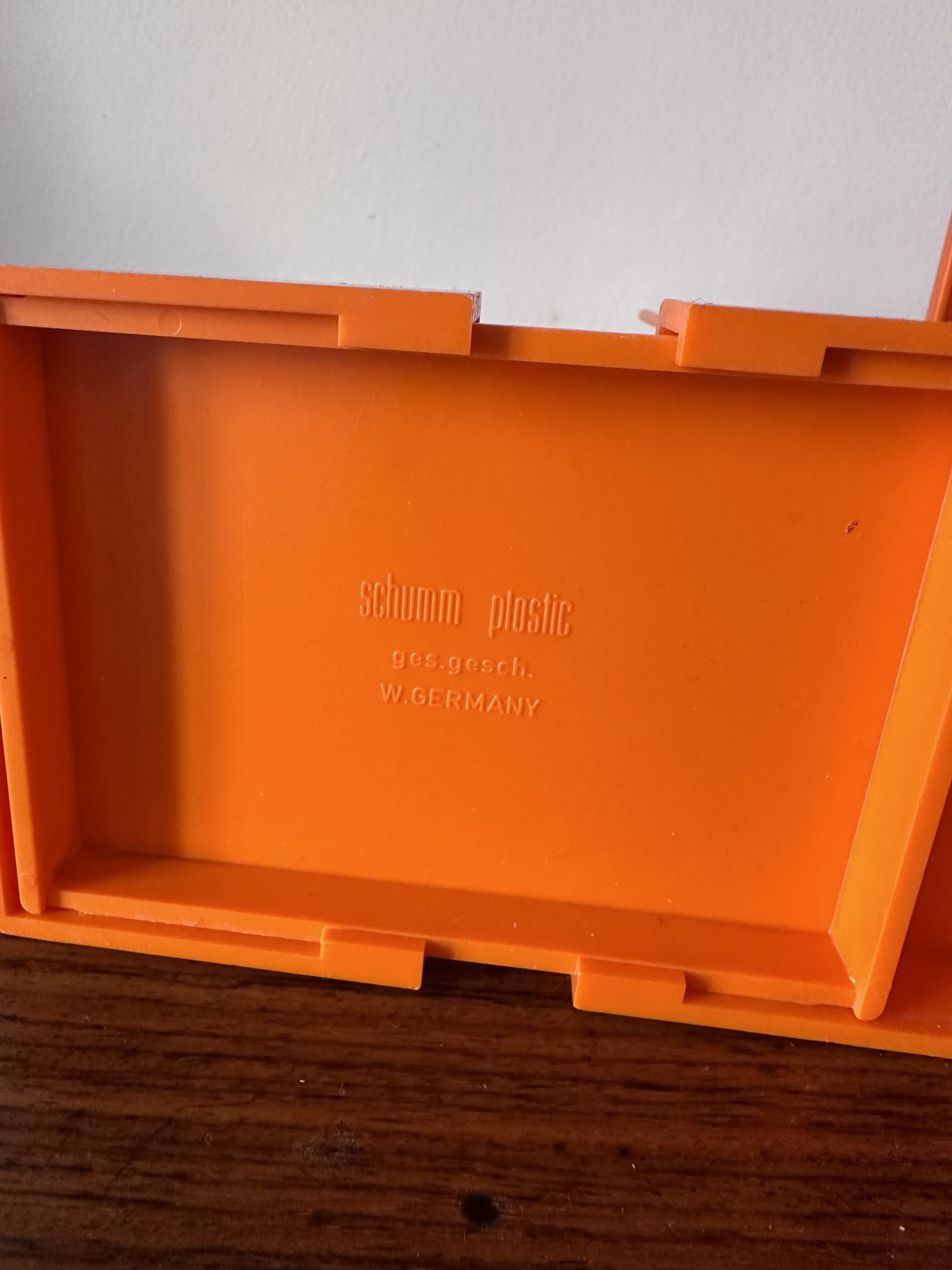 Très belle ligne plastique, couleur orange franche, look graphique et fonctionnel, parfait pour une cuisine vintage, un intérieur pop ou une collection d’objets design des années 1970.