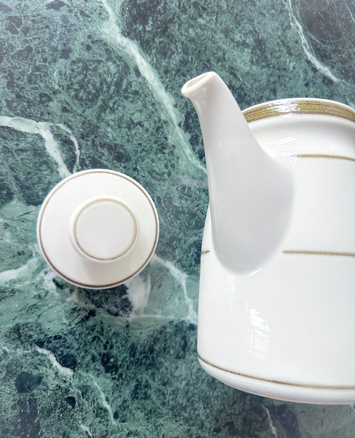Cette annonce est la théière- cafetière seule (Il est possible de compléter avec des tasses, soucoupes, pichet, sucrier et autres assiettes du même service dans mes autres annonces.)