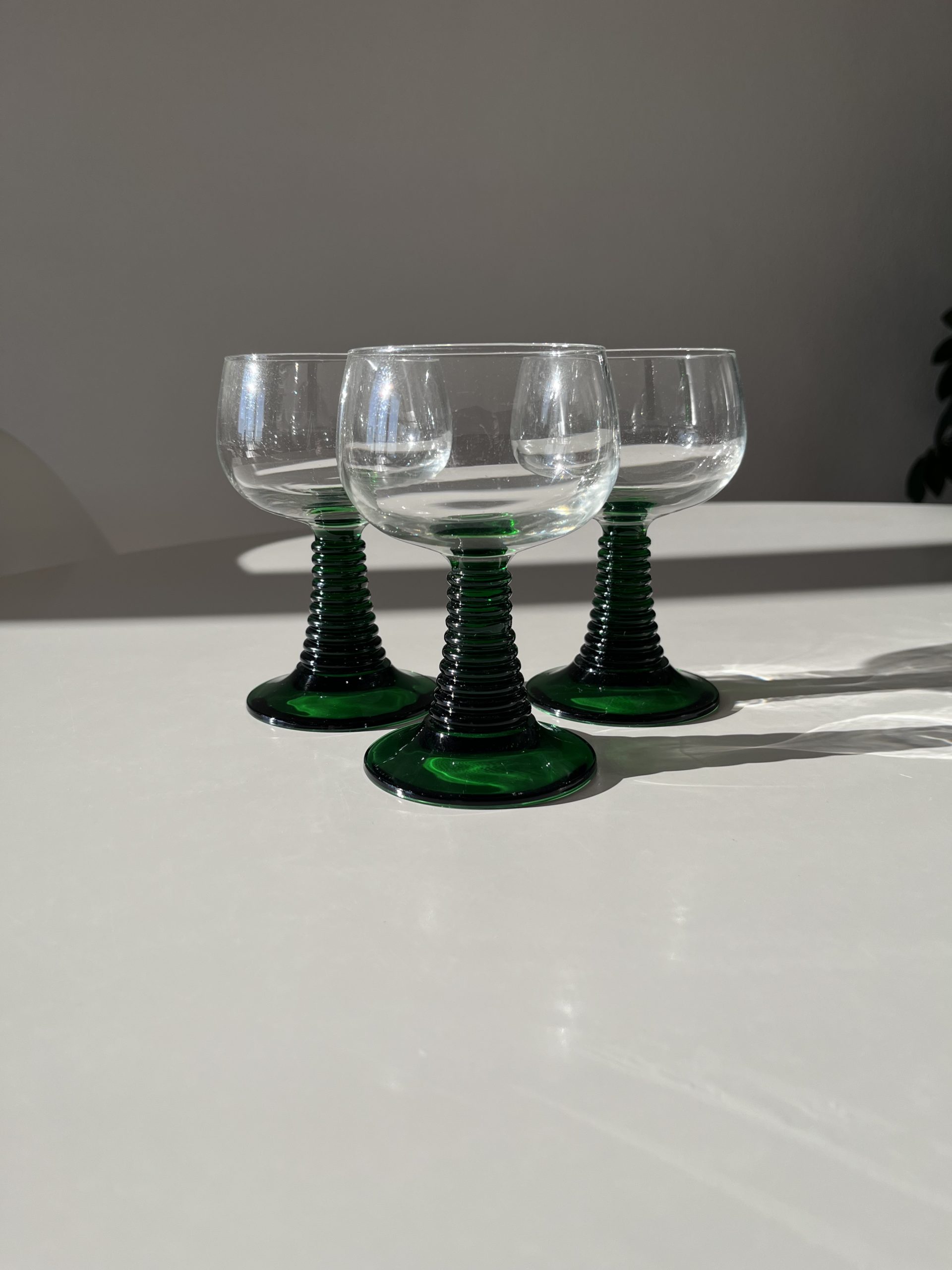 Trio de verre au pied vert