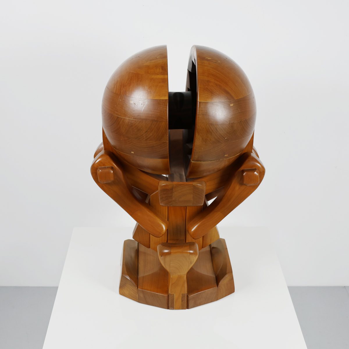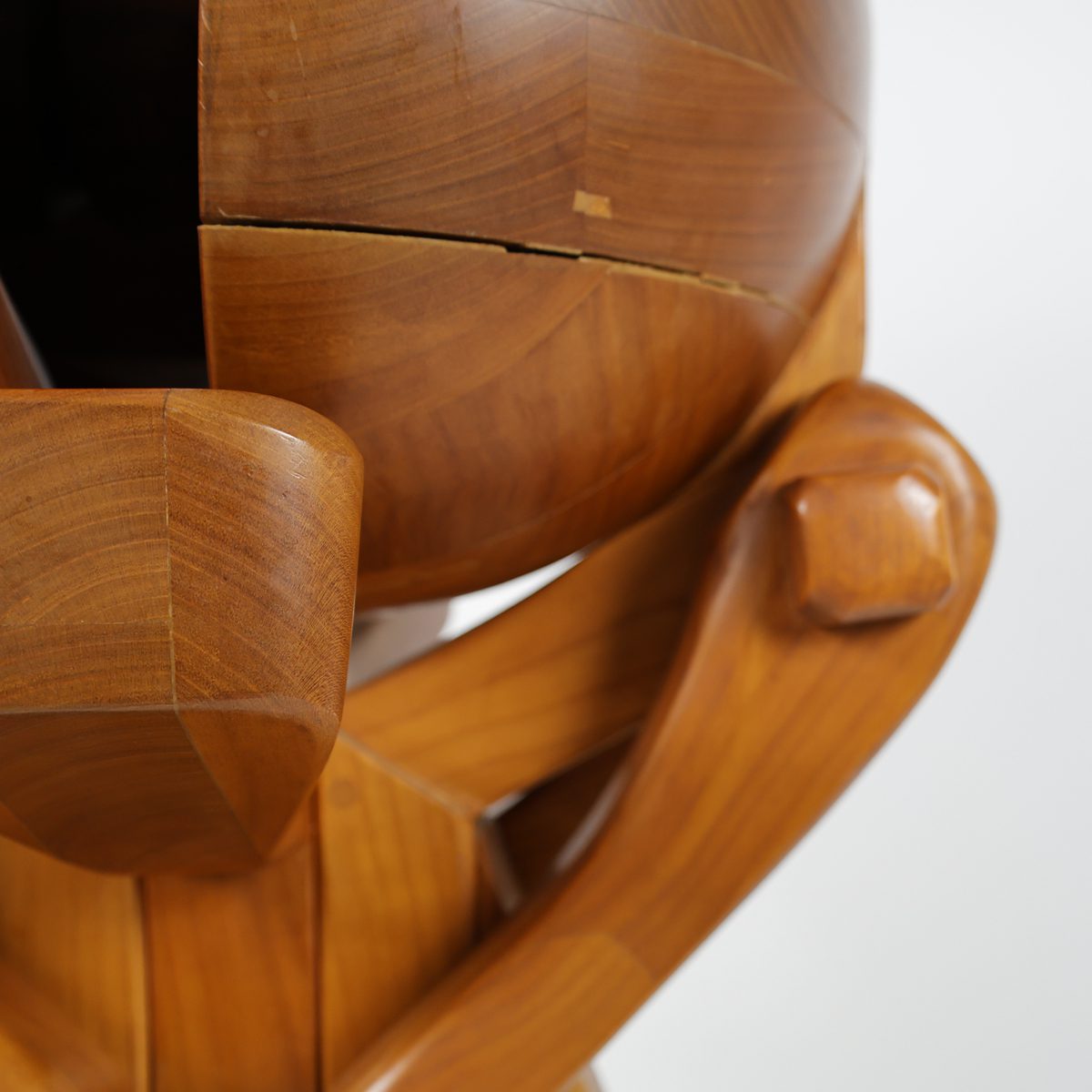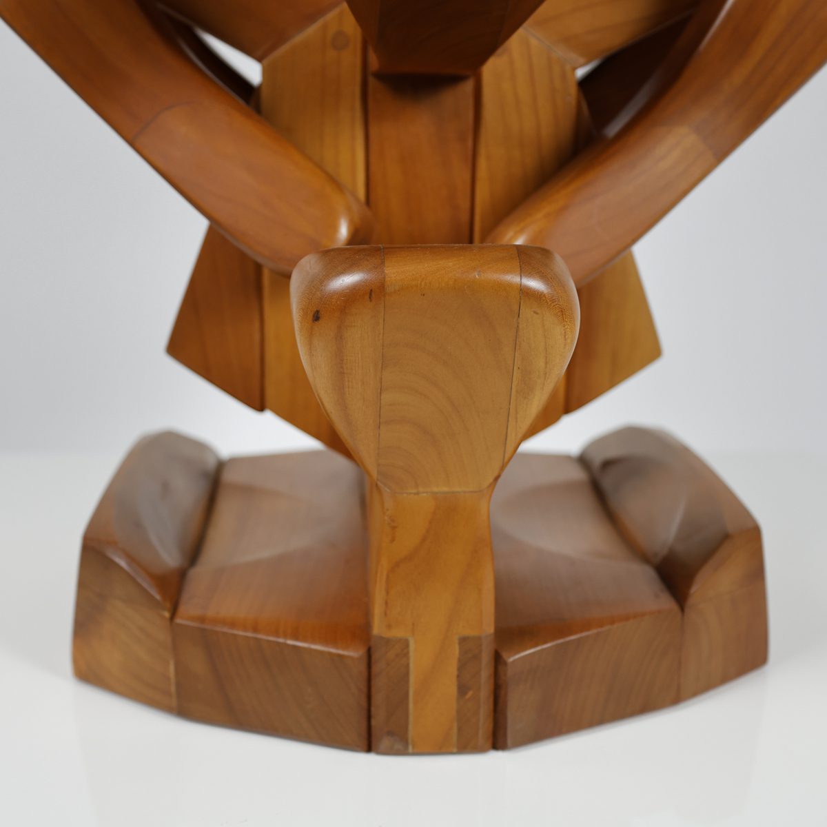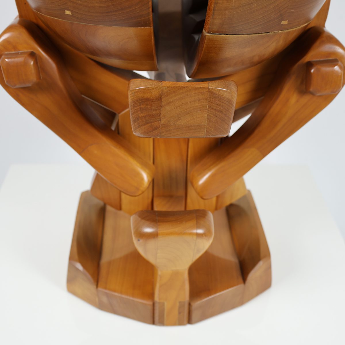 Grande sculpture en bois brutaliste de l’artiste suisse André Condé, elle est en bon état.