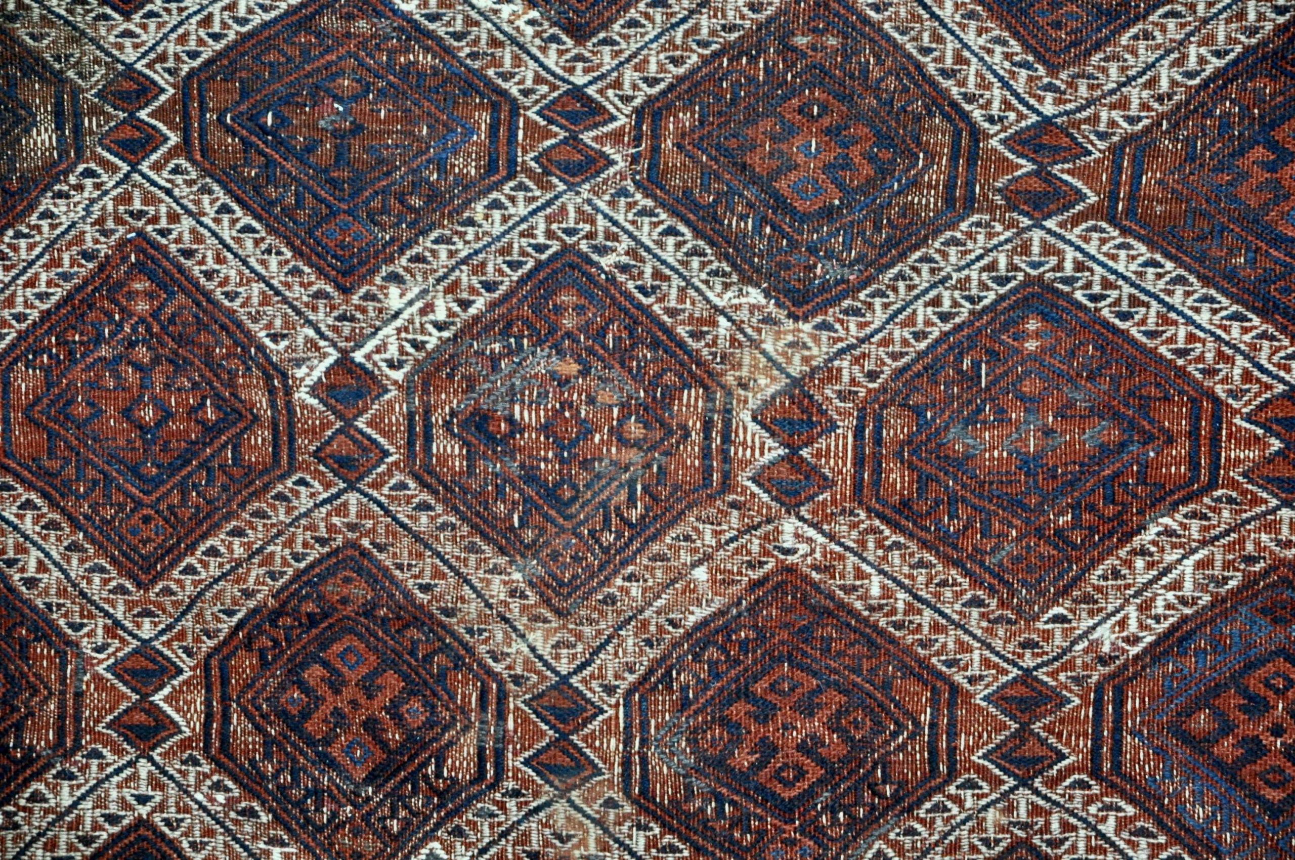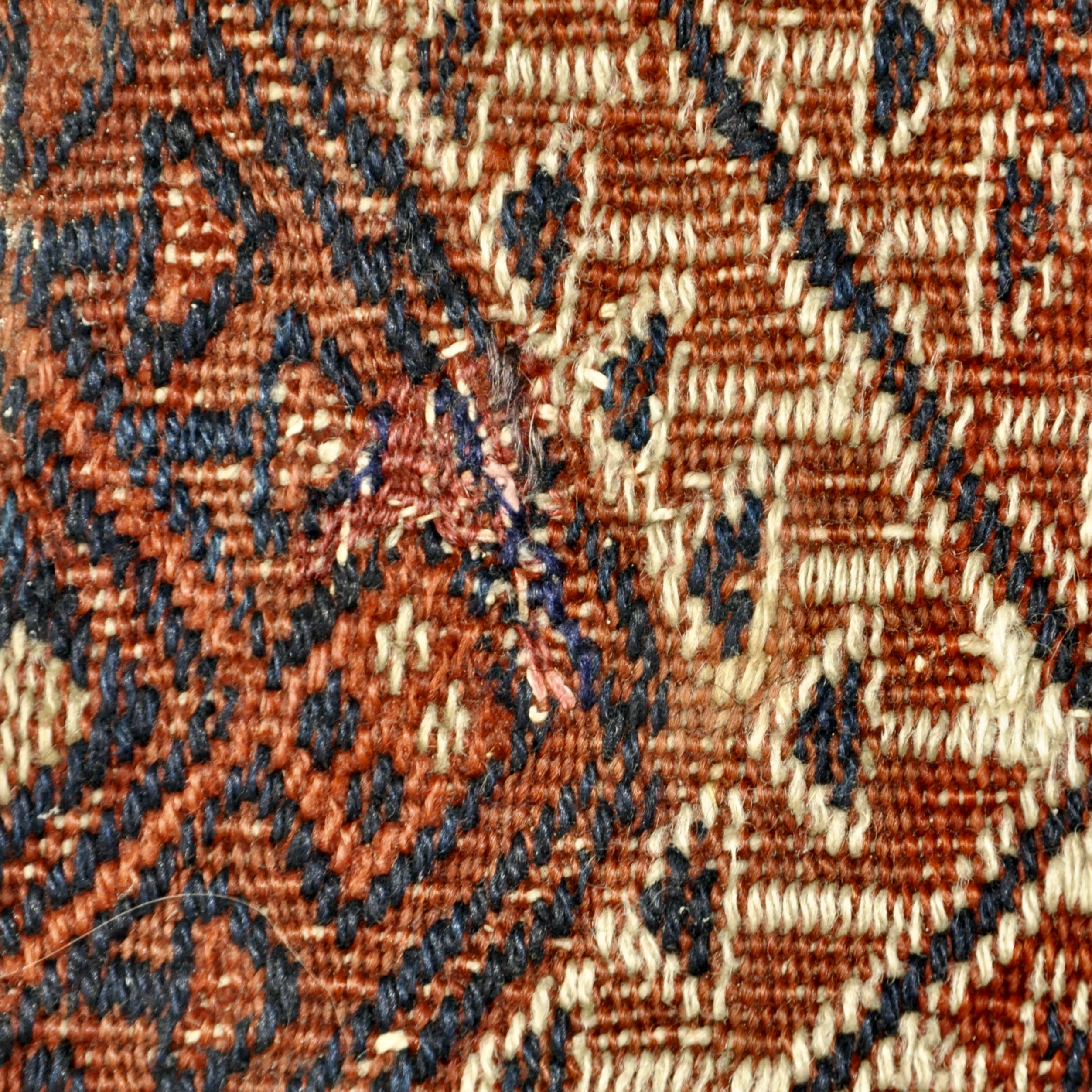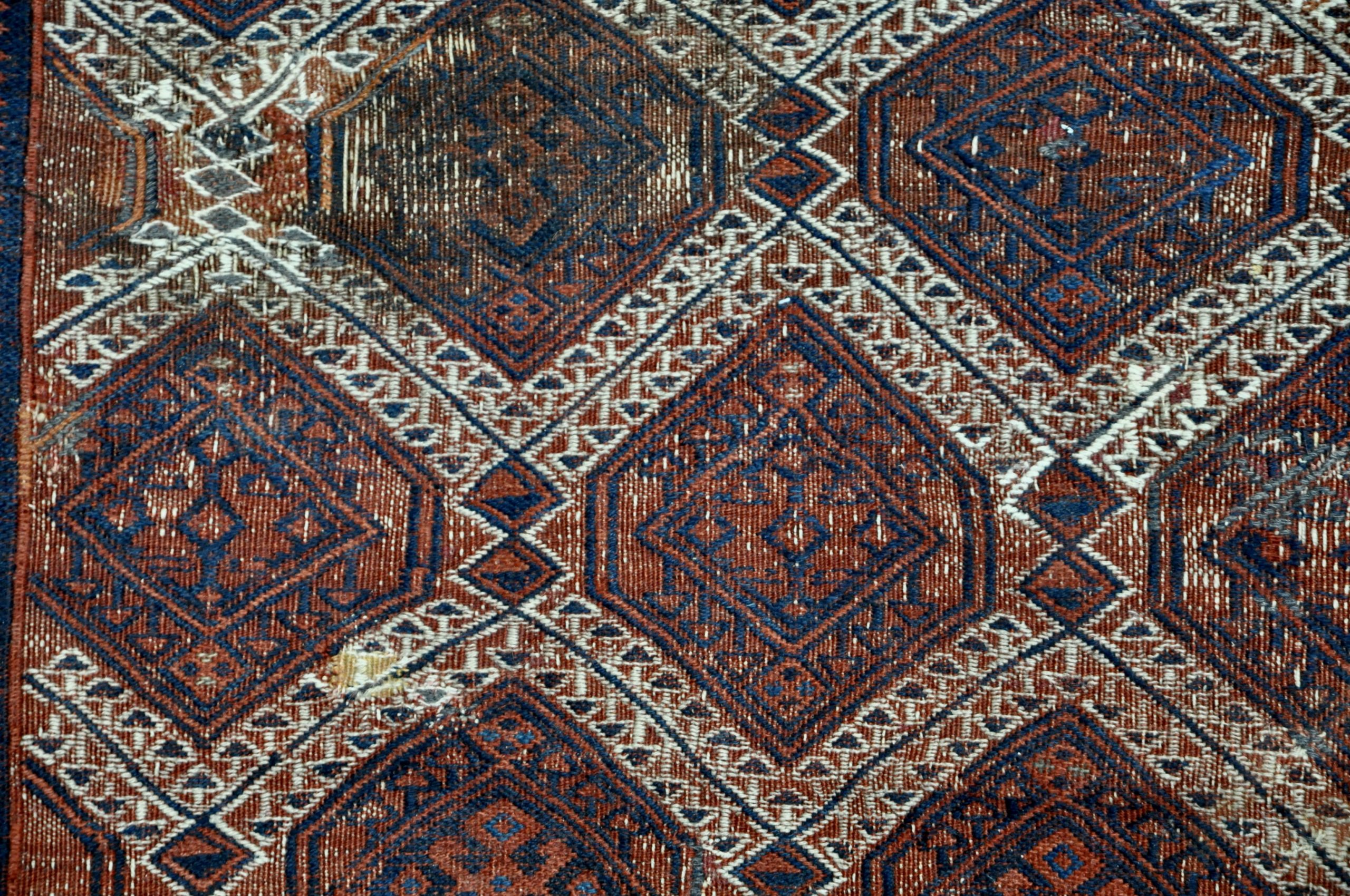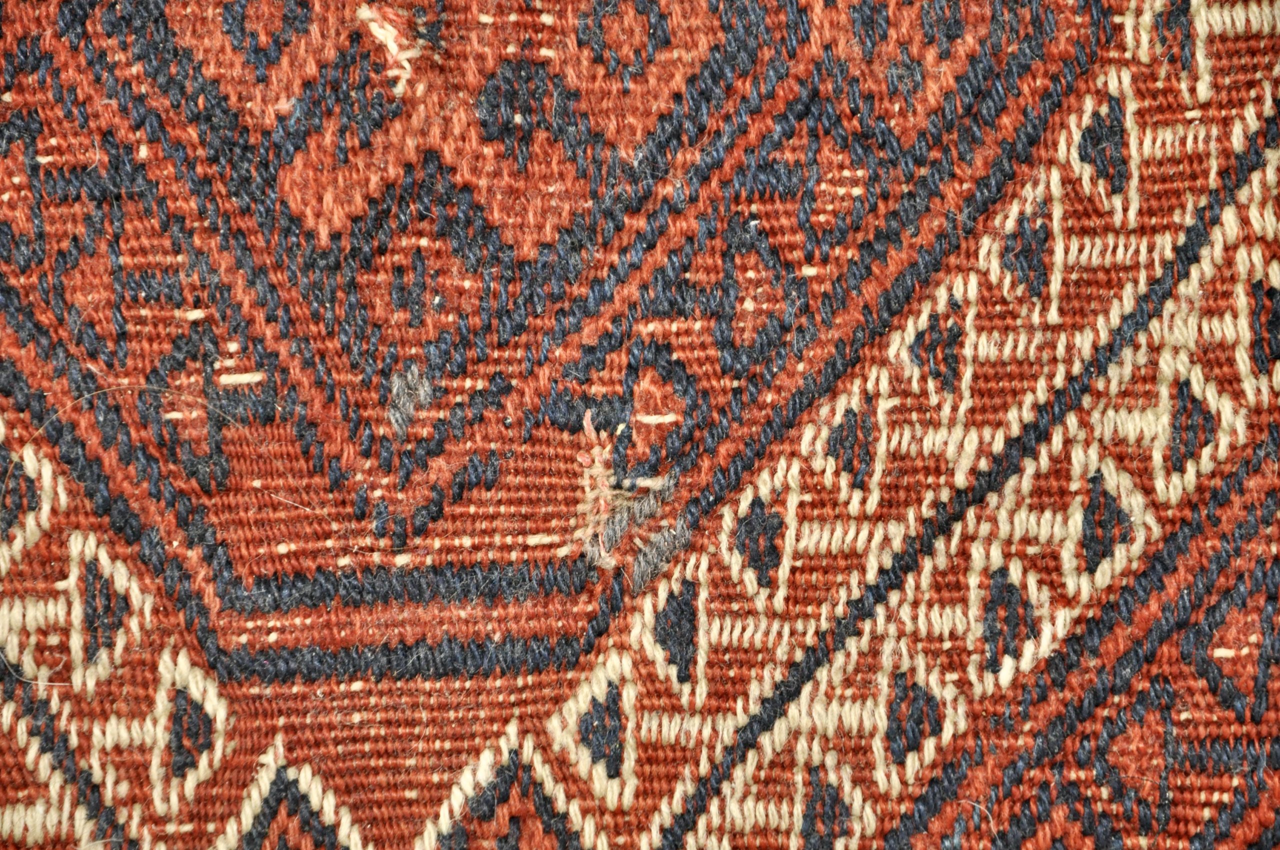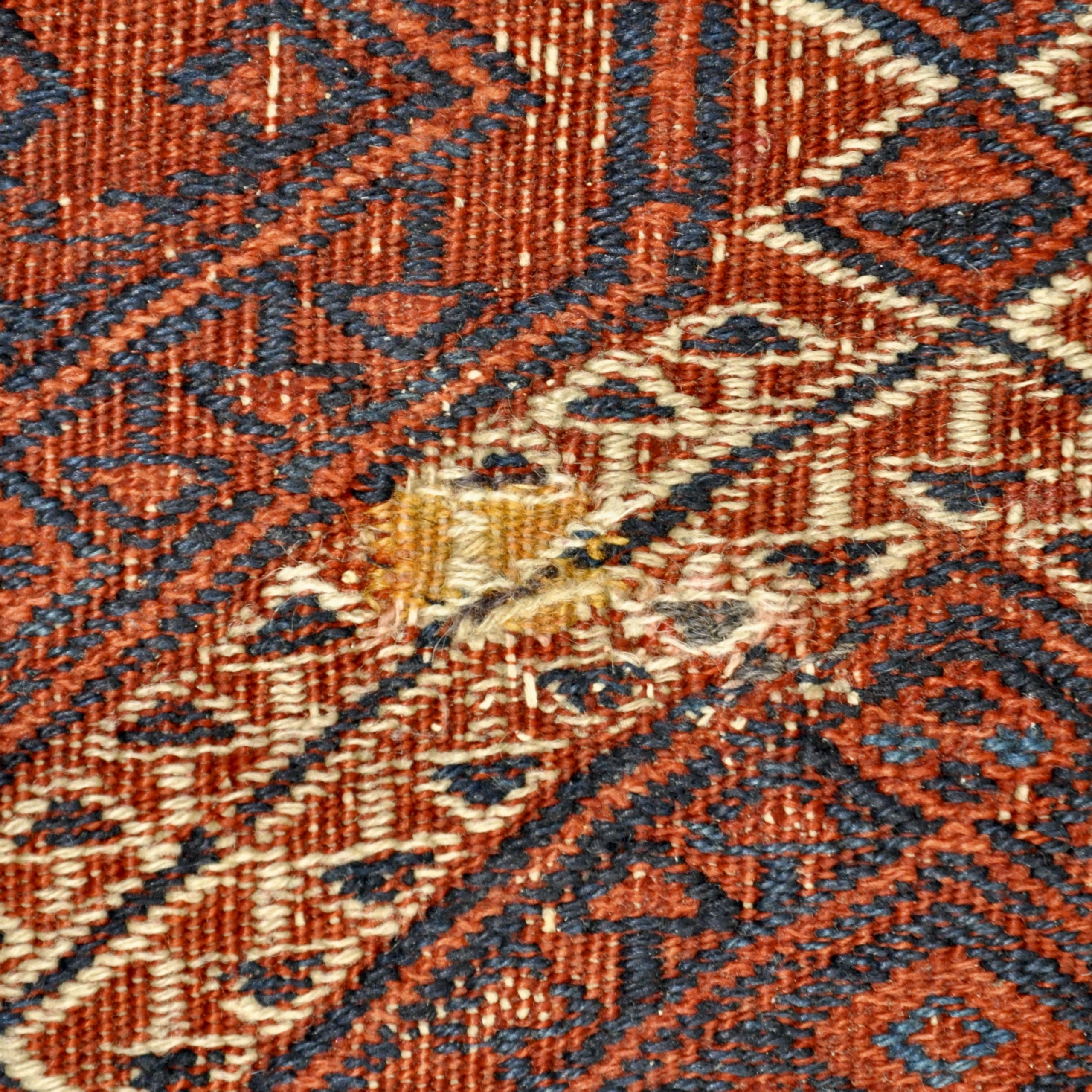 Le kilim a été restauré et ne présente aucune déchirure ou manque de fils malgré son âge.
