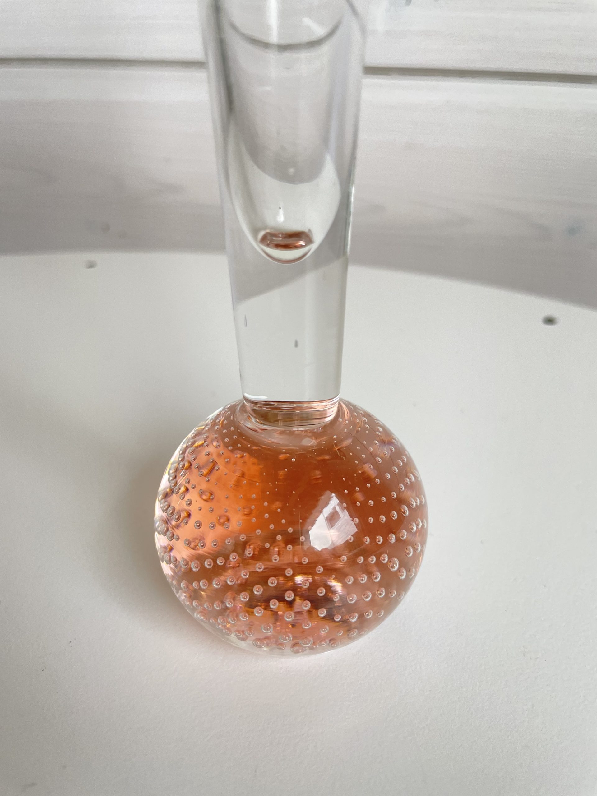 Vase soliflore en cristal à bulles contrôlées, base rose, décor vintage des années 1970.