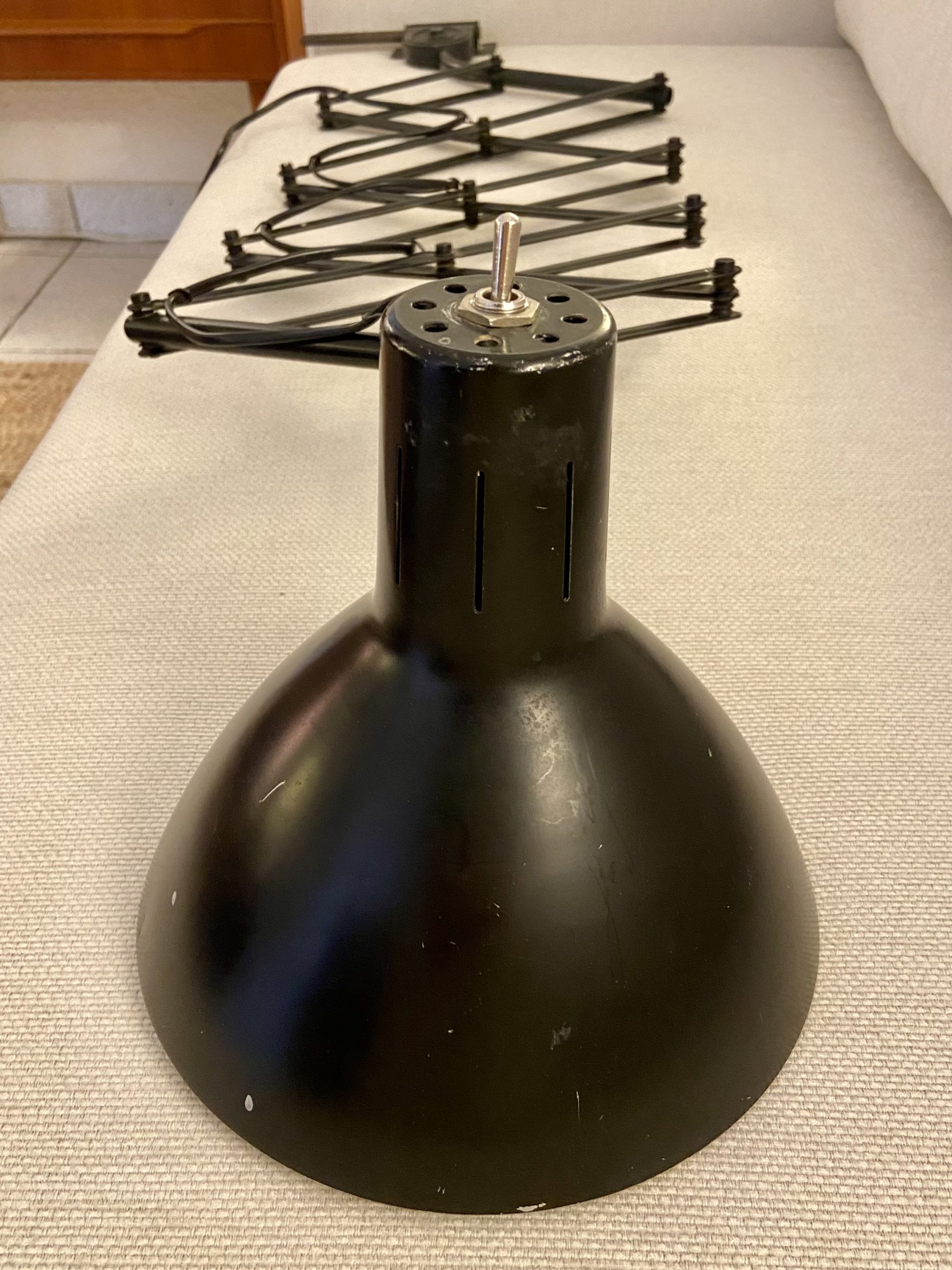 État d’usure normal pour ce genre de luminaires vintage, à signaler des petits manques/marques sur la peinture noire (cf photos)