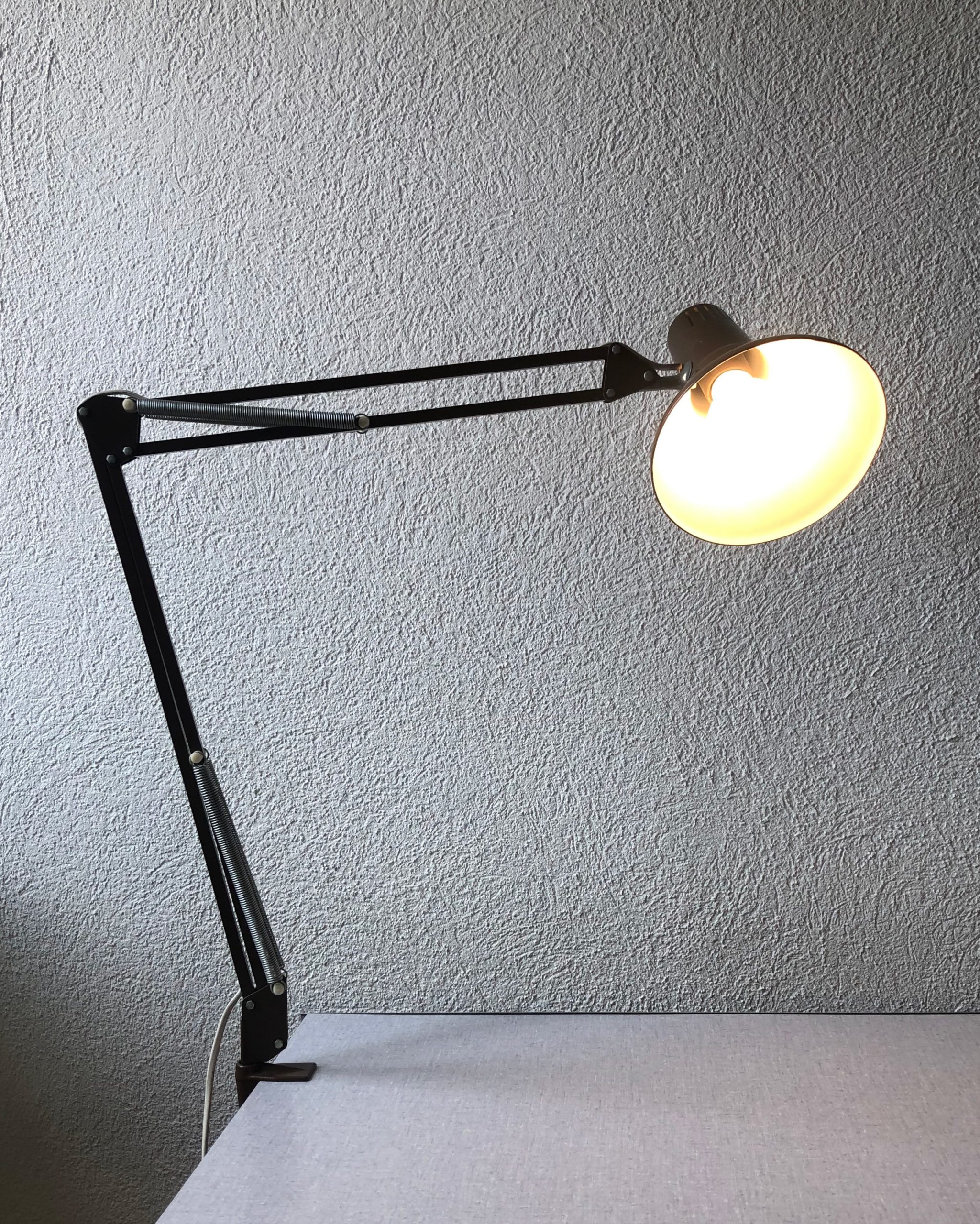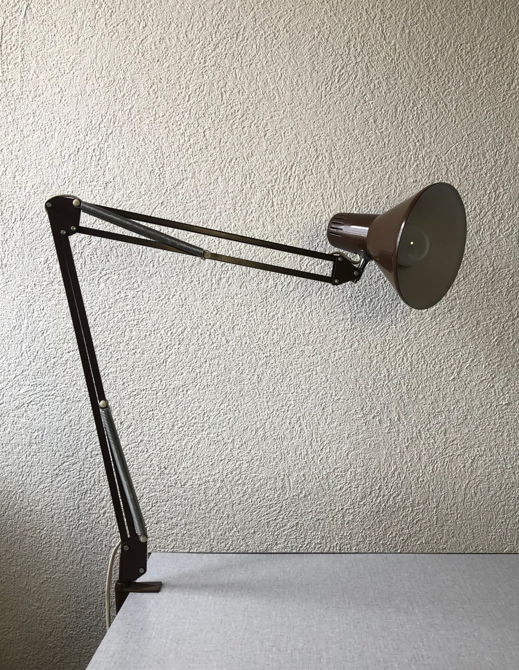 Verkauftes ProduktLampe d’architecte vintage de couleur brune.