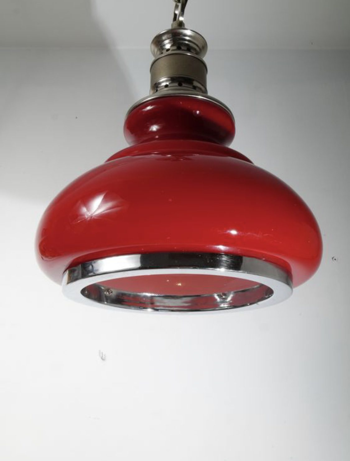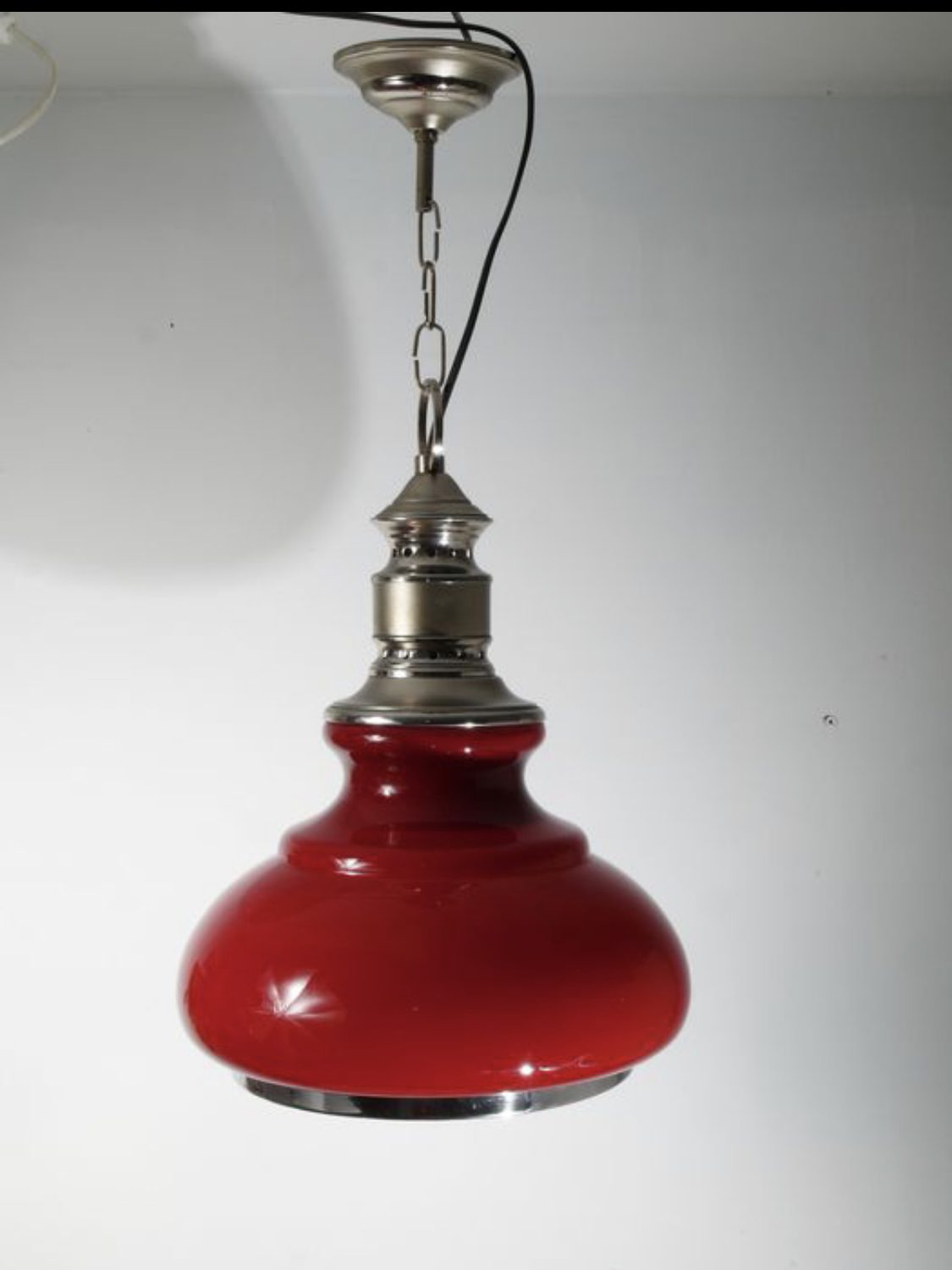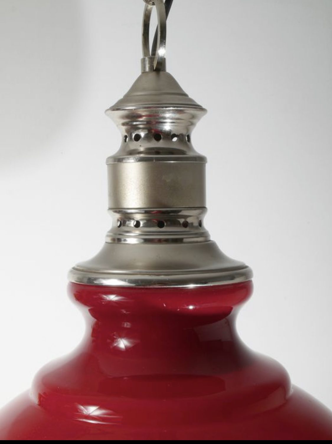 Verkauftes ProduktLampe des années 60/70 en opaline rouge avec embellissement argentés mats et brillants