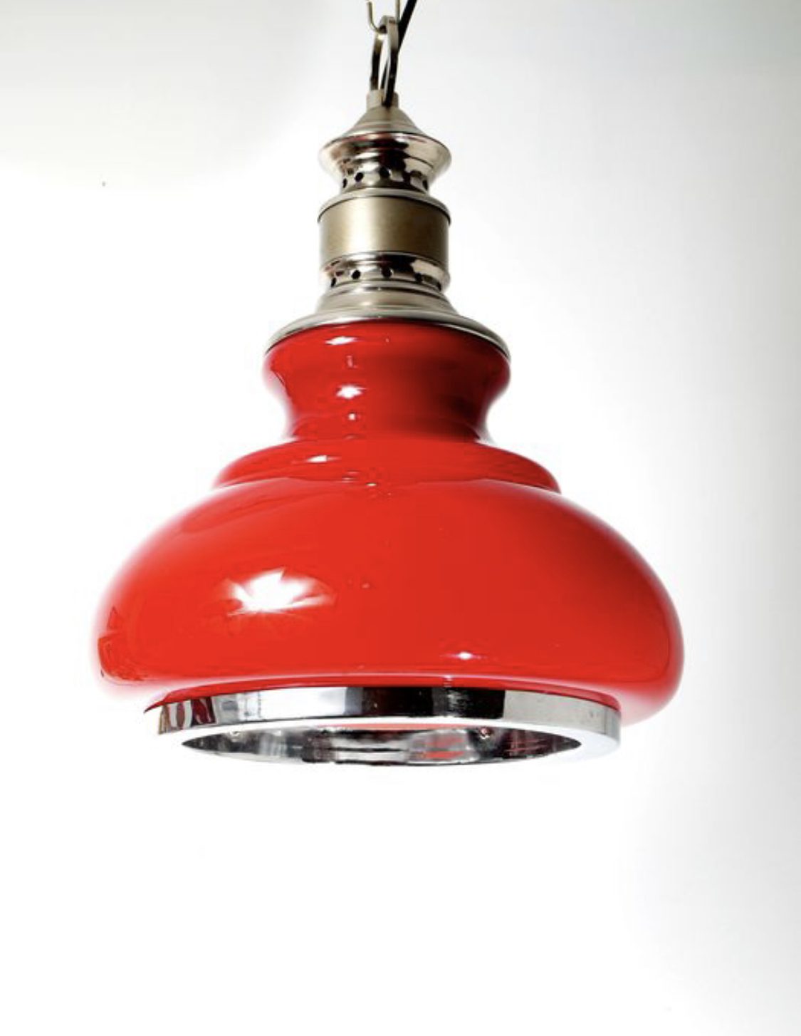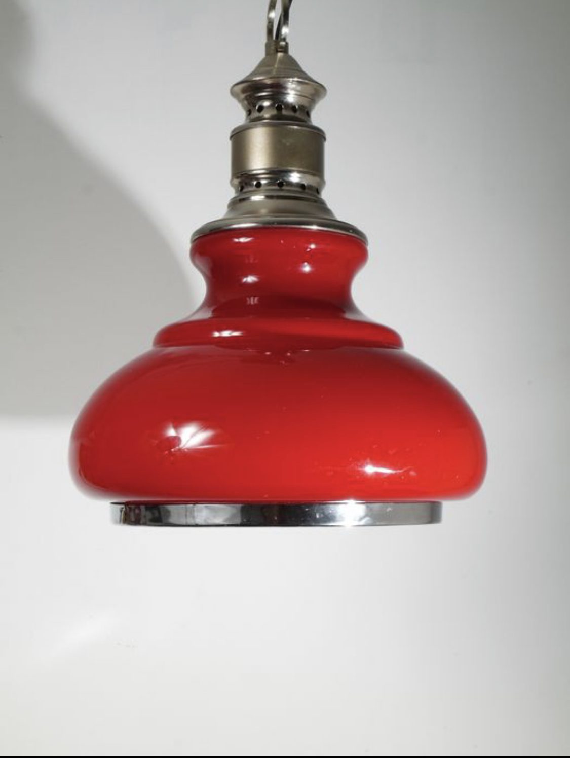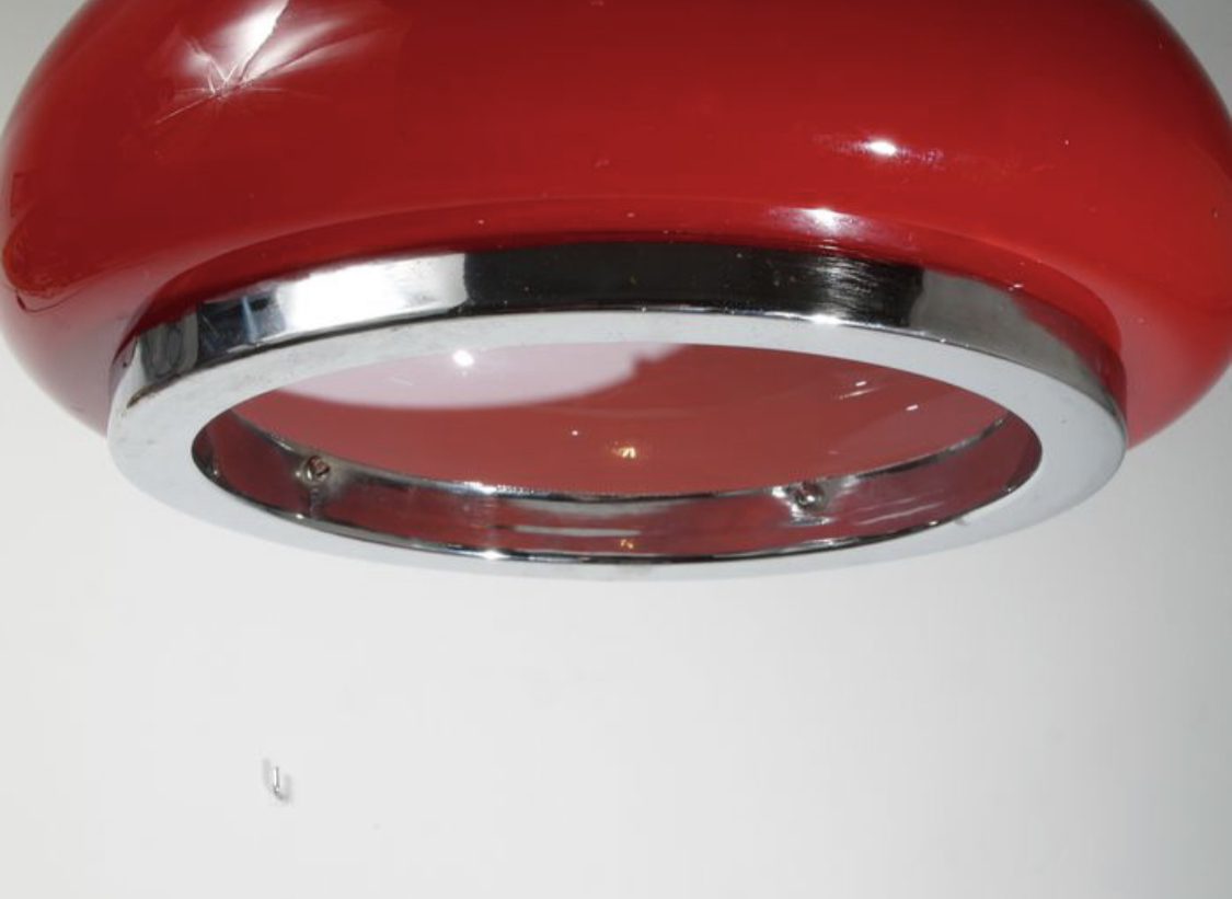 Verkauftes ProduktLampe des années 60/70 en opaline rouge avec embellissement argentés mats et brillants