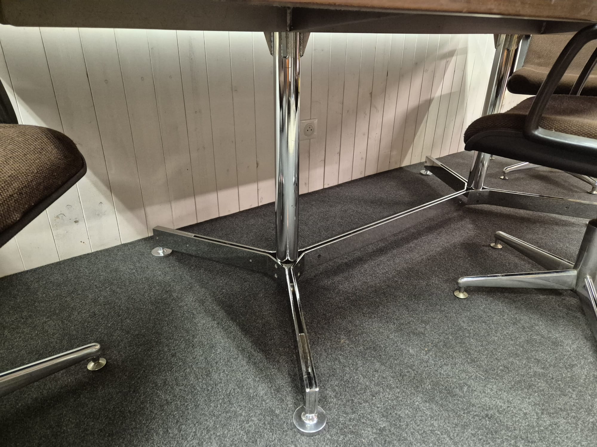Très jolie table à manger ou table de réunion en palissandre,piètement chrome. Années 70.