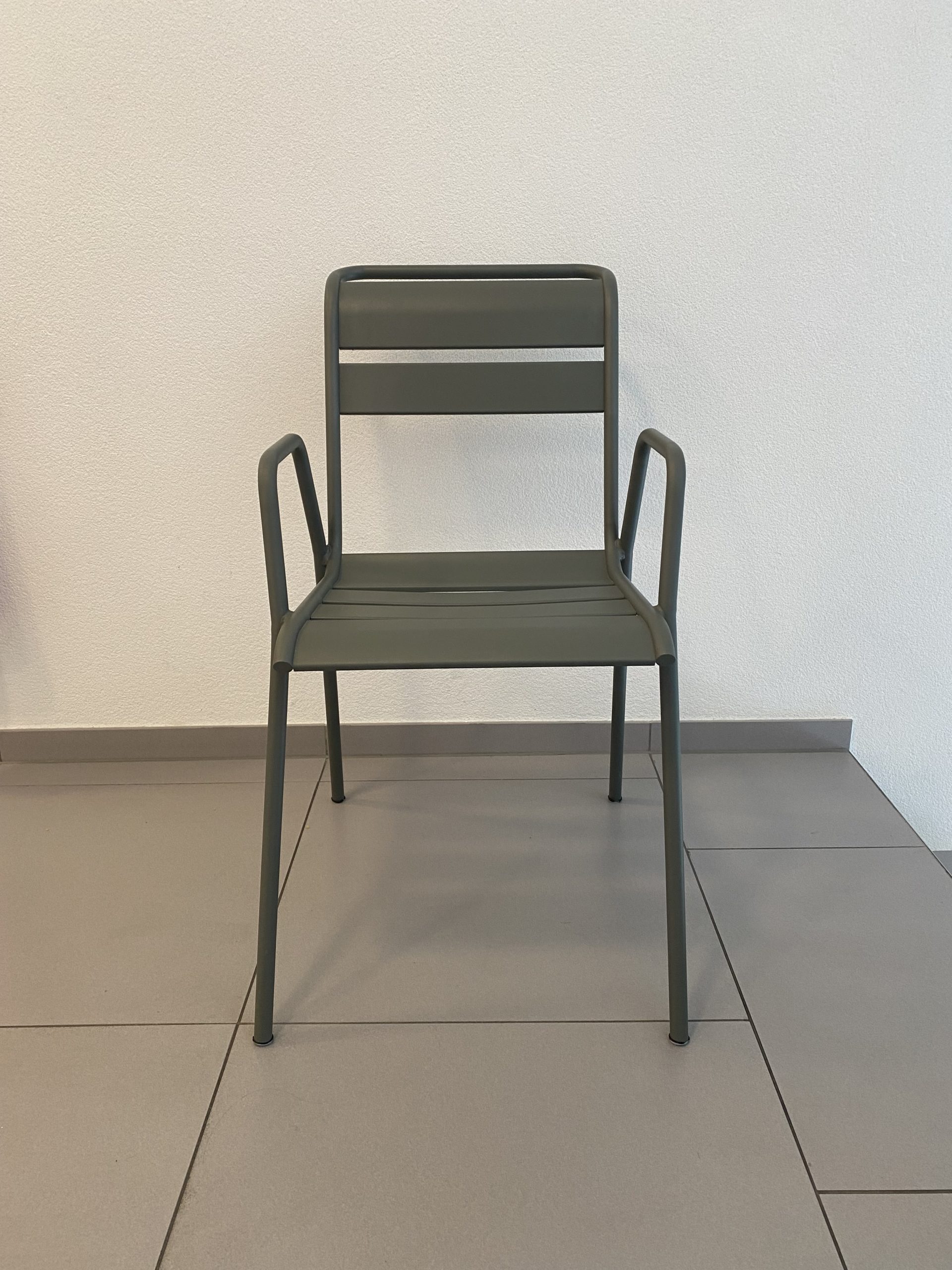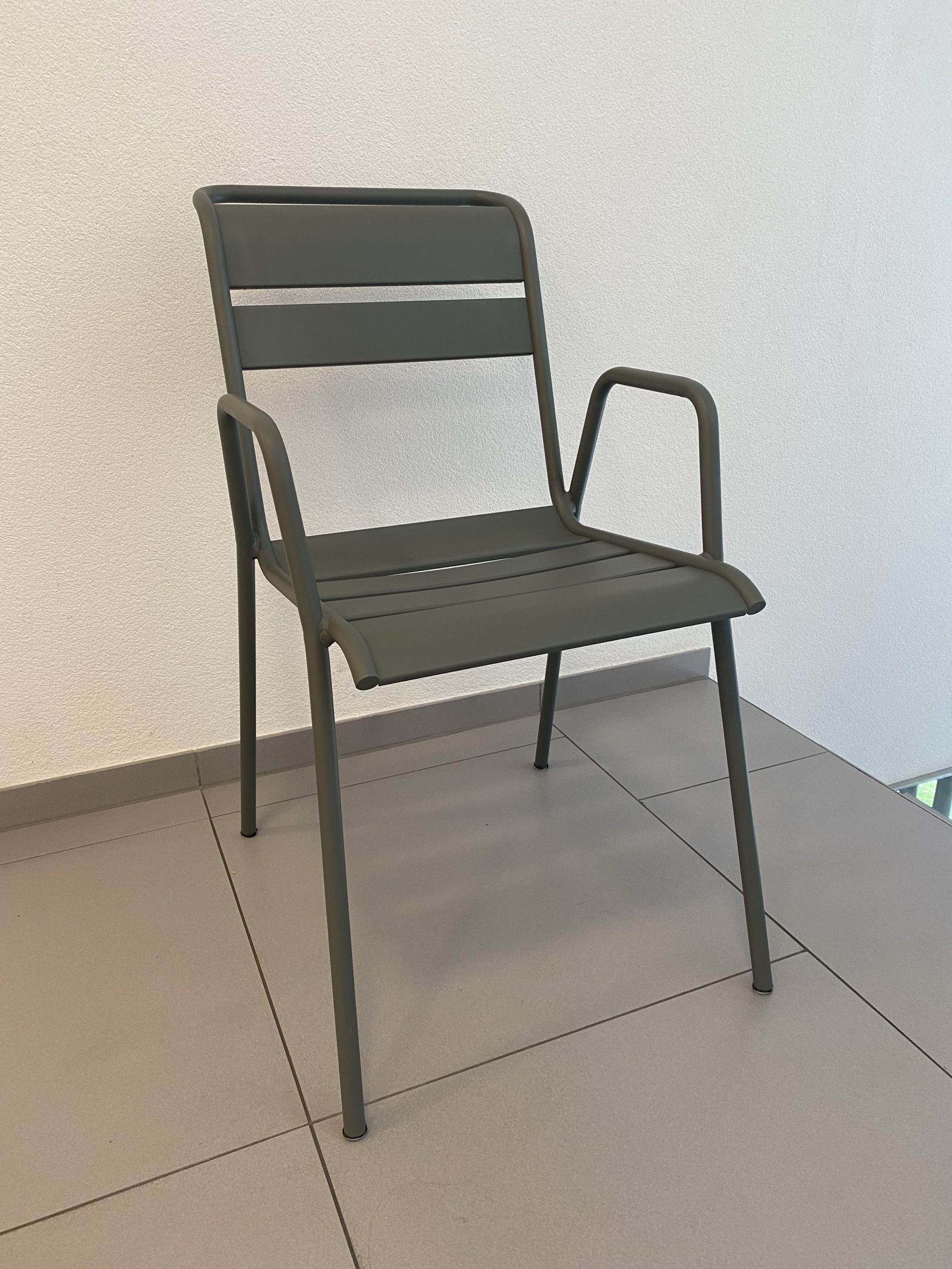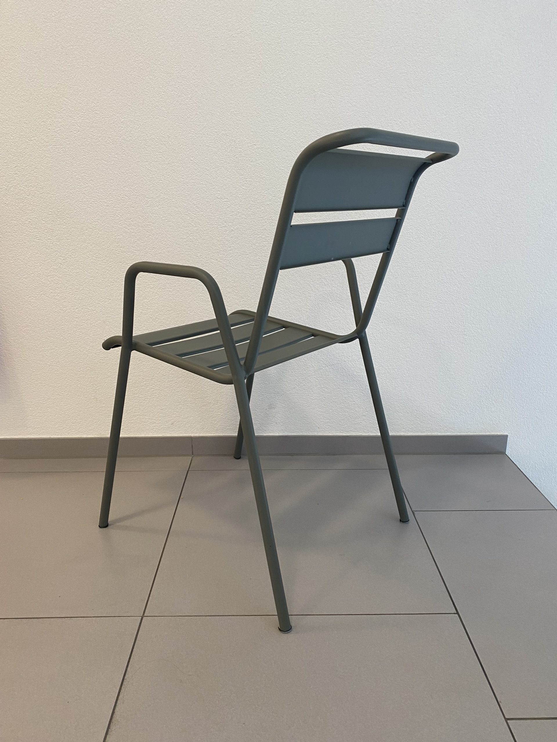 Chaise empilable en aluminium laqué de couleur romarin, modèle Monceau de Fermob.