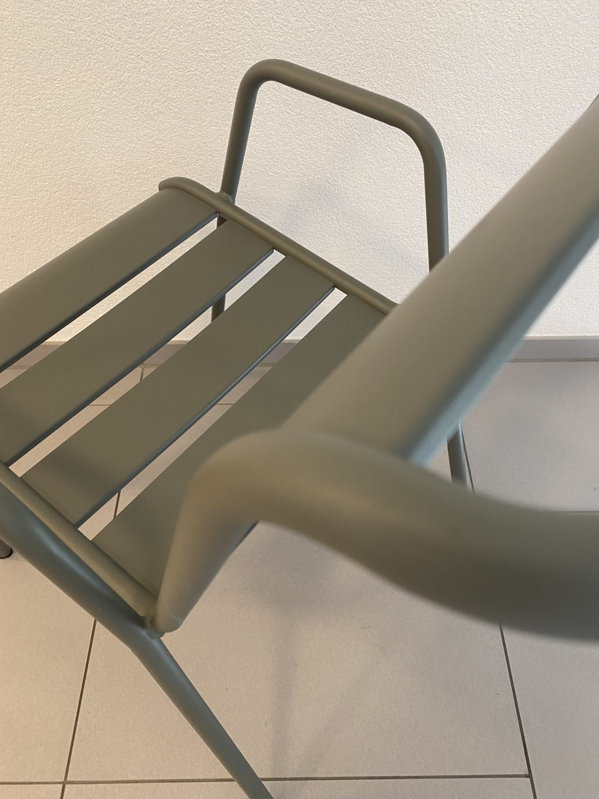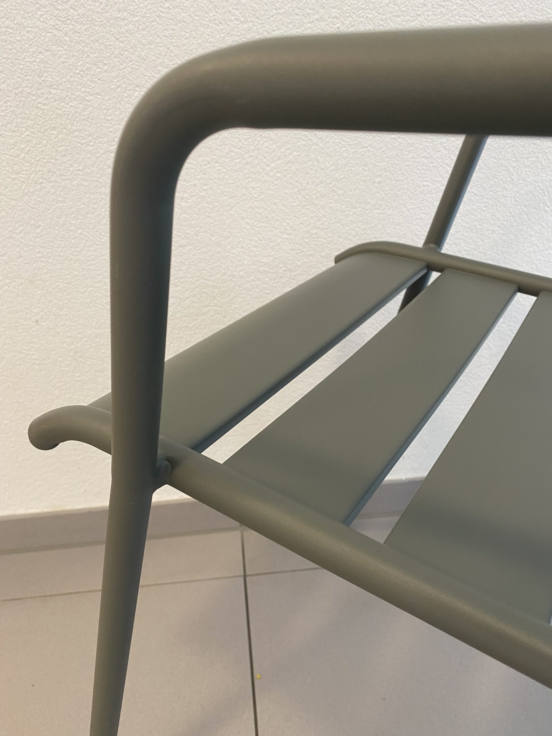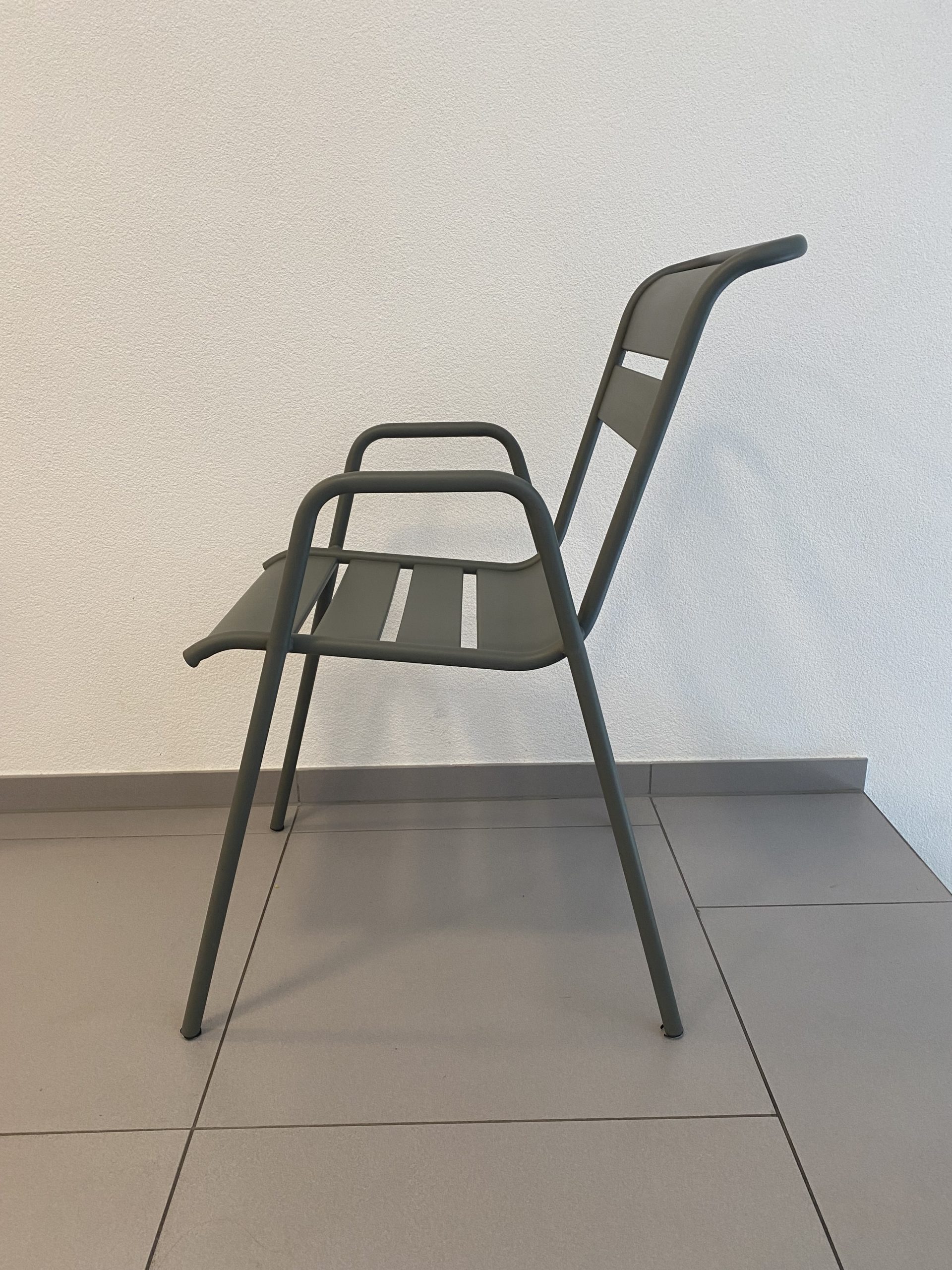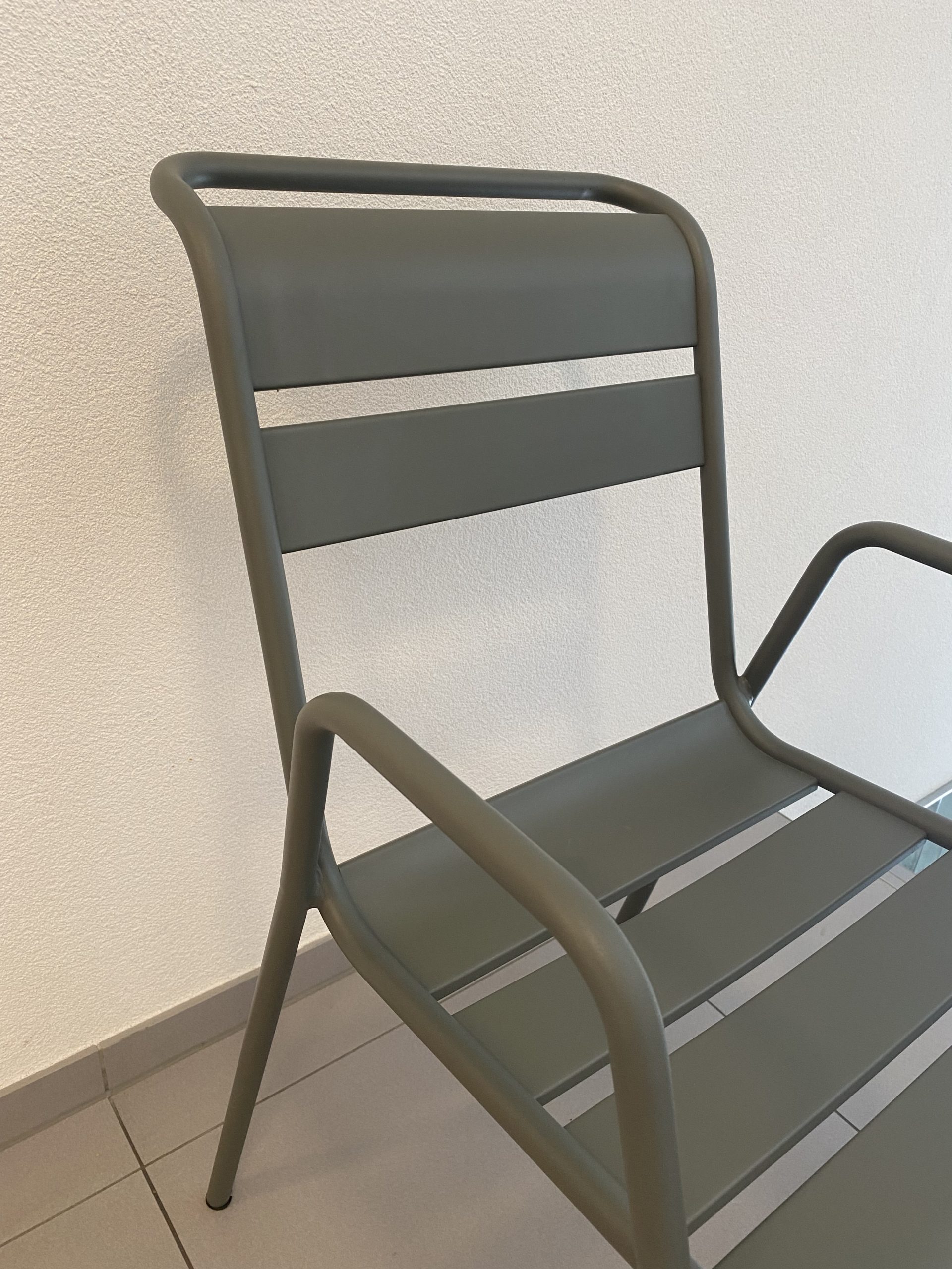 Chaise empilable en aluminium laqué de couleur romarin, modèle Monceau de Fermob.