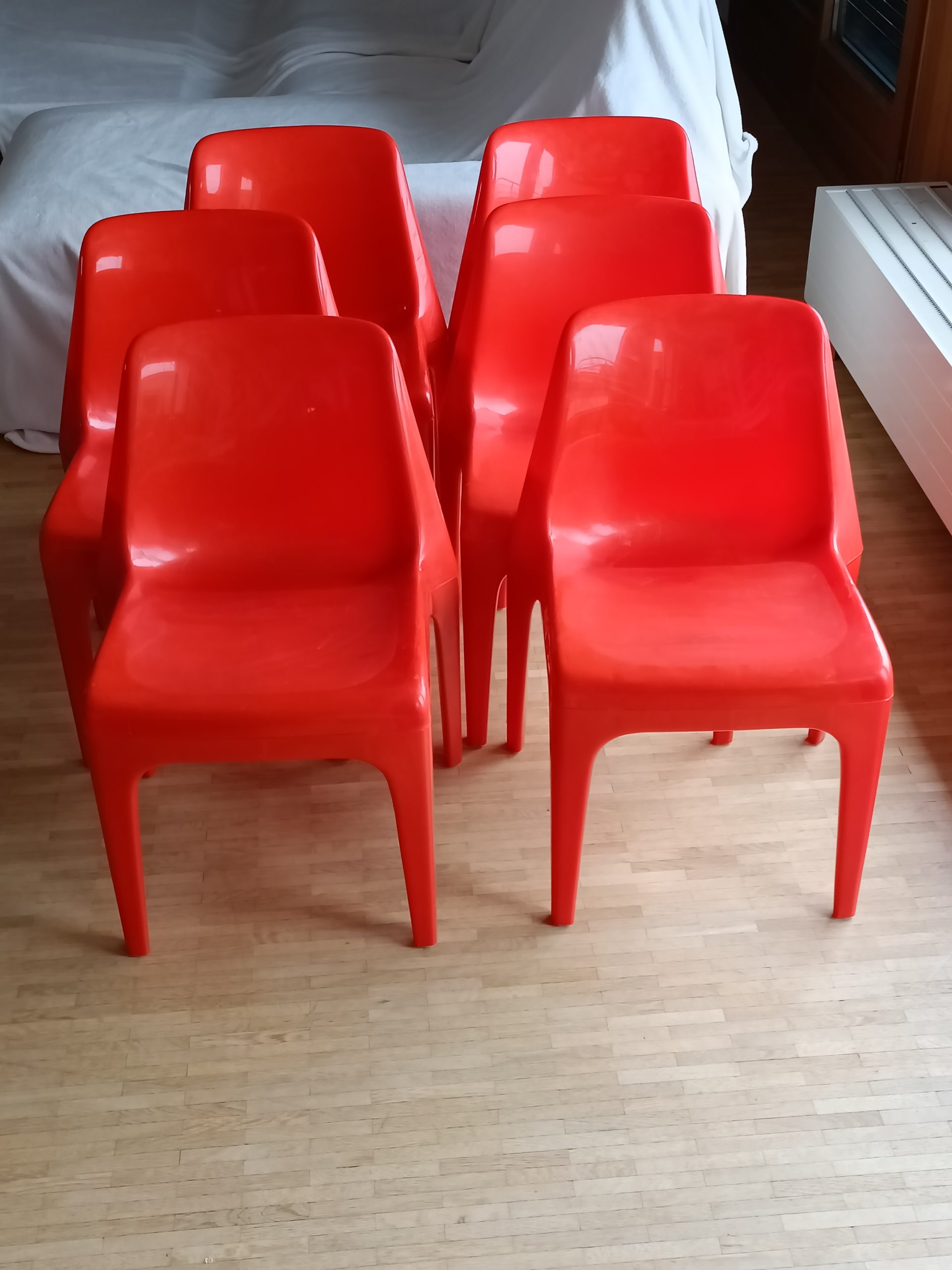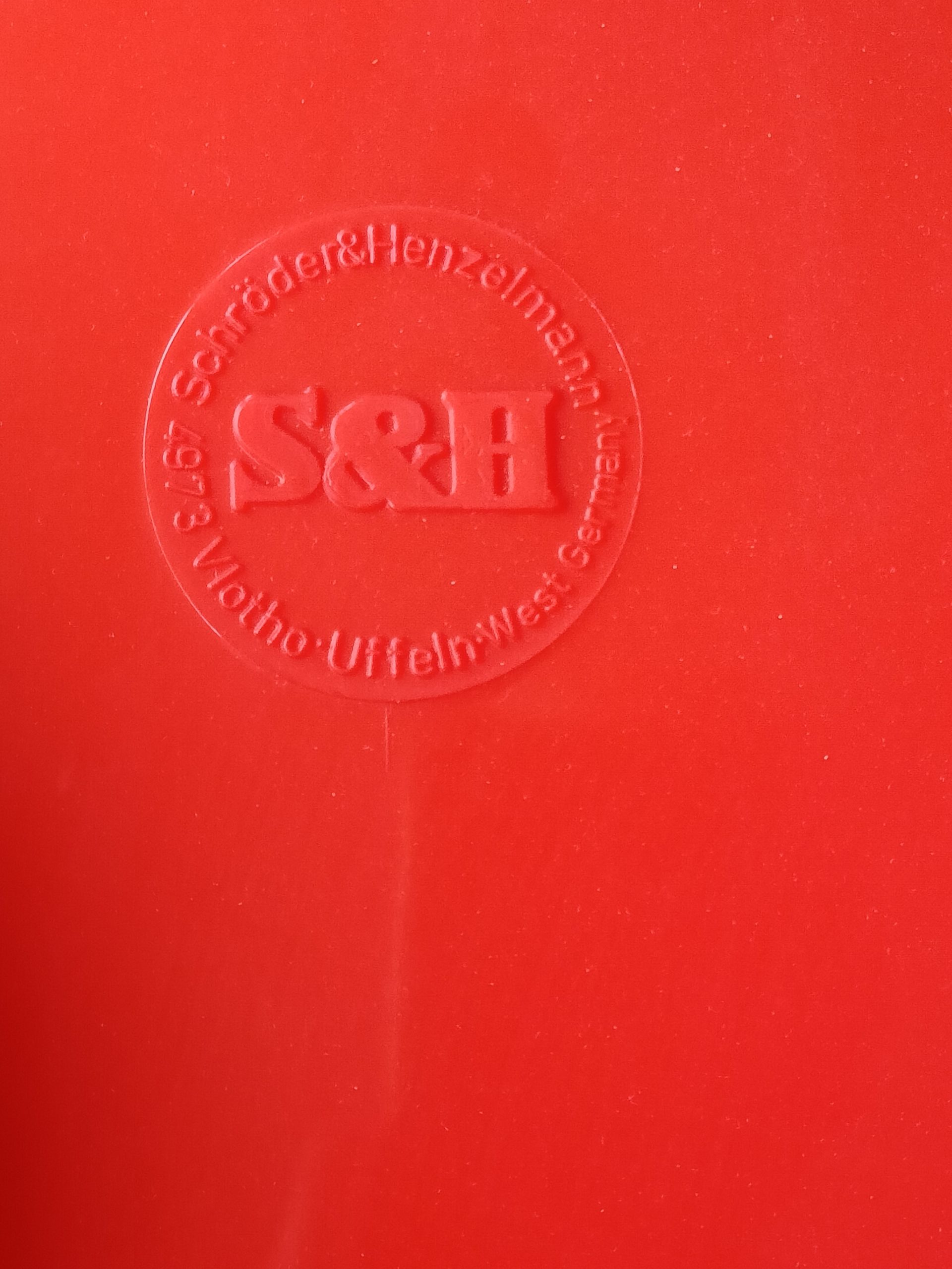 6 chaises en plastique rouge S&H Schröder & Henzelmann, 4973 Vlotho Uffeln, West Germany