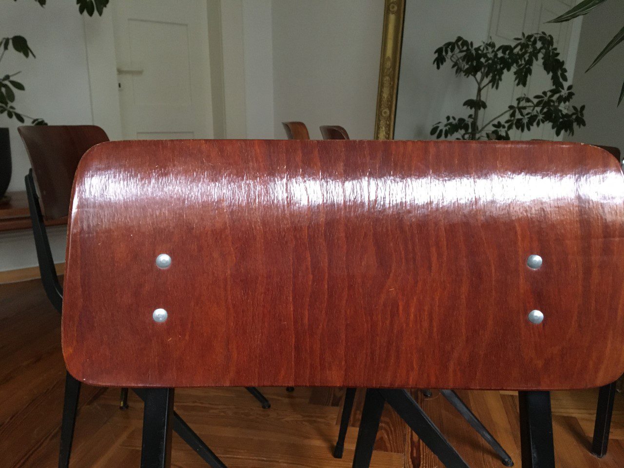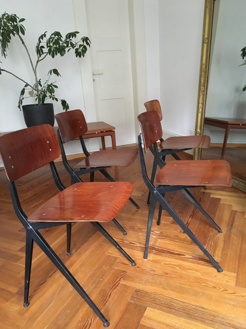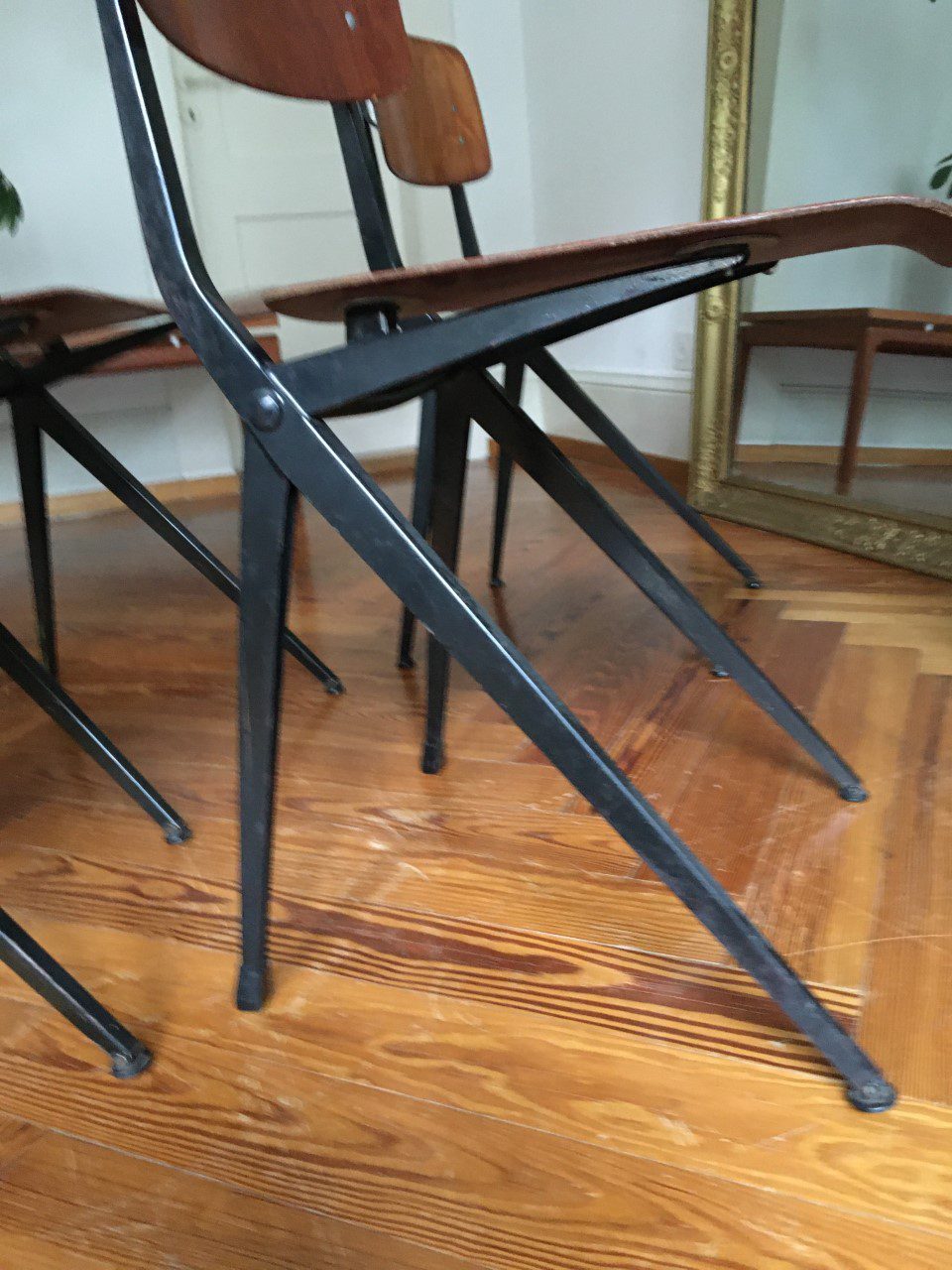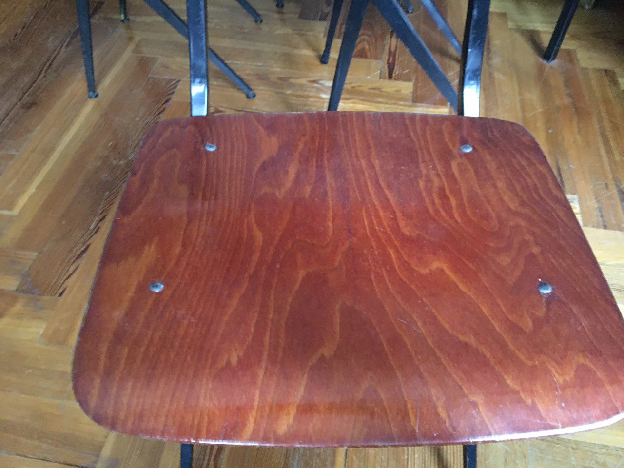 Matériau : cadre en acier, profil u/base et siège contreplaqué/dos. La hauteur du siège est de 48 cm. Vu son âge, elle est en très bel état vintage.