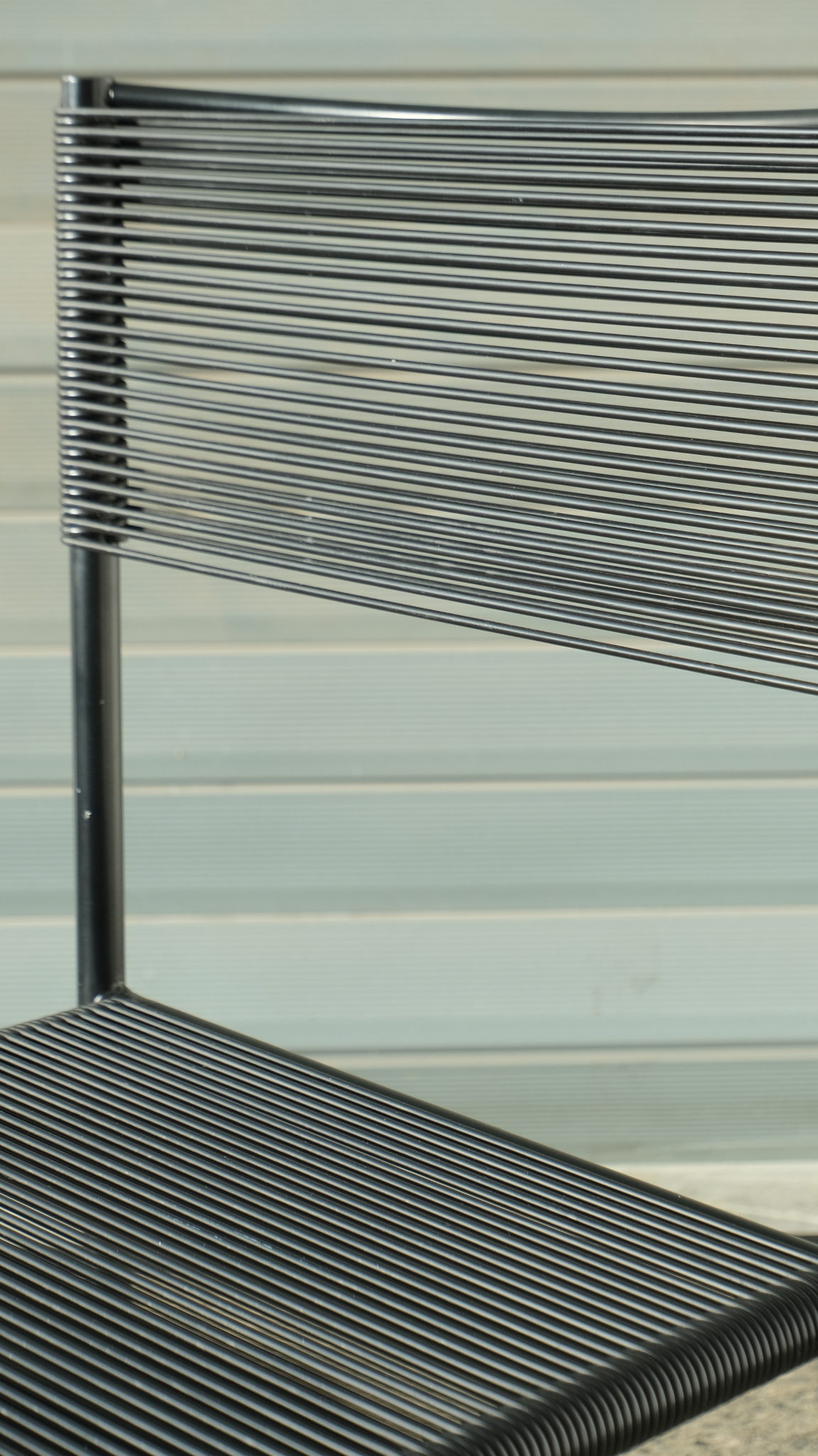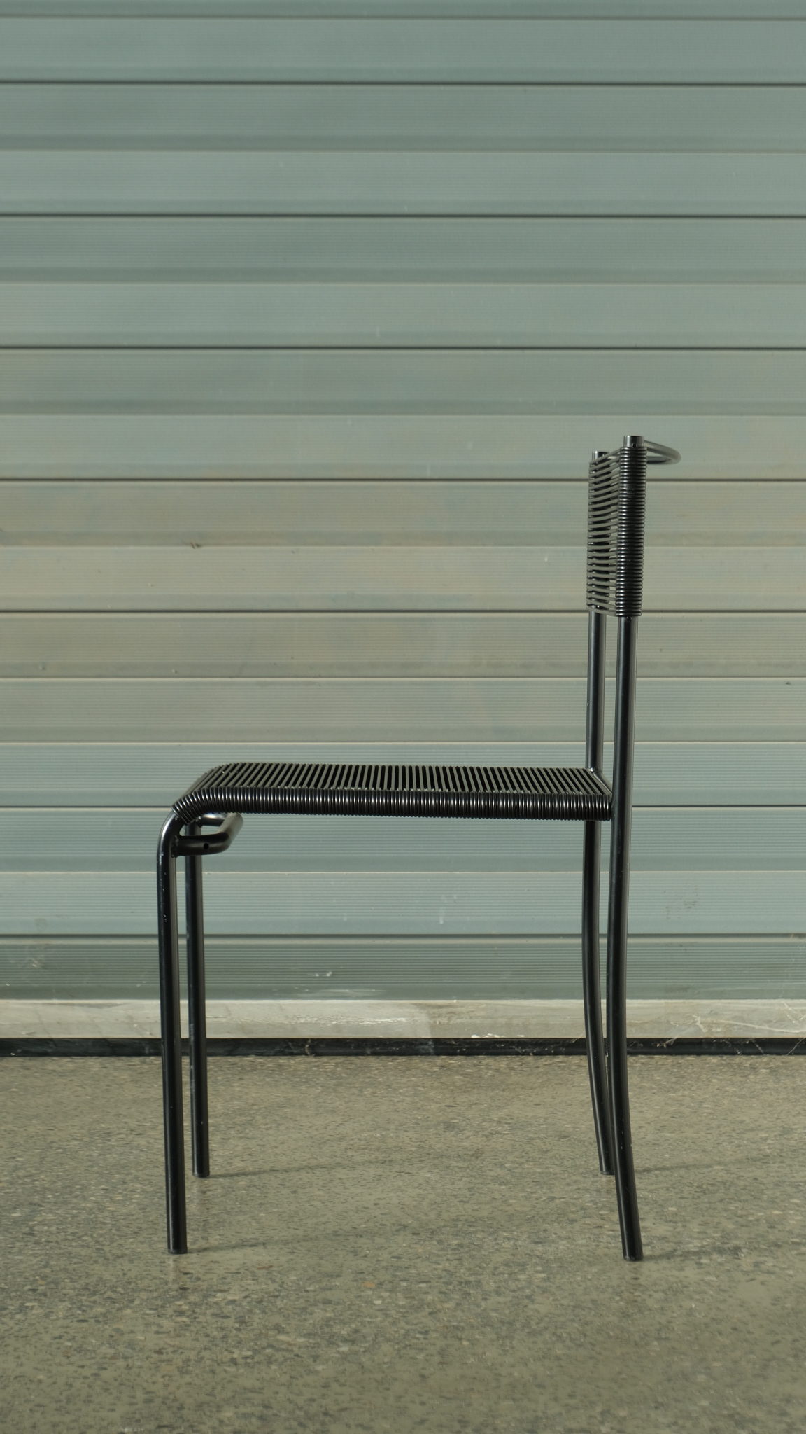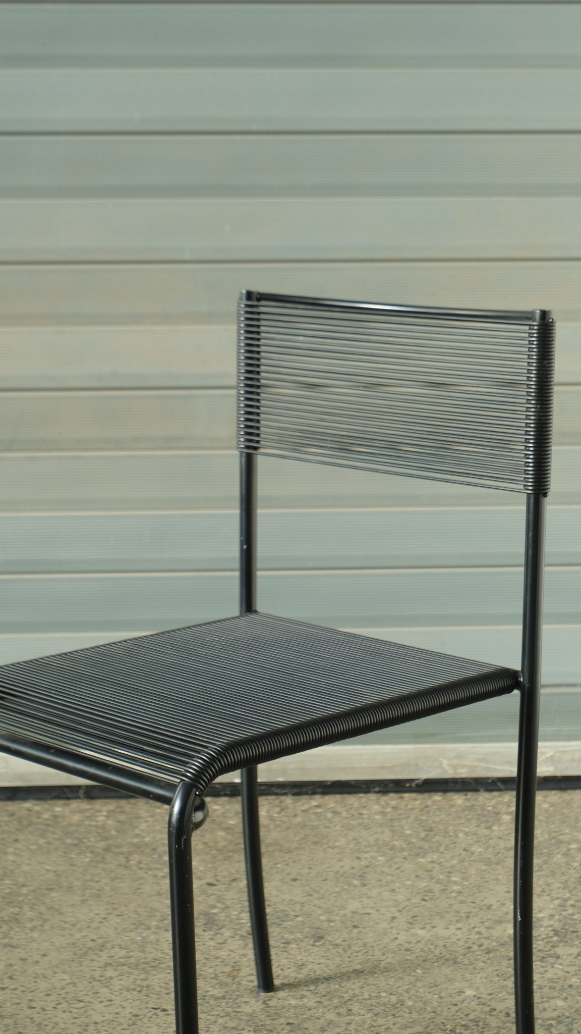 Verkauftes ProduktGiandomenico Belotti (Italian, 1922 – 2004) for Alias « Spaghetti Chairs » (designed 1979) , set of four, each with black frame supporting latex « spaghetti ». In good vintage condition.