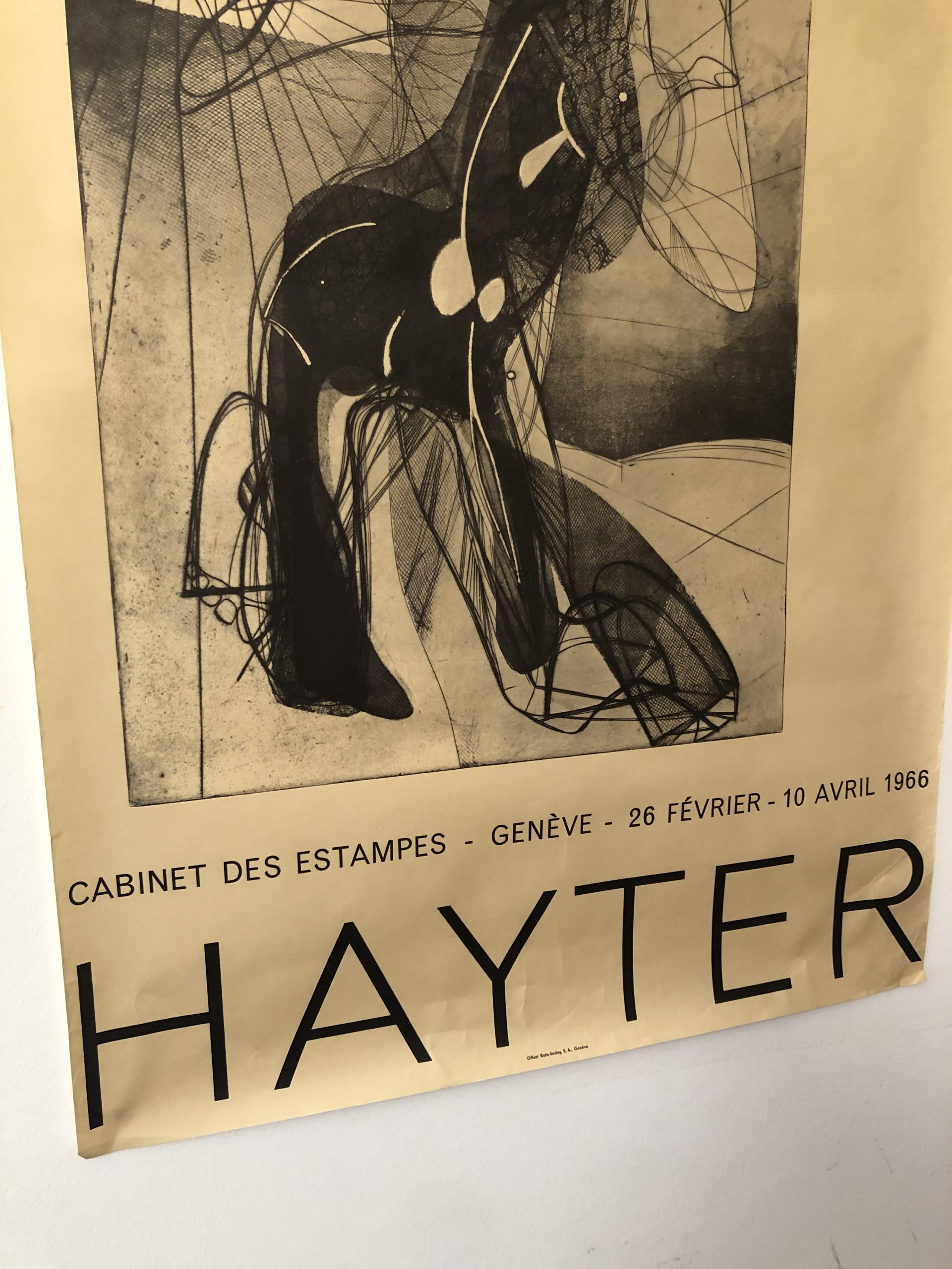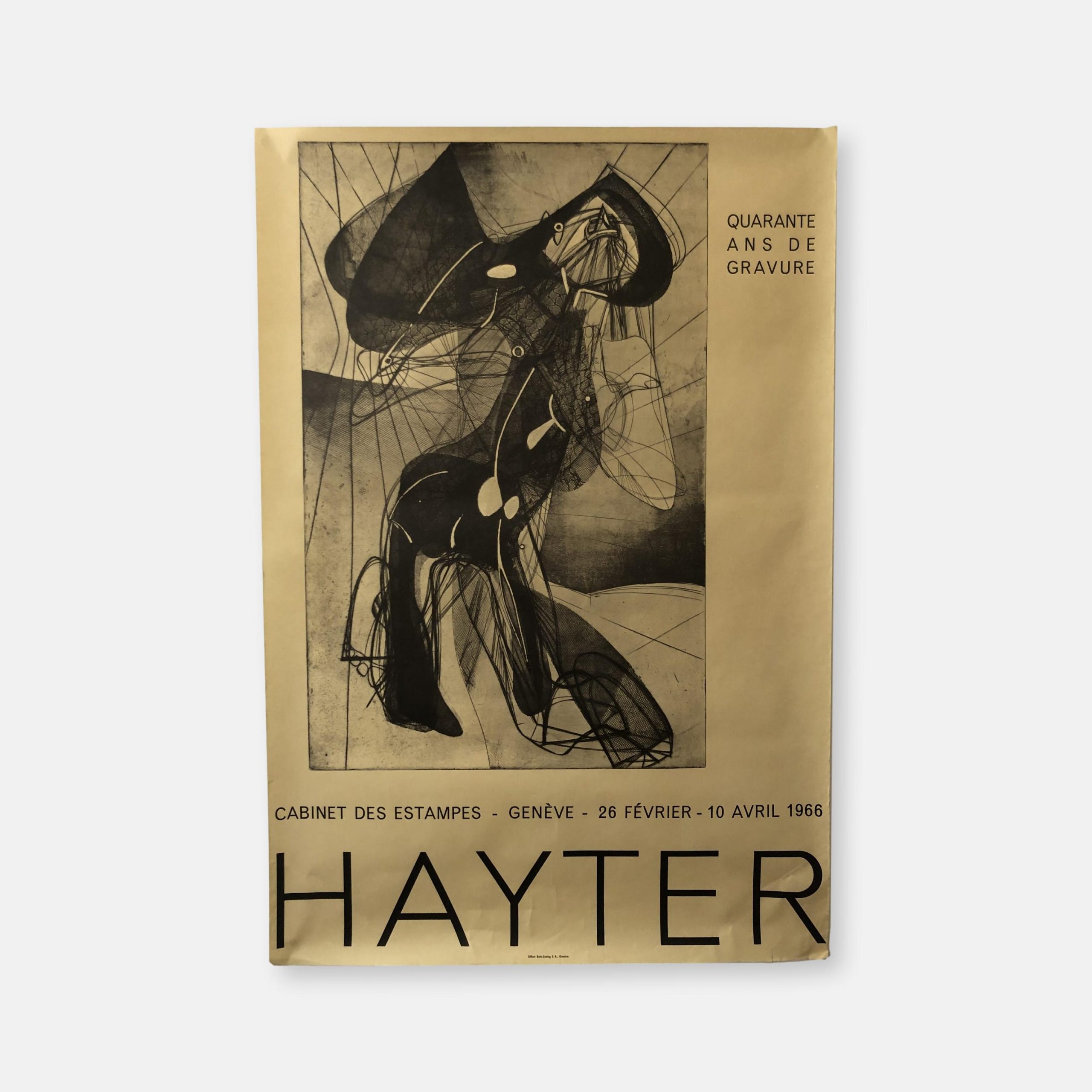 Produit venduBelle et grande affiche d’exposition de l’artiste Stanley William Hayter (peintre et graveur anglais) pour ses 40 ans de gravure de 1966.