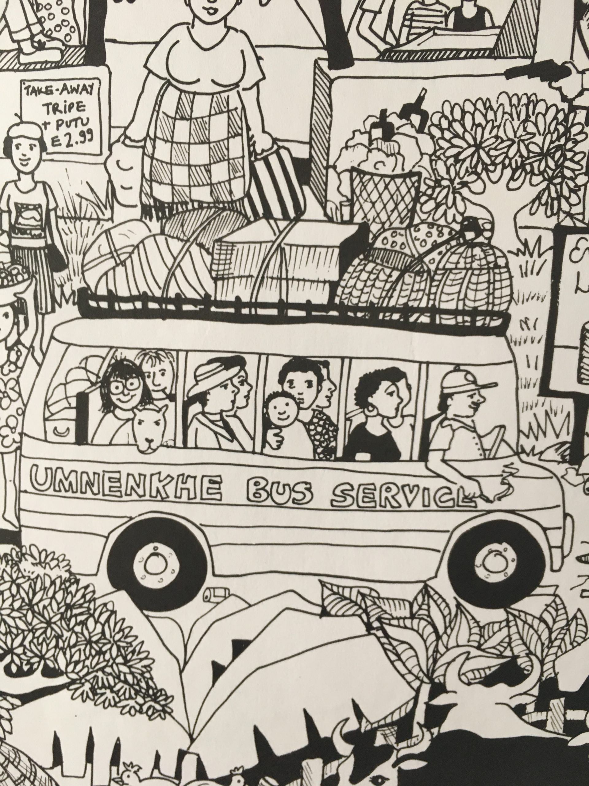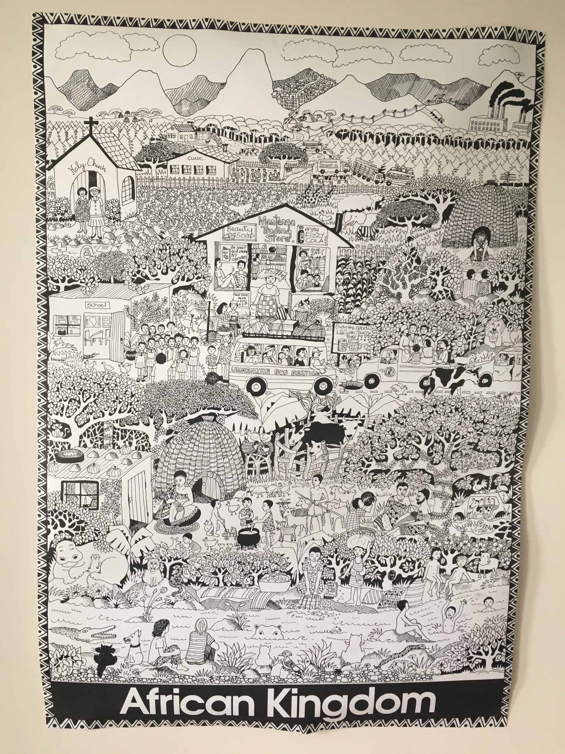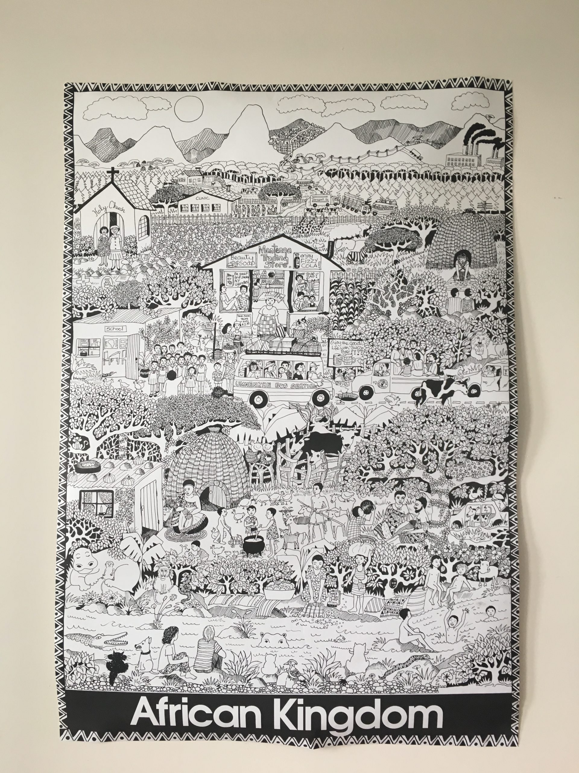 Produit venduBelle affiche illustrée en noir et blanc sur le thème de l’Afrique du Sud. Il y est dépeint des scènes de la vie courante d’une manière naïve et un brin humoristique, comme par exemple le bus Umnenkhe qui signifie “escargot” en langue Zulu. Idéal pour une déco ethnique ou enfantine pourquoi pas ! Bel état, affiche non piquée.