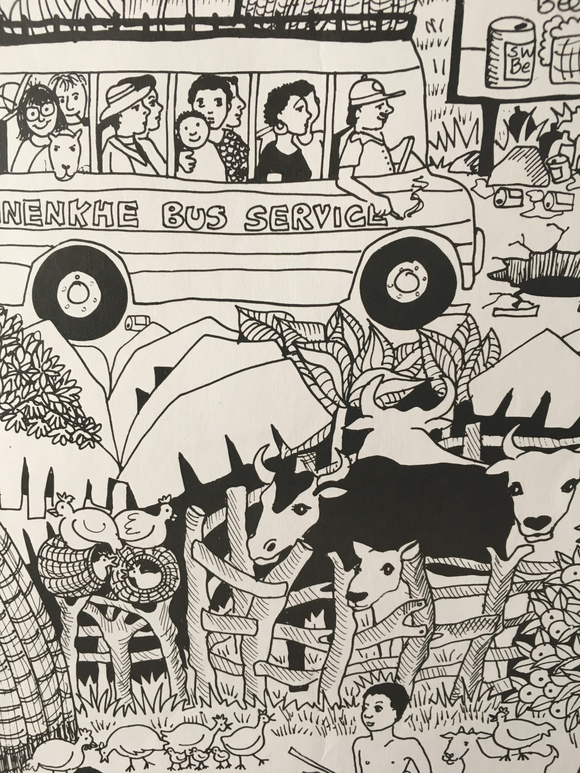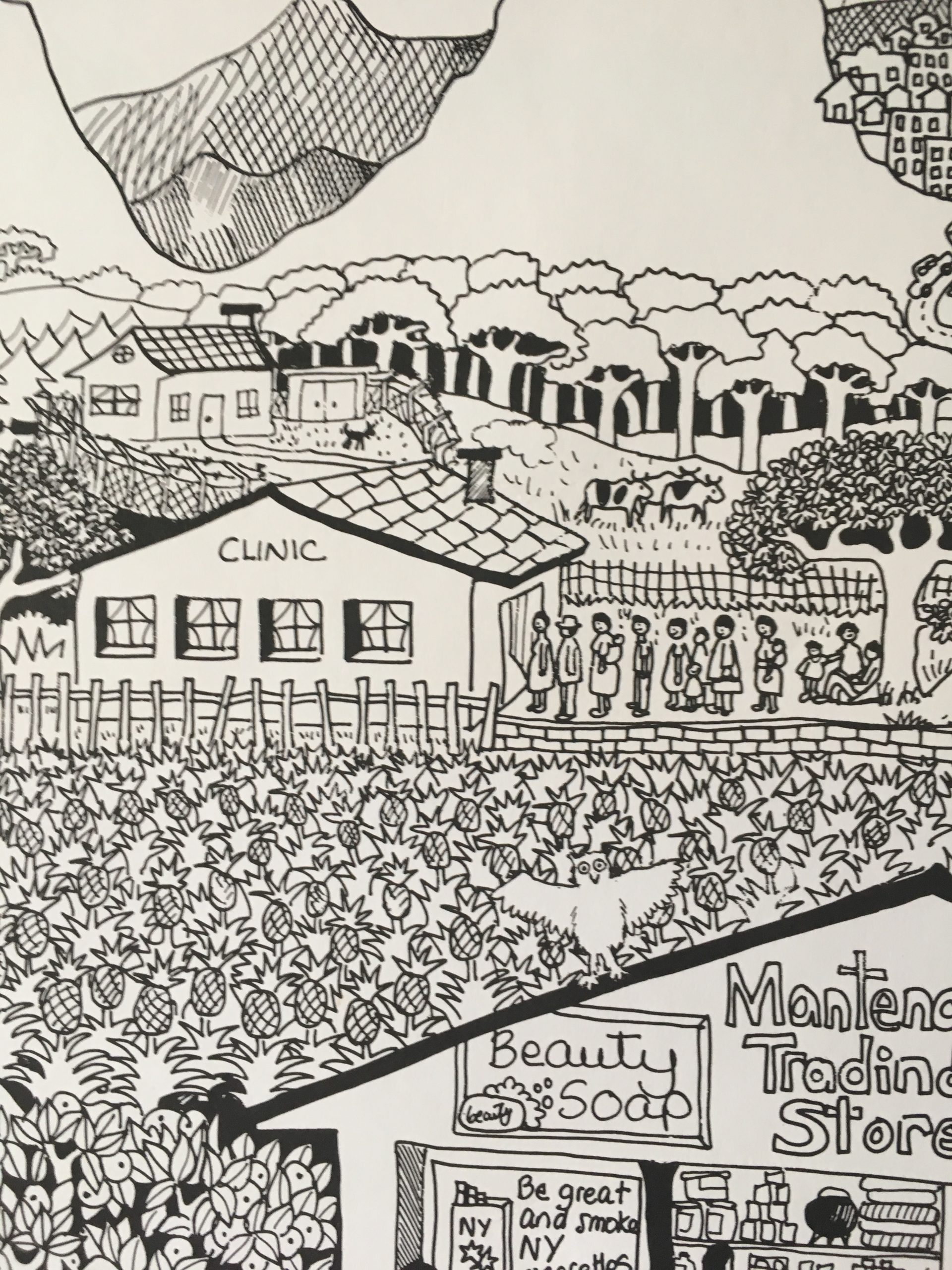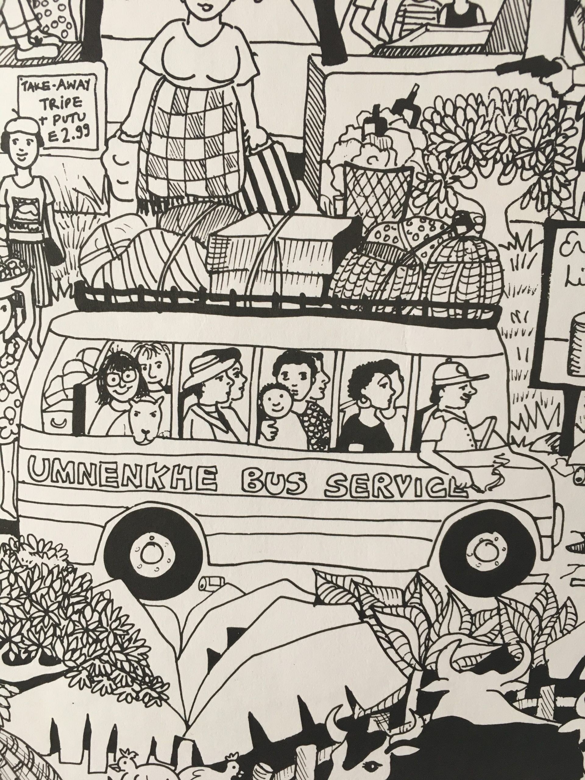 Produit venduBelle affiche illustrée en noir et blanc sur le thème de l’Afrique du Sud. Il y est dépeint des scènes de la vie courante d’une manière naïve et un brin humoristique, comme par exemple le bus Umnenkhe qui signifie “escargot” en langue Zulu. Idéal pour une déco ethnique ou enfantine pourquoi pas ! Bel état, affiche non piquée.