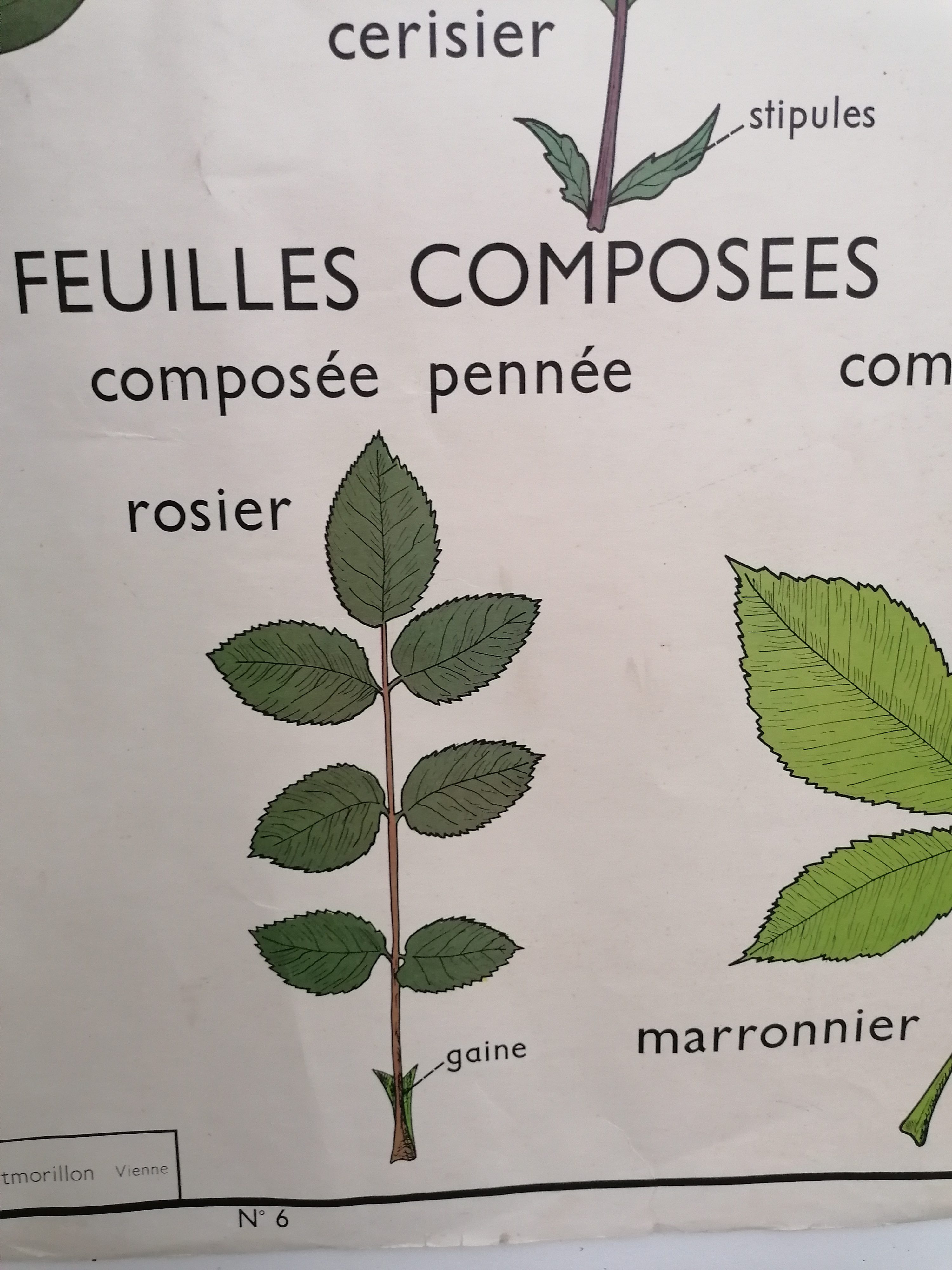 Produit venduAffiche scolaire vintage double-face représentant différentes types de feuilles. Editions Rossignol, Montmorillon (Vienne). Quelques traces d’usure et déchirures (voir photos) mais l’état général est correct. Le scotch aux coins a été appliqué uniquement pour prendre les photos.