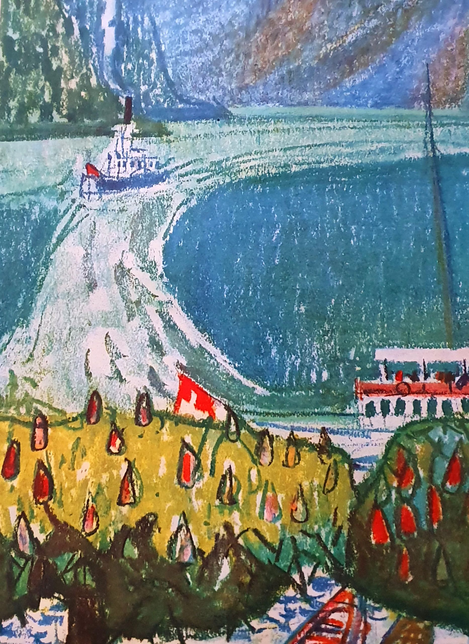 Produit venduAlois Carigiet (1902-1985), Affiche lithographique de la série « La Suisse paradis de vacances » signée A.C., circa 1945, intitulée “La Suisse centrale”