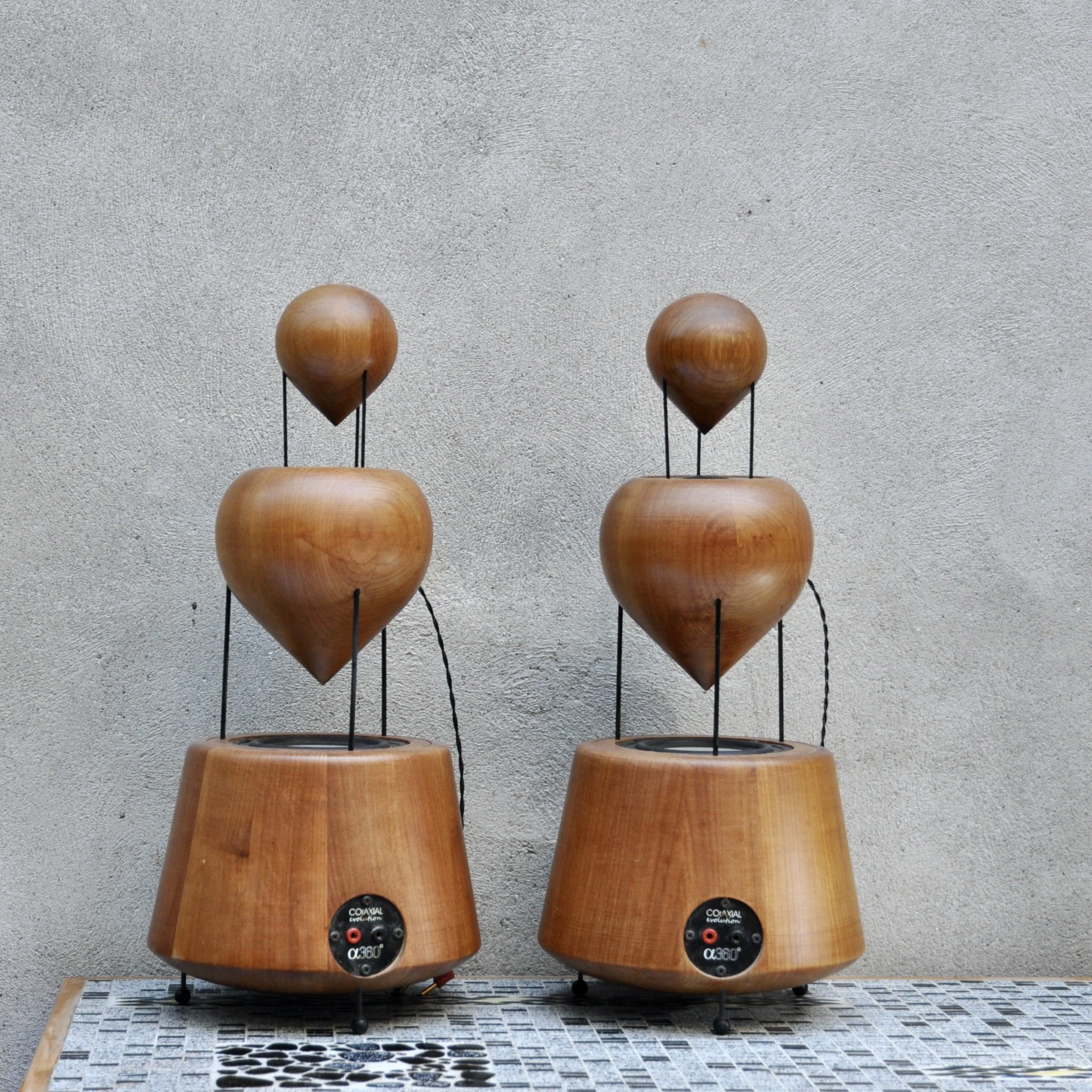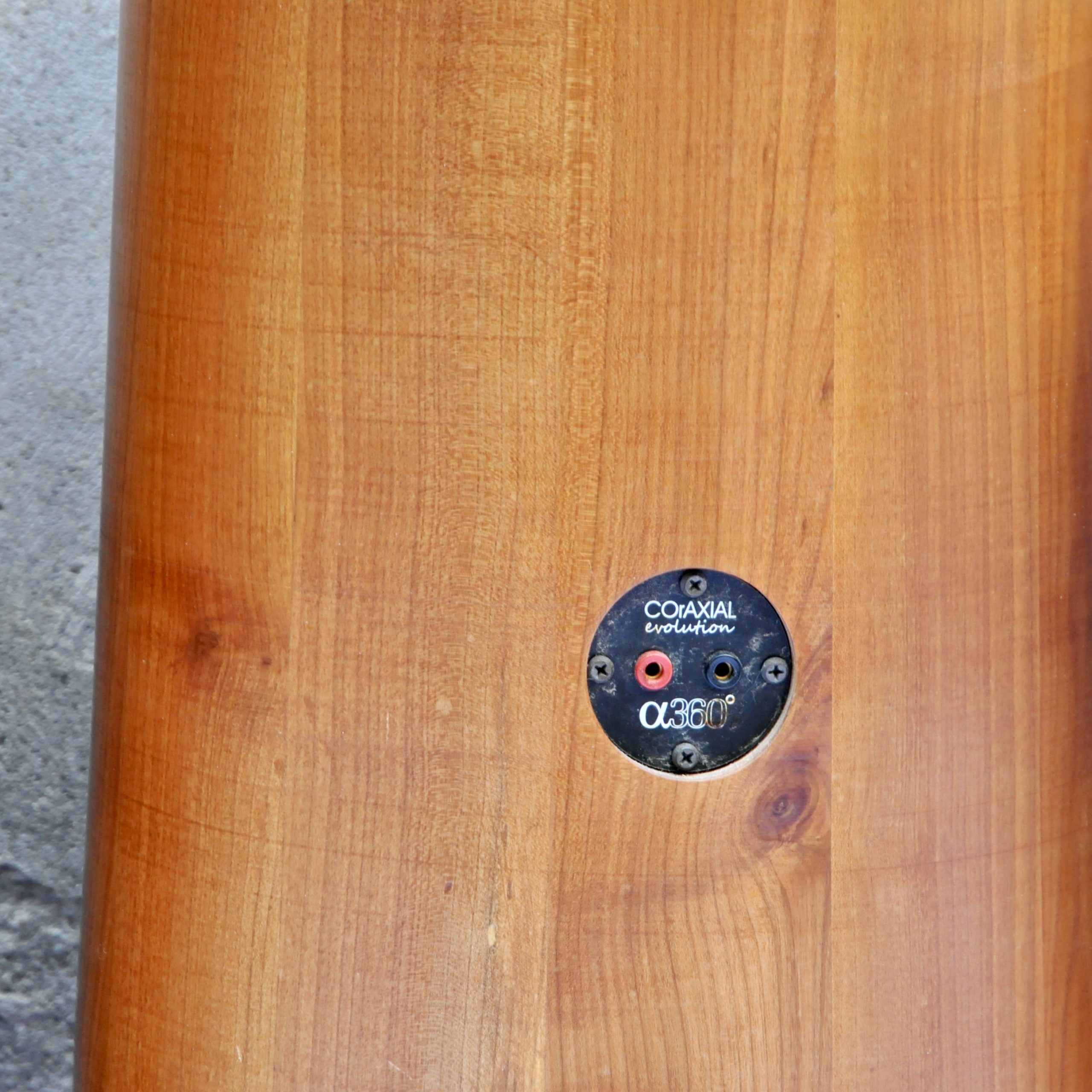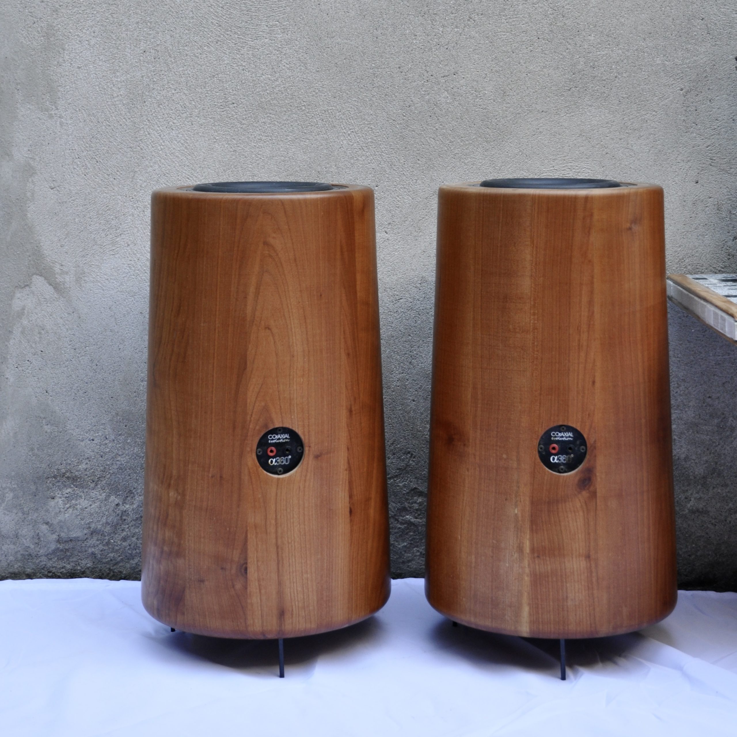 Ensemble de haut-parleurs de la marque dB360°, un concept audio complètement innovant de fabrication suisse. Après 7 ans de recherche, Daniel Brand a inventé un boîtier, évent & têtes réfléchissantes à 360°, le R&D dB360°. Avec optimisation des caractéristiques physiques & acoustiques de chaque élément, une conception & réalisation des pièces en bois nobles construites à la façon d’un tonneau, des transitoires ultra rapides, le respect des phases et un HP large bande haut de gamme, sans aucun filtre, la liberté de déplacement et l’émission de toutes les fréquences à 360°à partir d’un axe vertical. Il y a une enceinte par canal.
