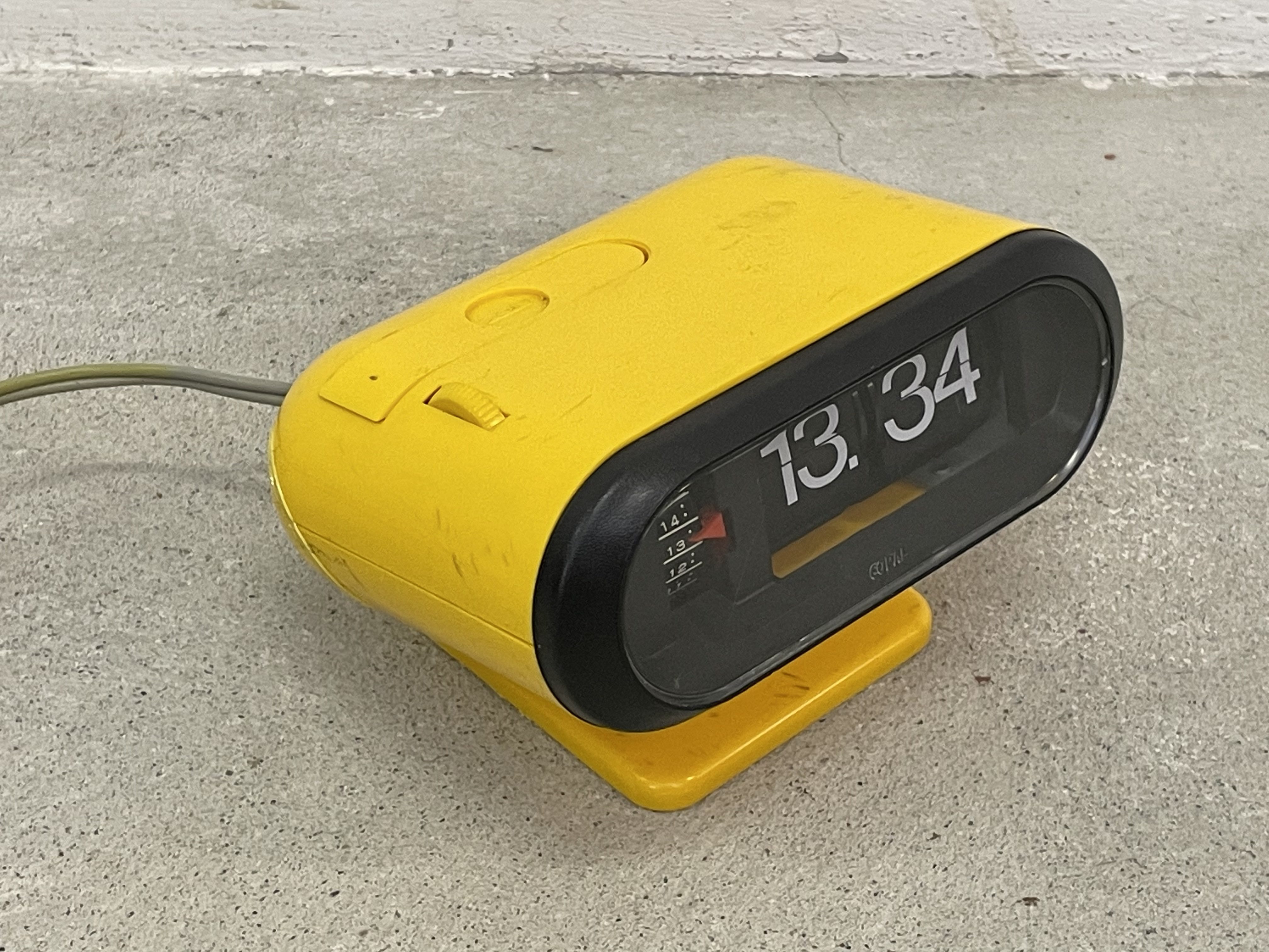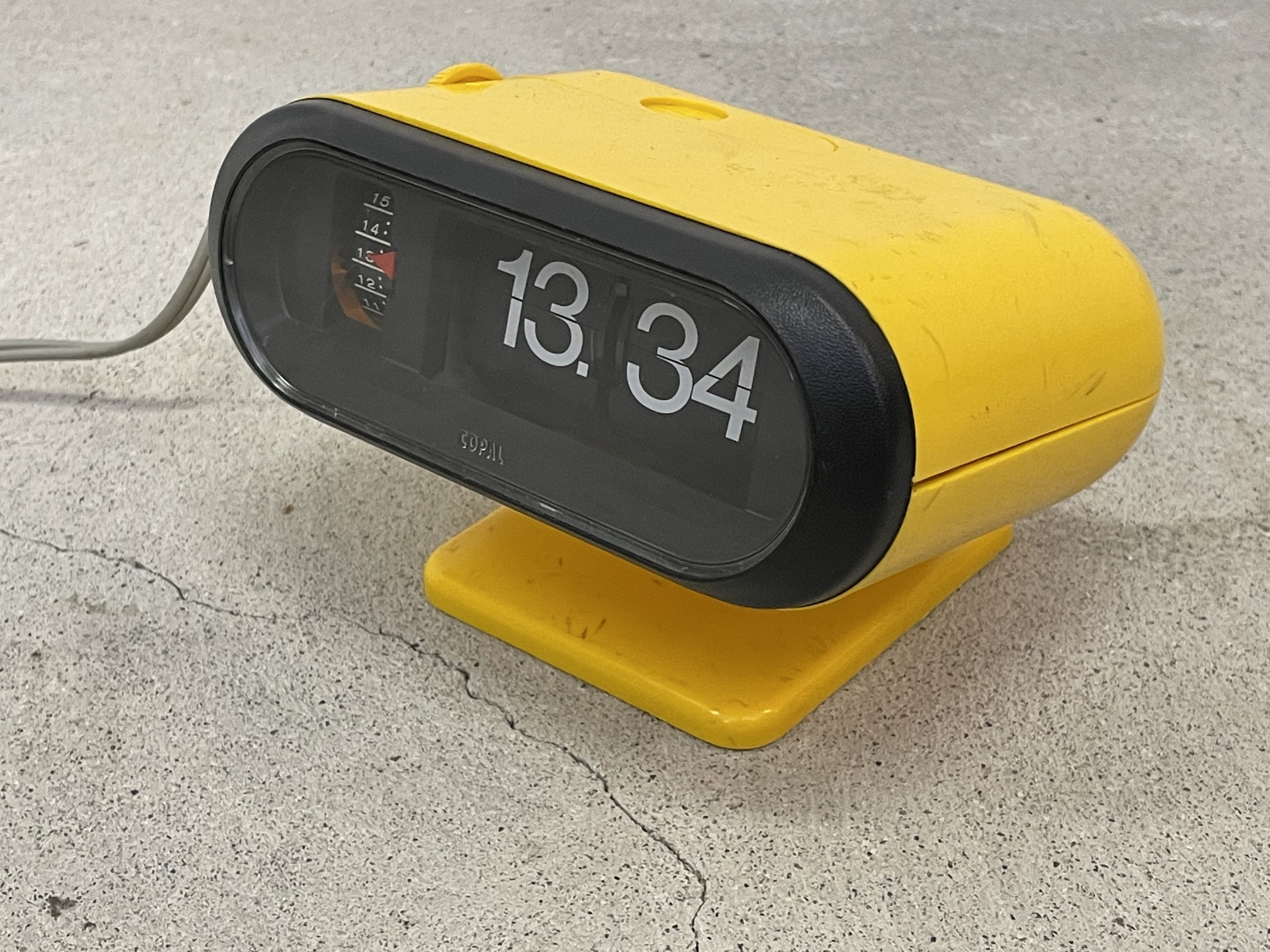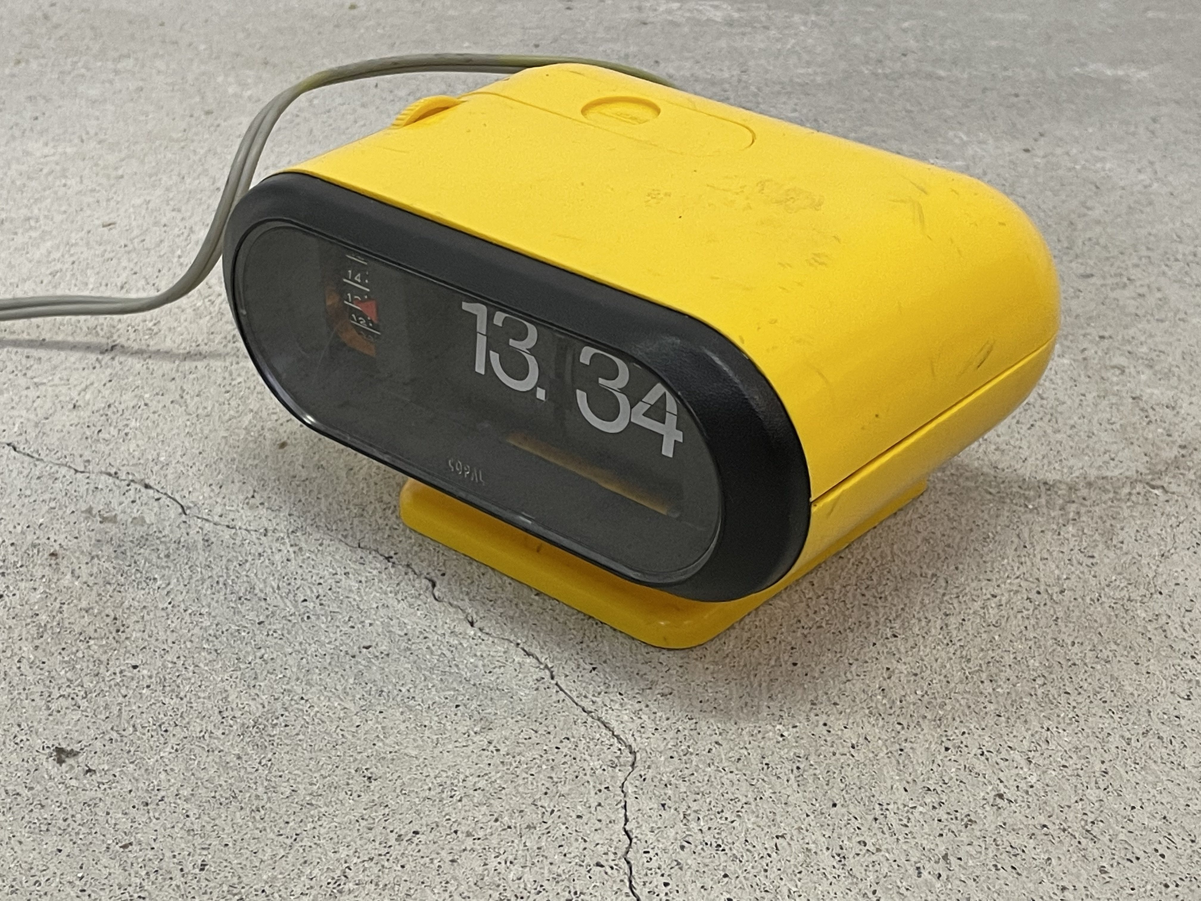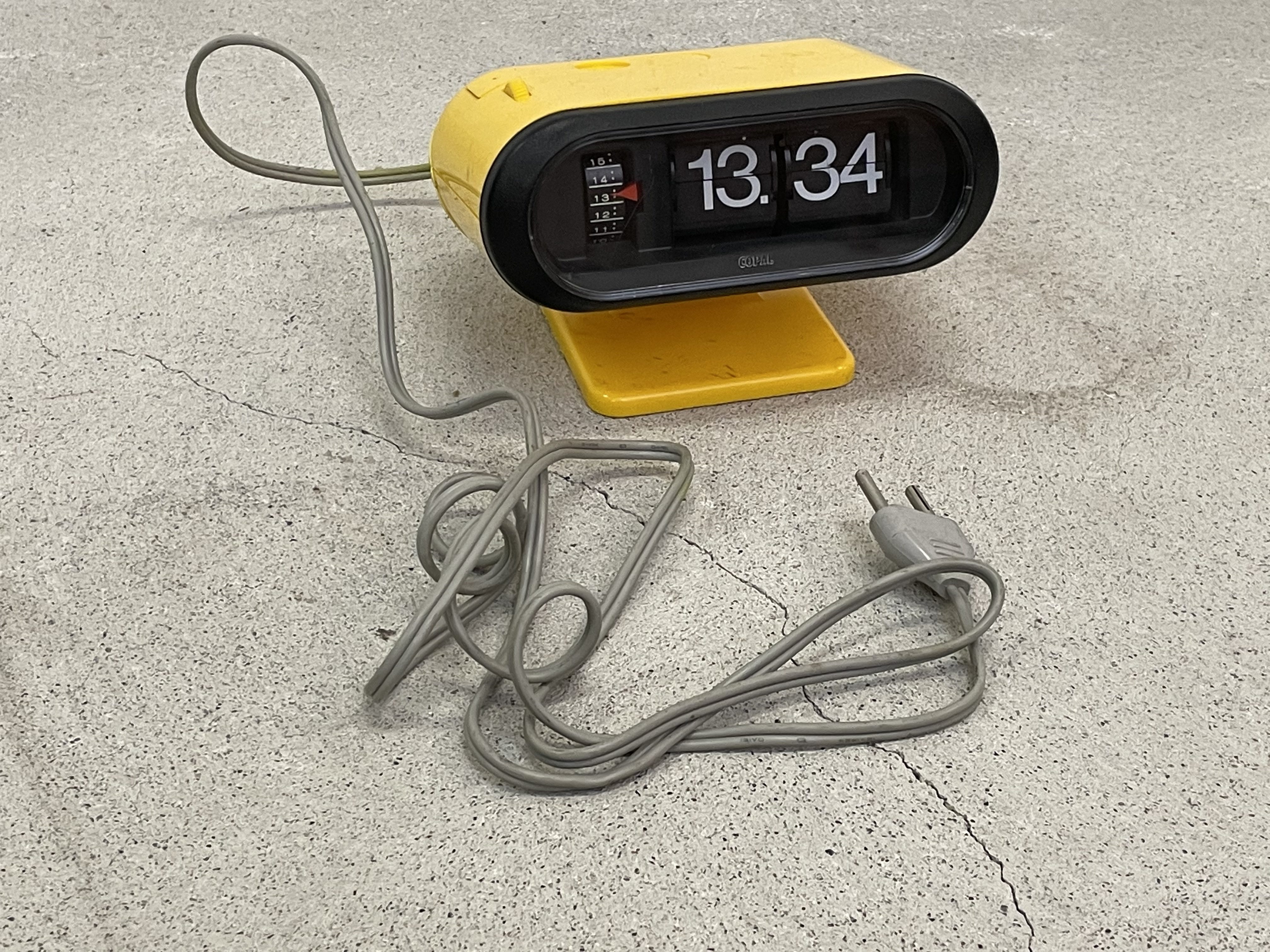Produit venduRéveil Copal légèrement inclinable sur son pied. Le réveil est rétroéclairé et les chiffres sont physiques (ils tournent sur eux-mêmes). L’horloge et la fonction réveil fonctionnent parfaitement. Le plastique n’est pas fissuré mais présente de nombreuses marques assez visibles. Le câble électrique mesure environ 1m60.