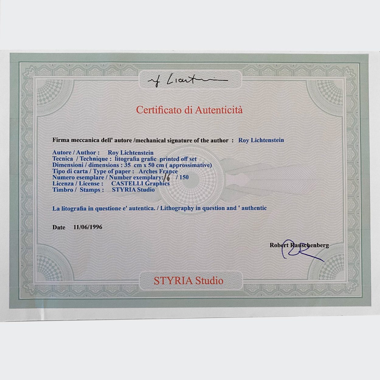 Certificat délivré par CASTELLI Graphics