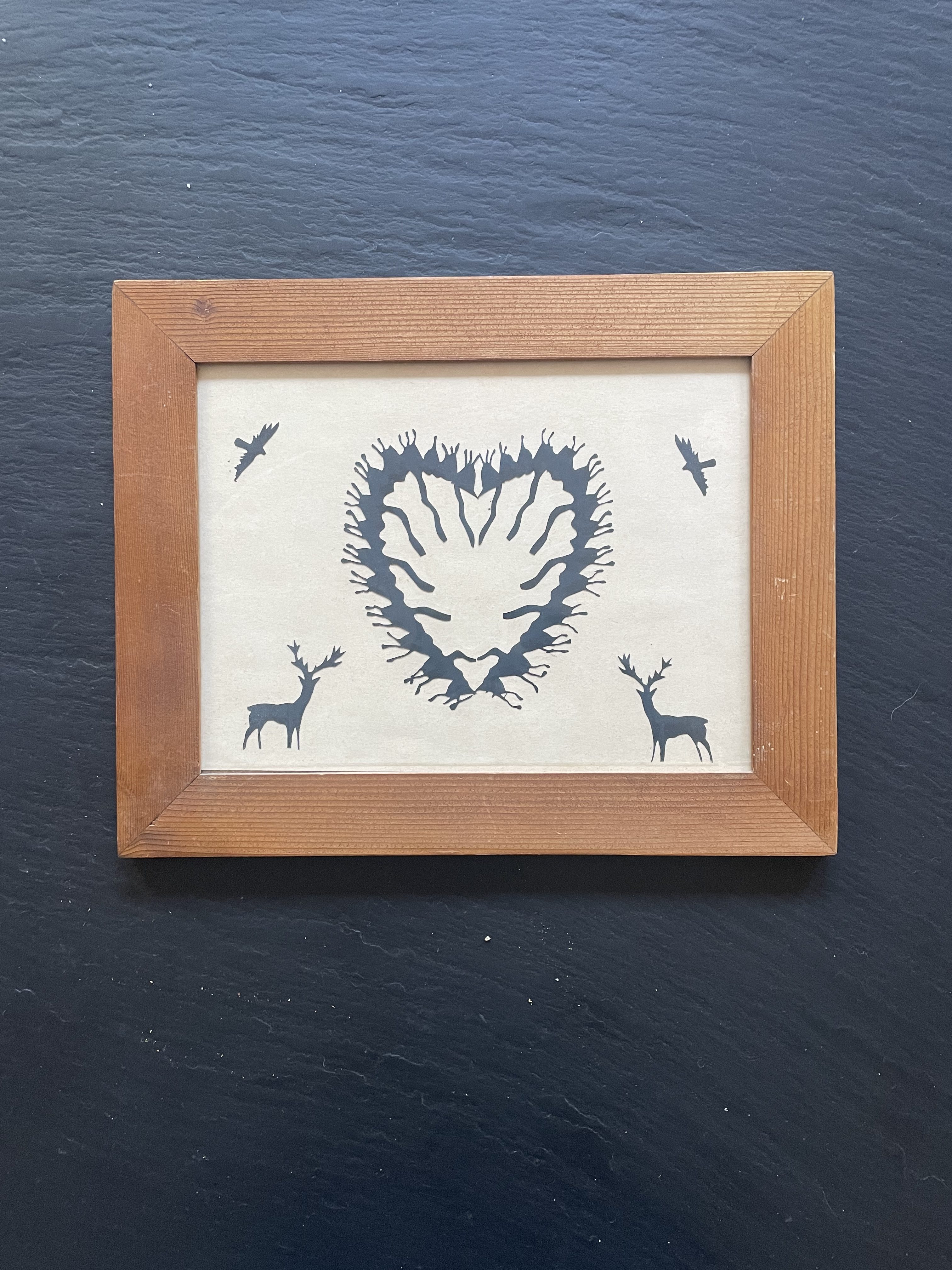 Produit venduJoli petit cadre avec découpage Suisse sur le thème de la nature et notamment des biches.