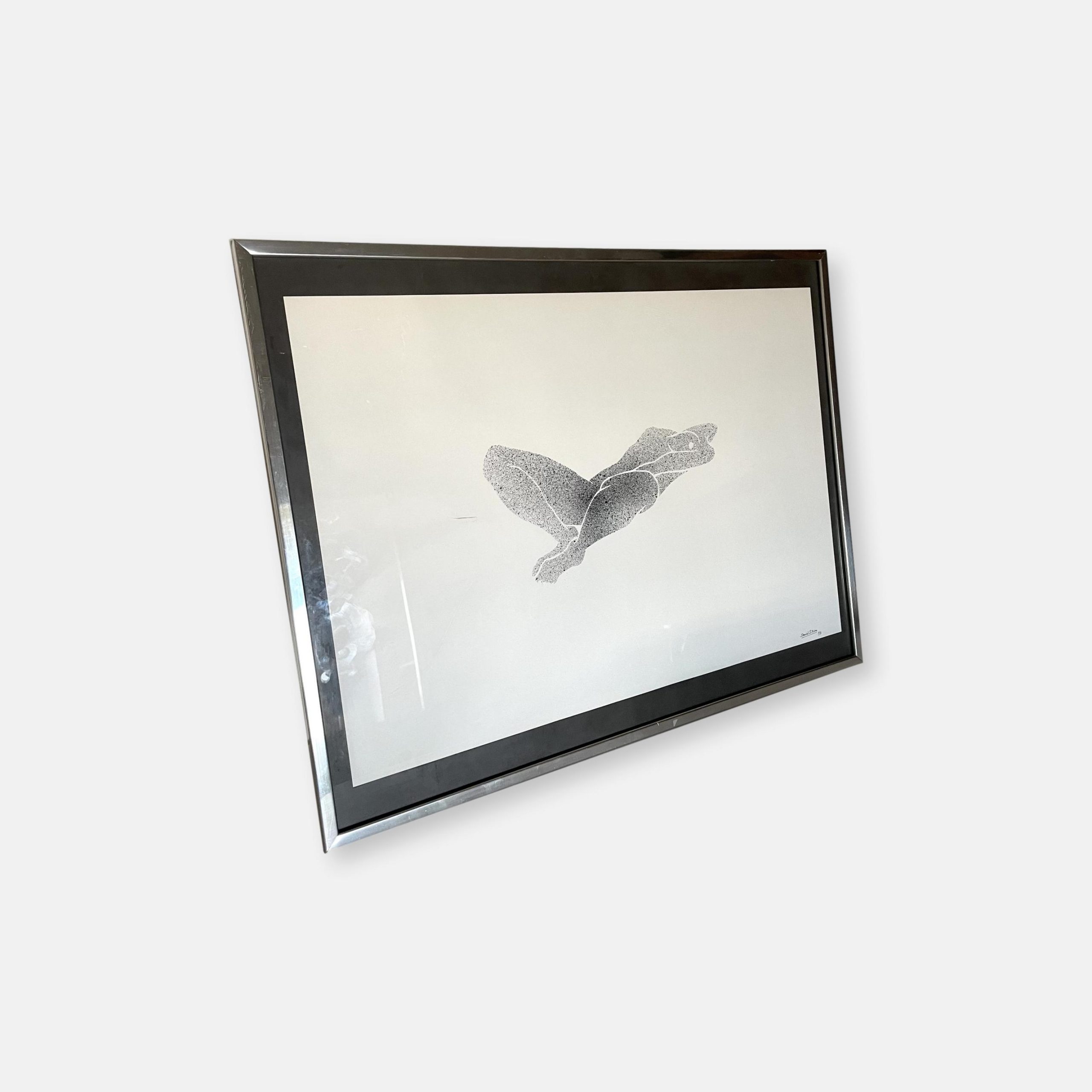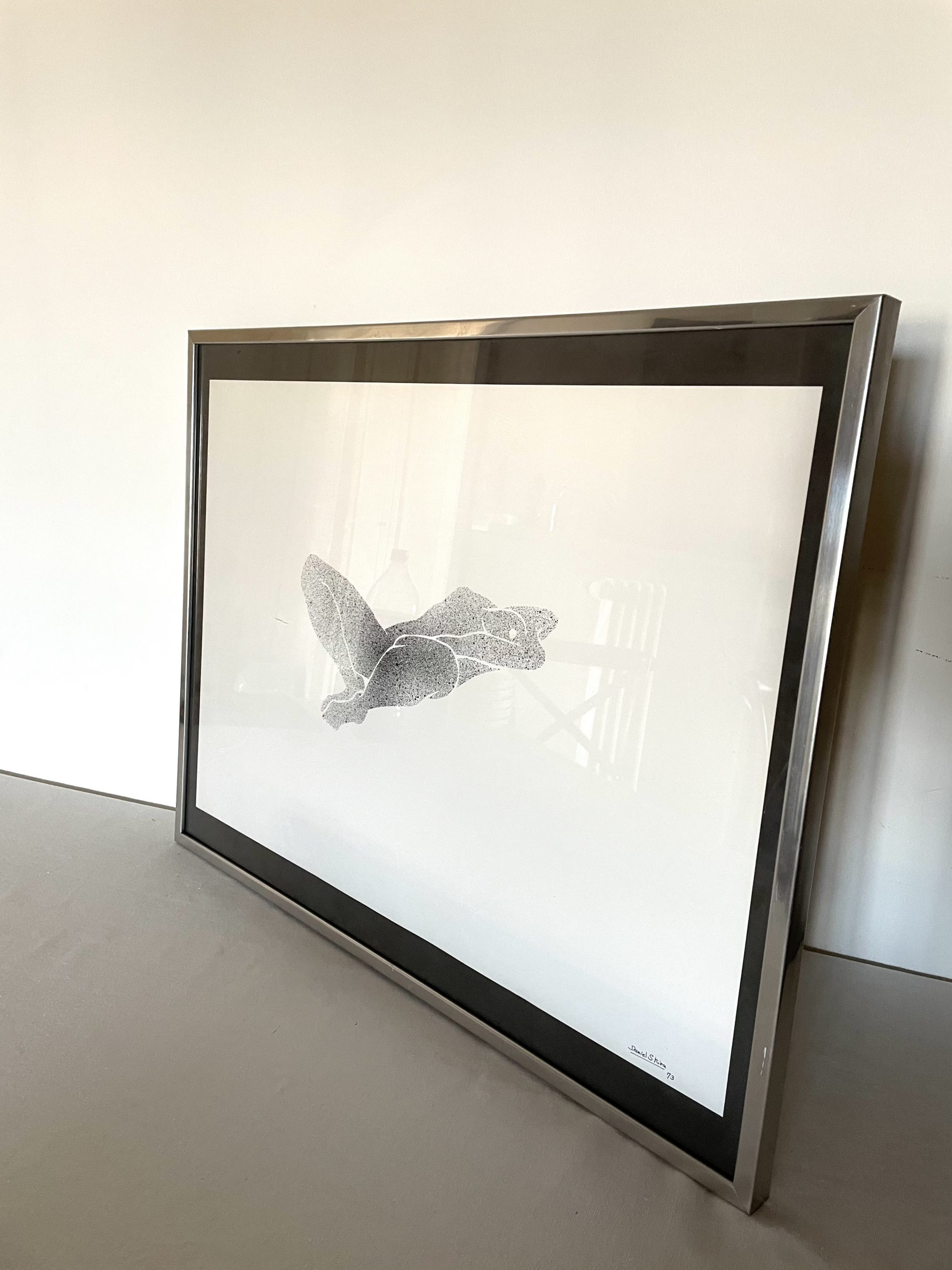 Produit venduTableau érotique travaillé au pochoir et en spray date 1973, signé Daniel Skira