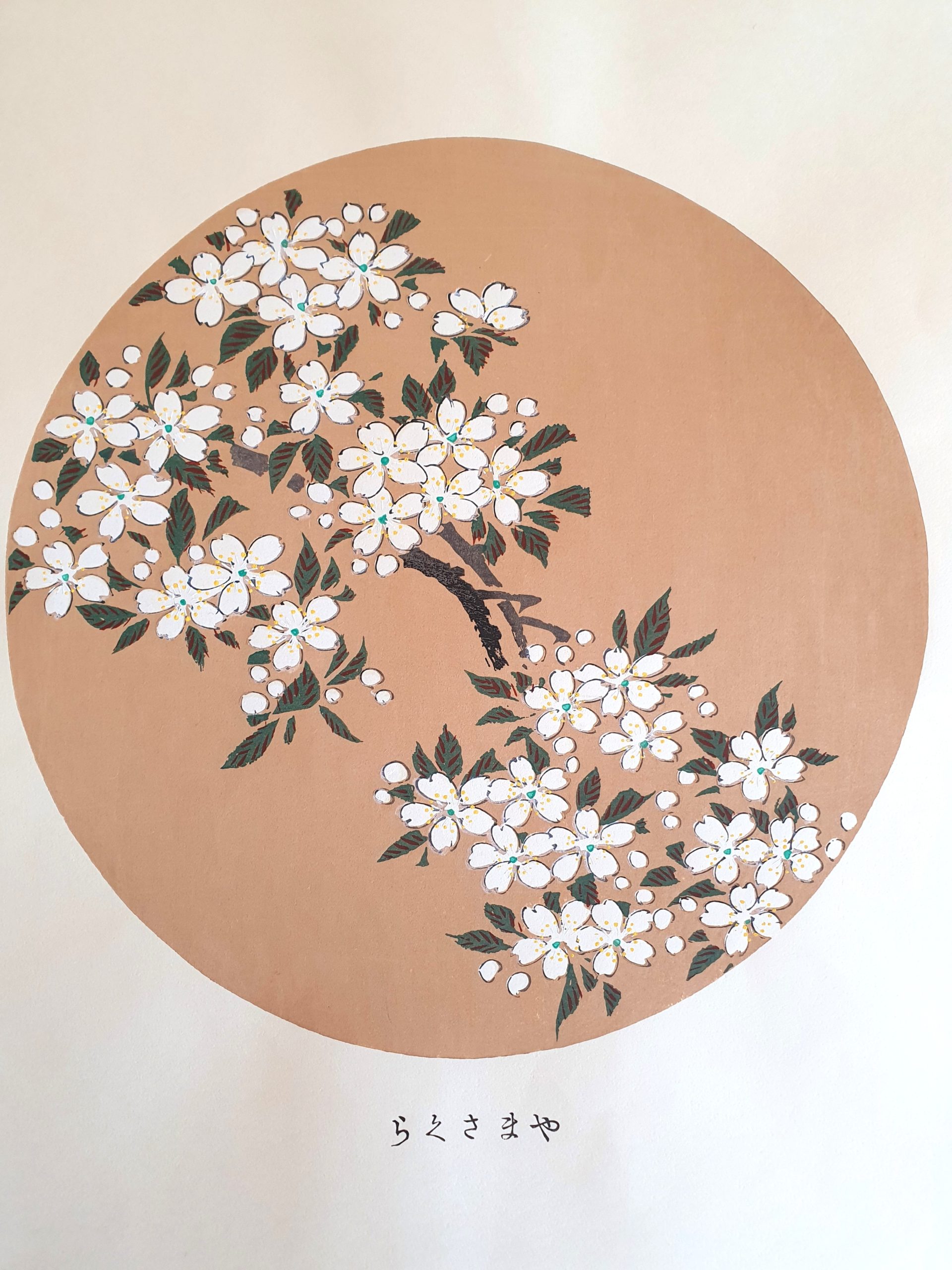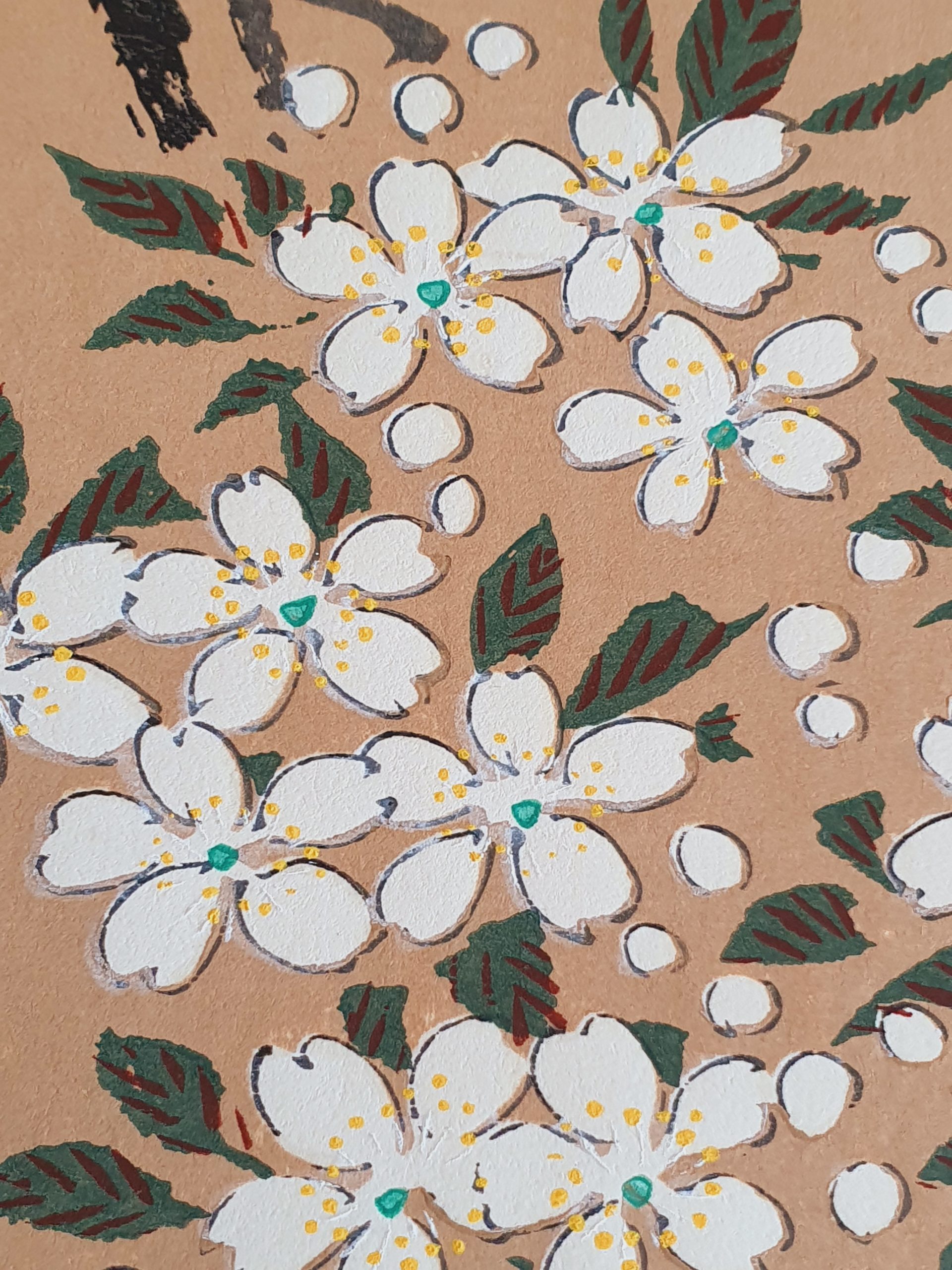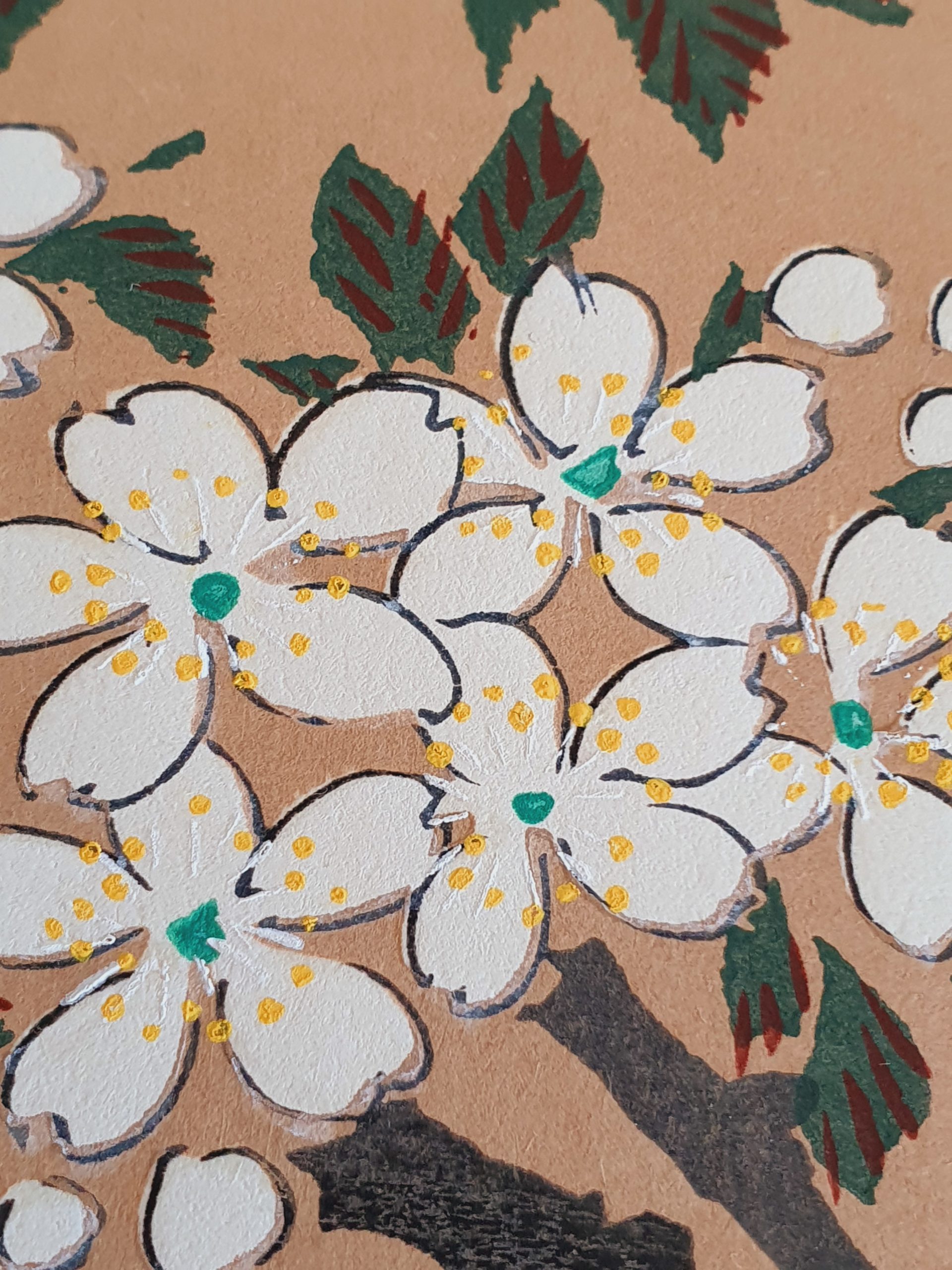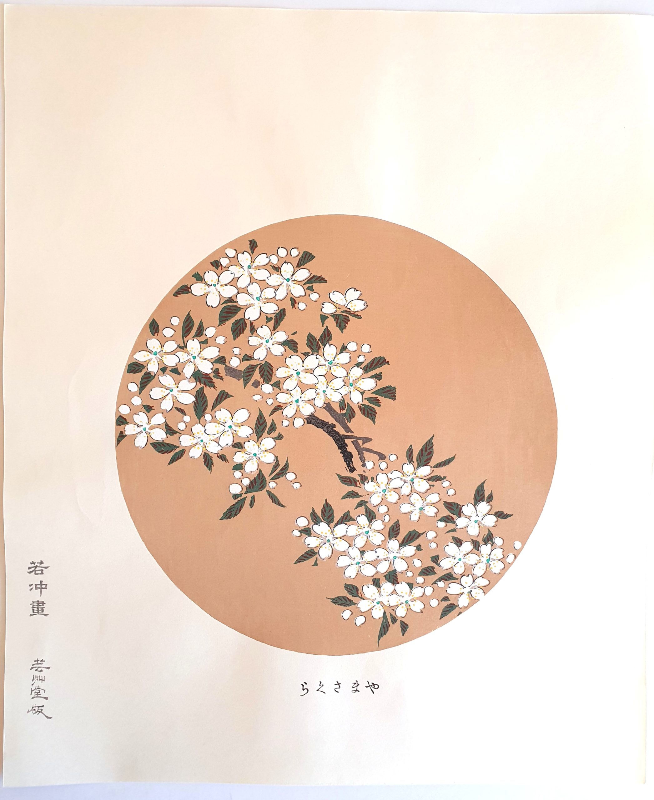 Estampe japonaise, gravure sur bois d’Ito Jakuchu « Fleurs de cerisier de montagne », Japon.