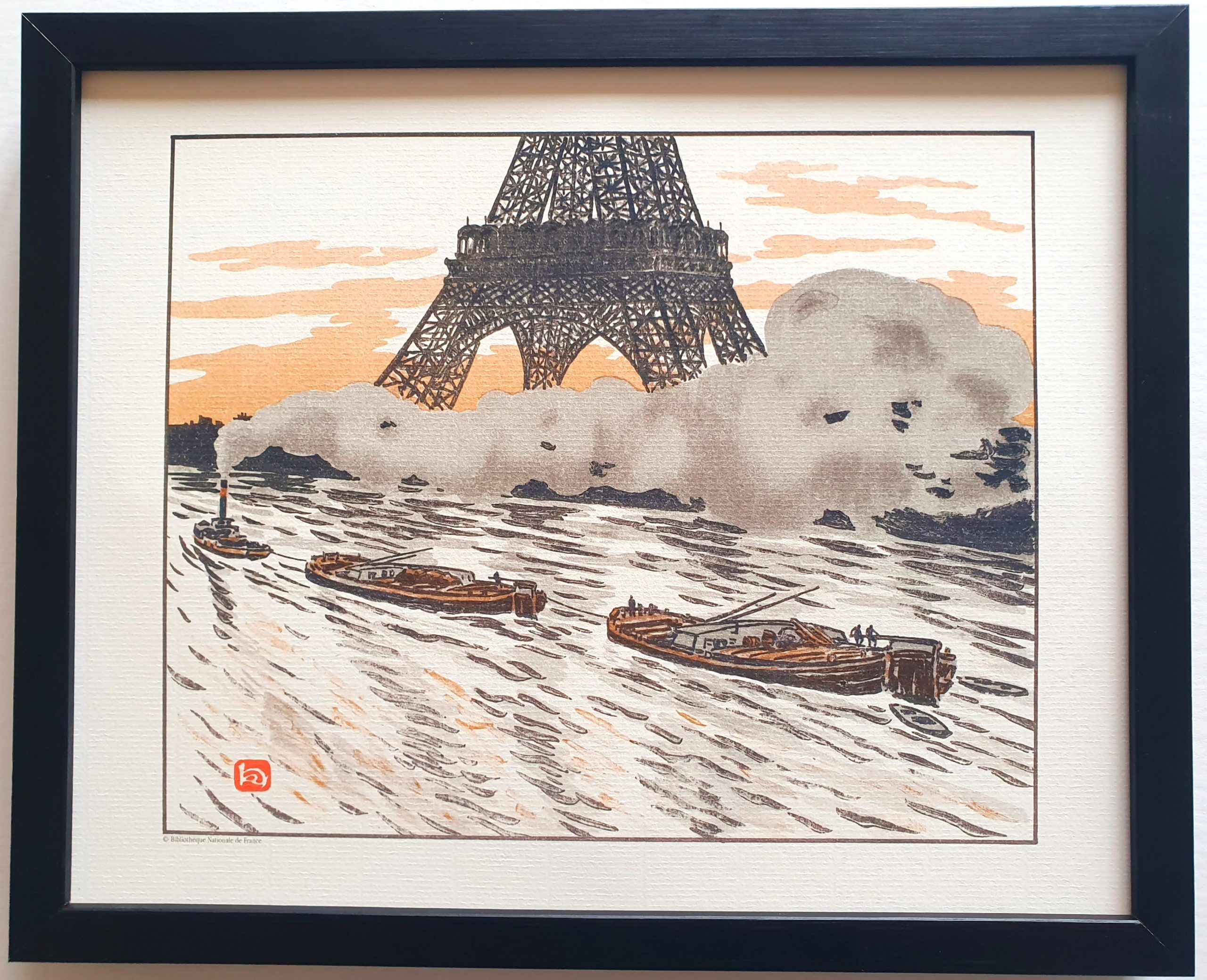 D’après l’artiste Henri Rivière (1864-1951), « Les péniches à Paris », sur papier vergé de haute qualité (220gr.).