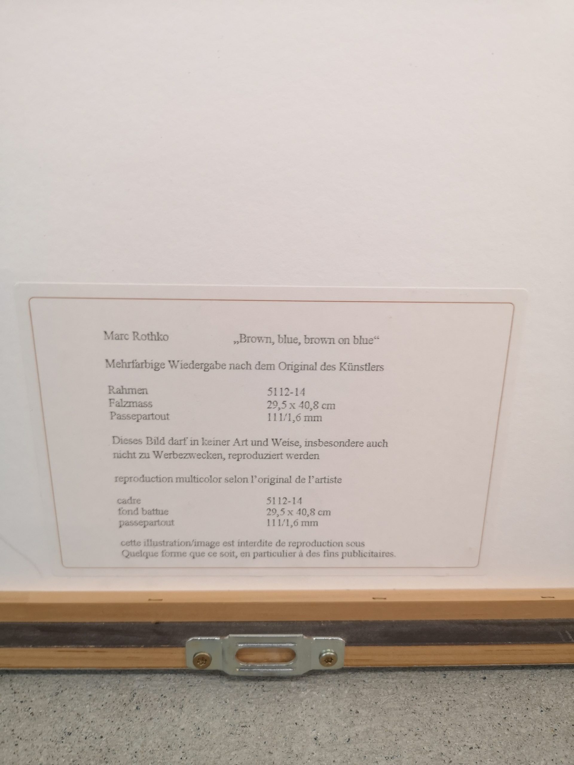 Produit venduReproduction multicolore de “Brown, blue, brown on blue” selon l’original de Marc Rothko.