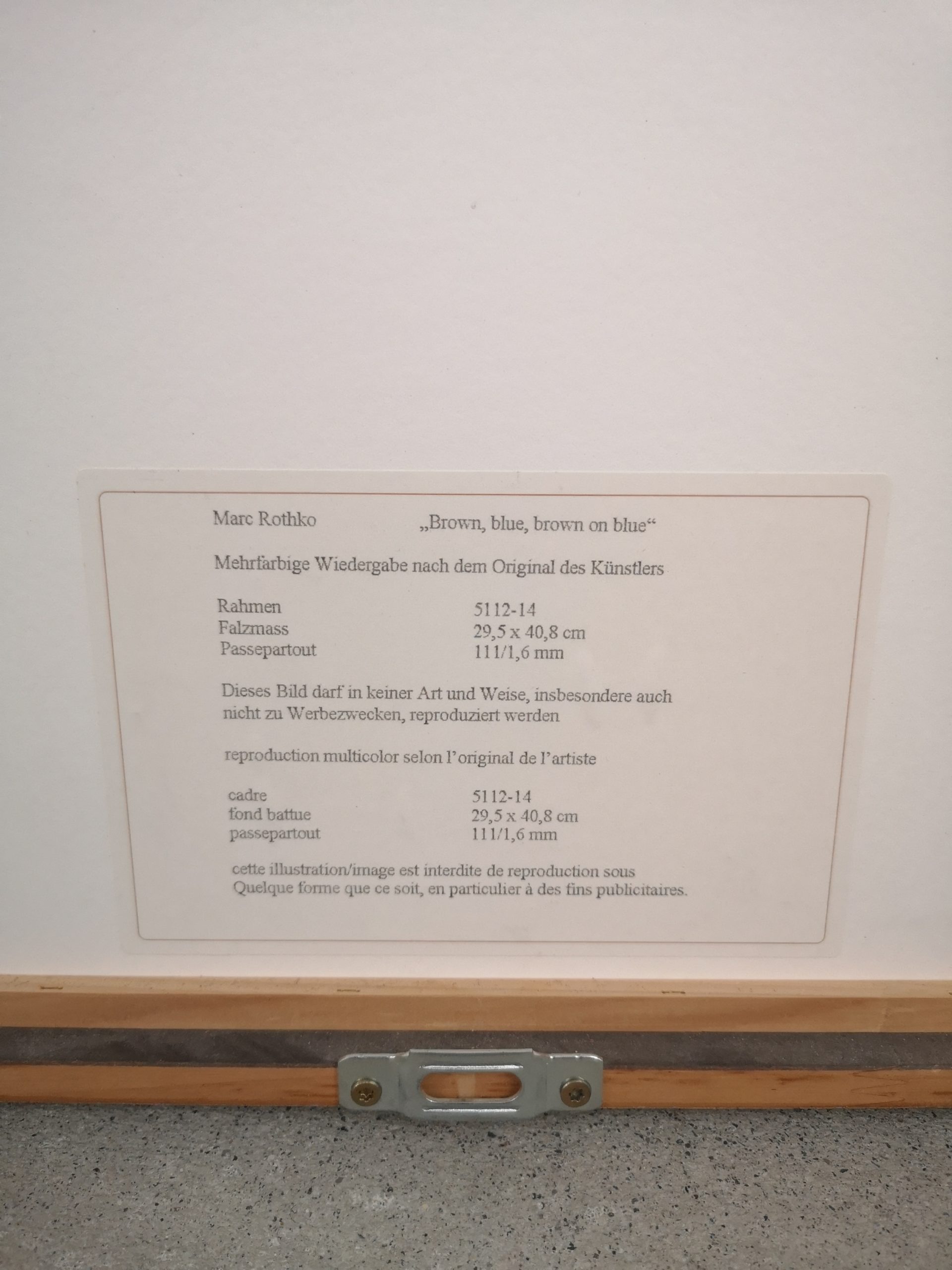 Produit venduReproduction multicolore de “Brown, blue, brown on blue” selon l’original de Marc Rothko.