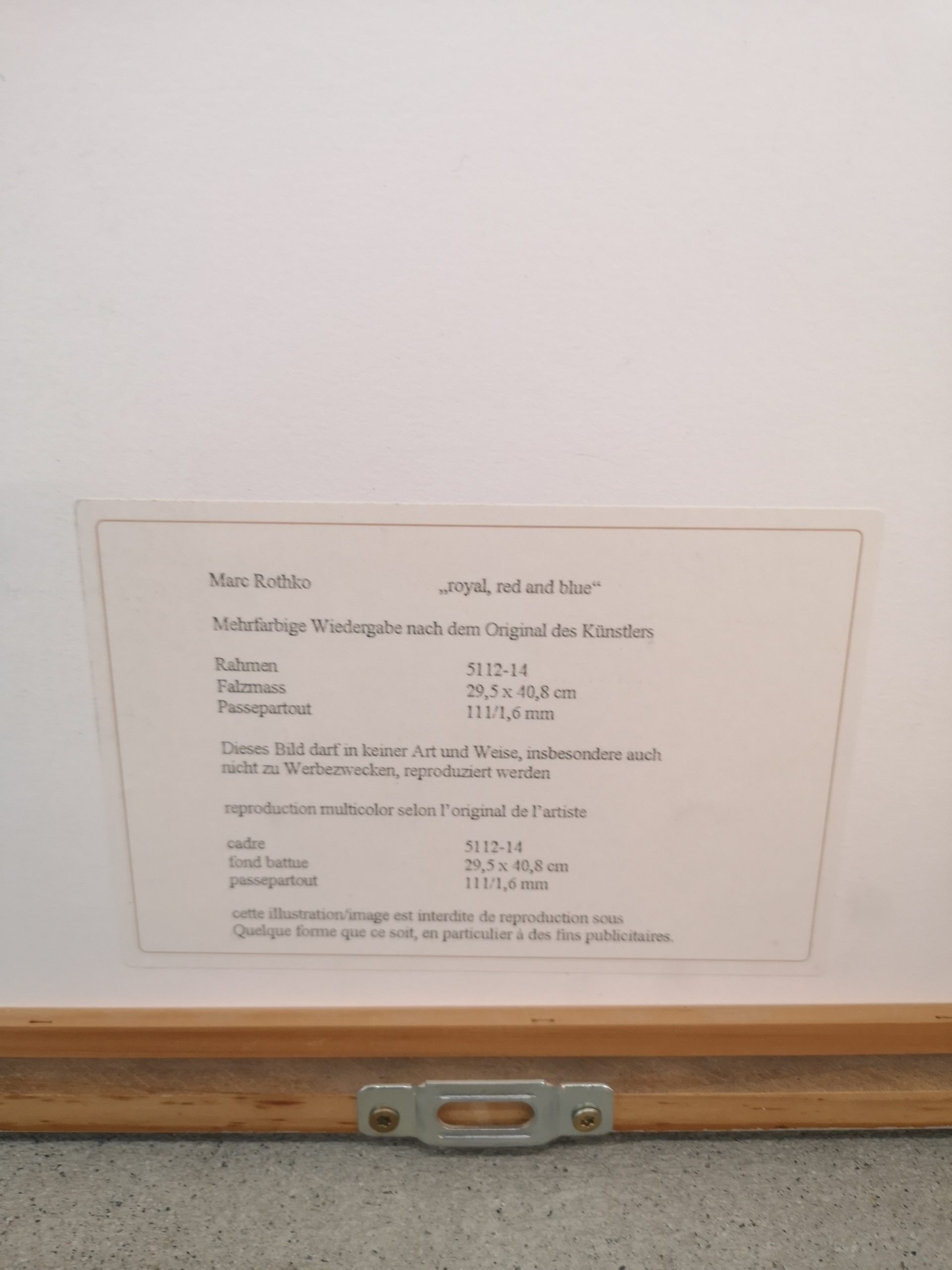 Produit venduReproduction multicolore de “Royal, red and blue” selon l’original de Marc Rothko.