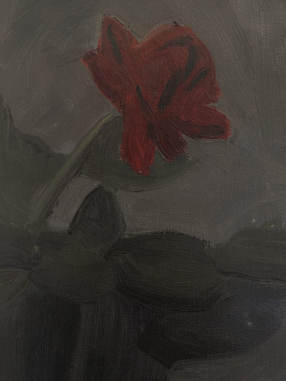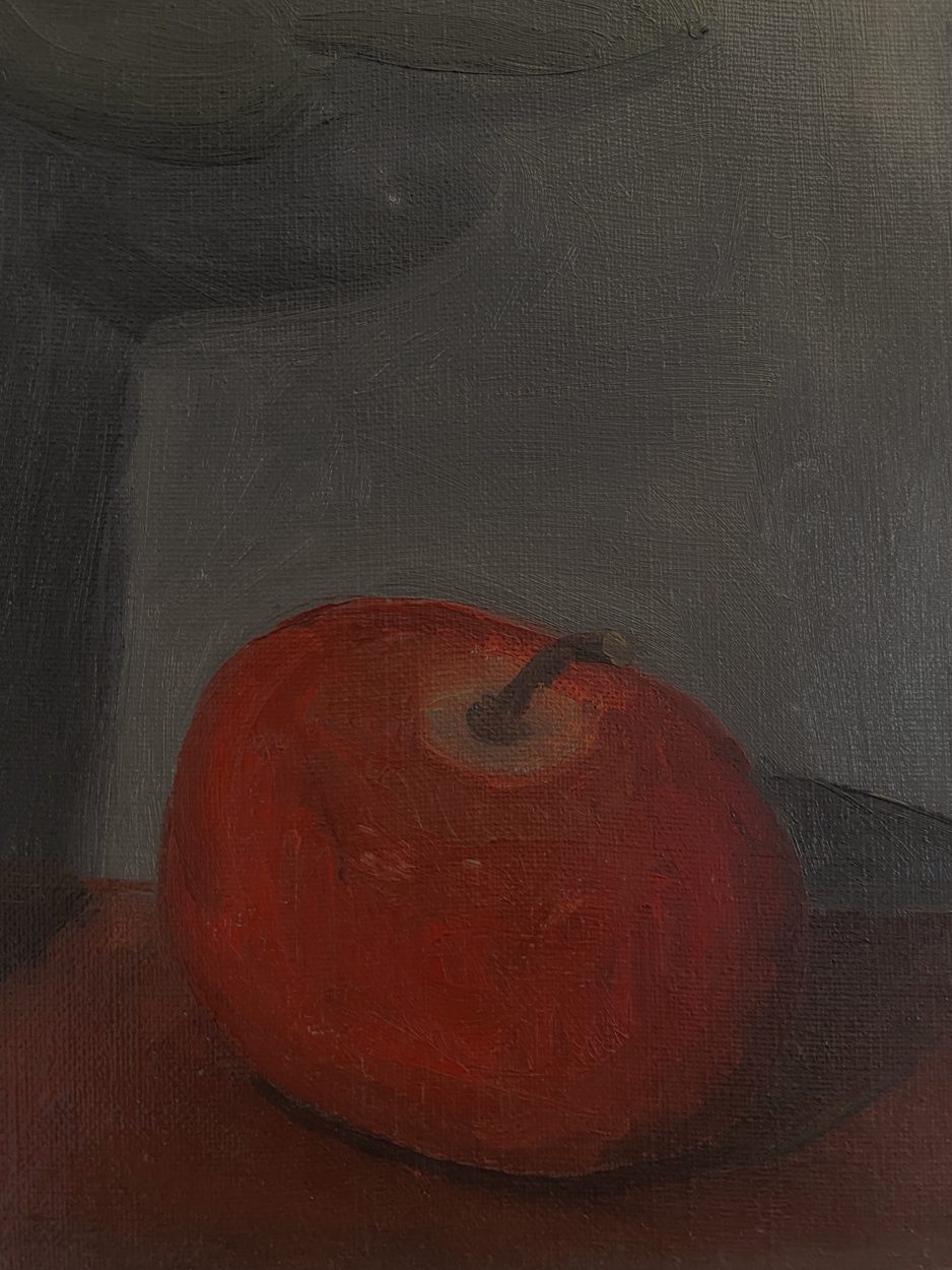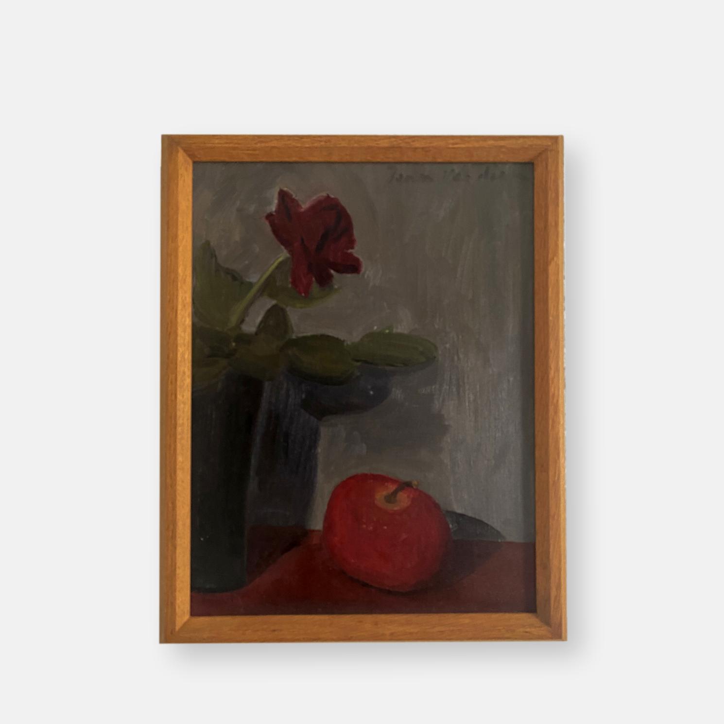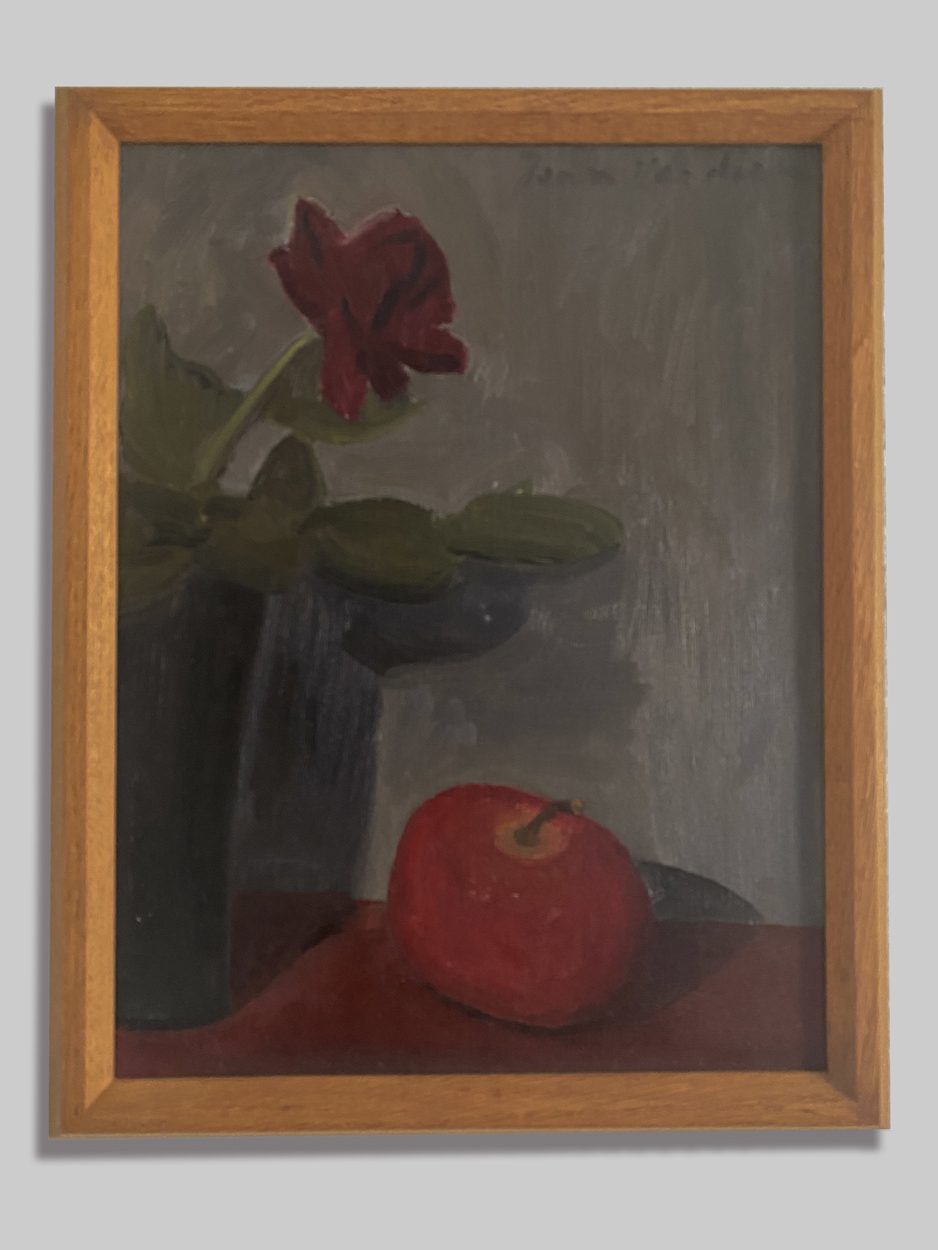 Nature morte d’une rose et d’une pomme (titre inscrit au dos de la toile)