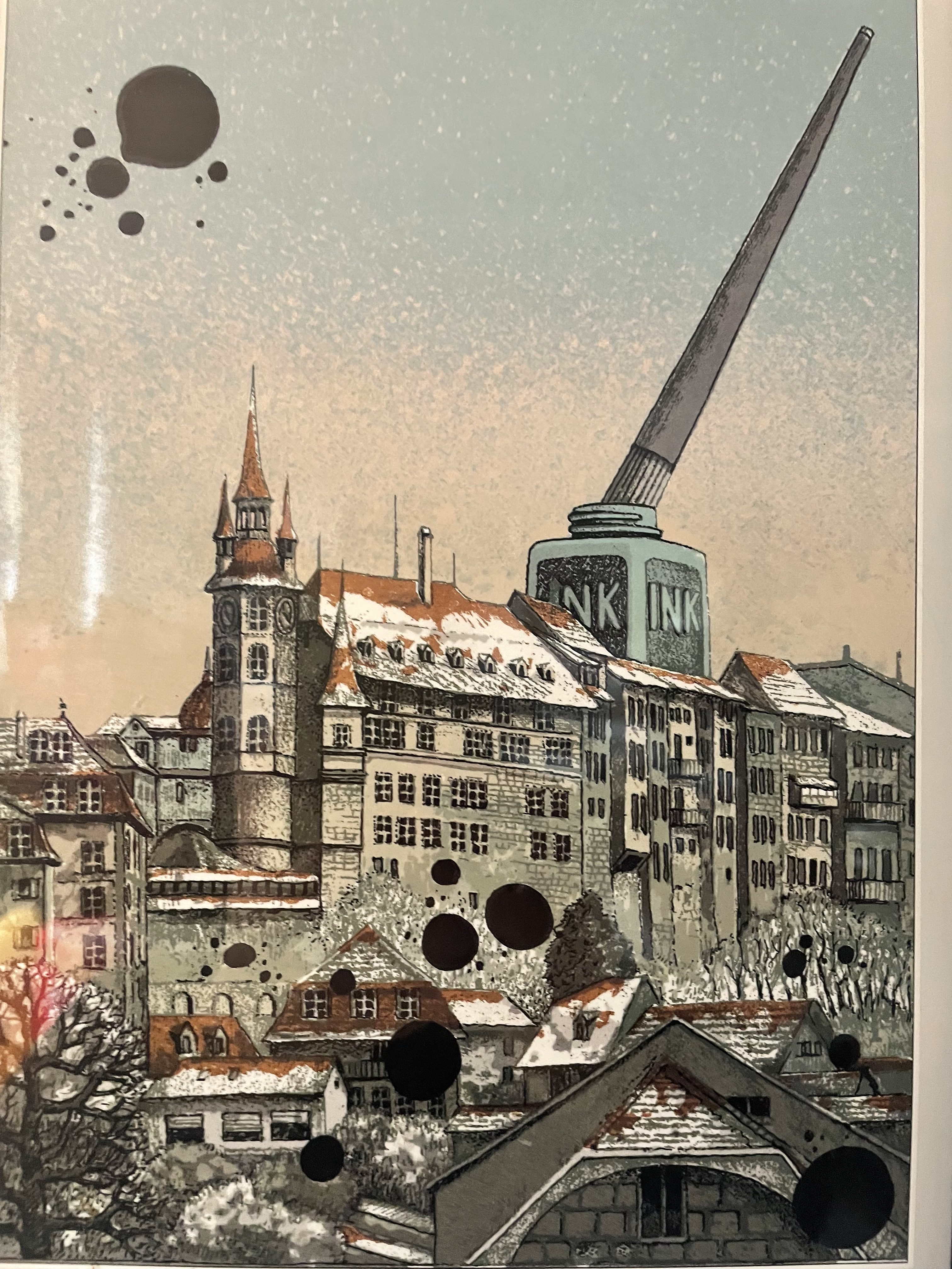 Produit venduSérigraphie de l’artiste Fribourgeois Jean-Pierre Humbert. Ne en 1947 et toujours actif, JP Humbert possède une galerie dans le centre de Fribourg.