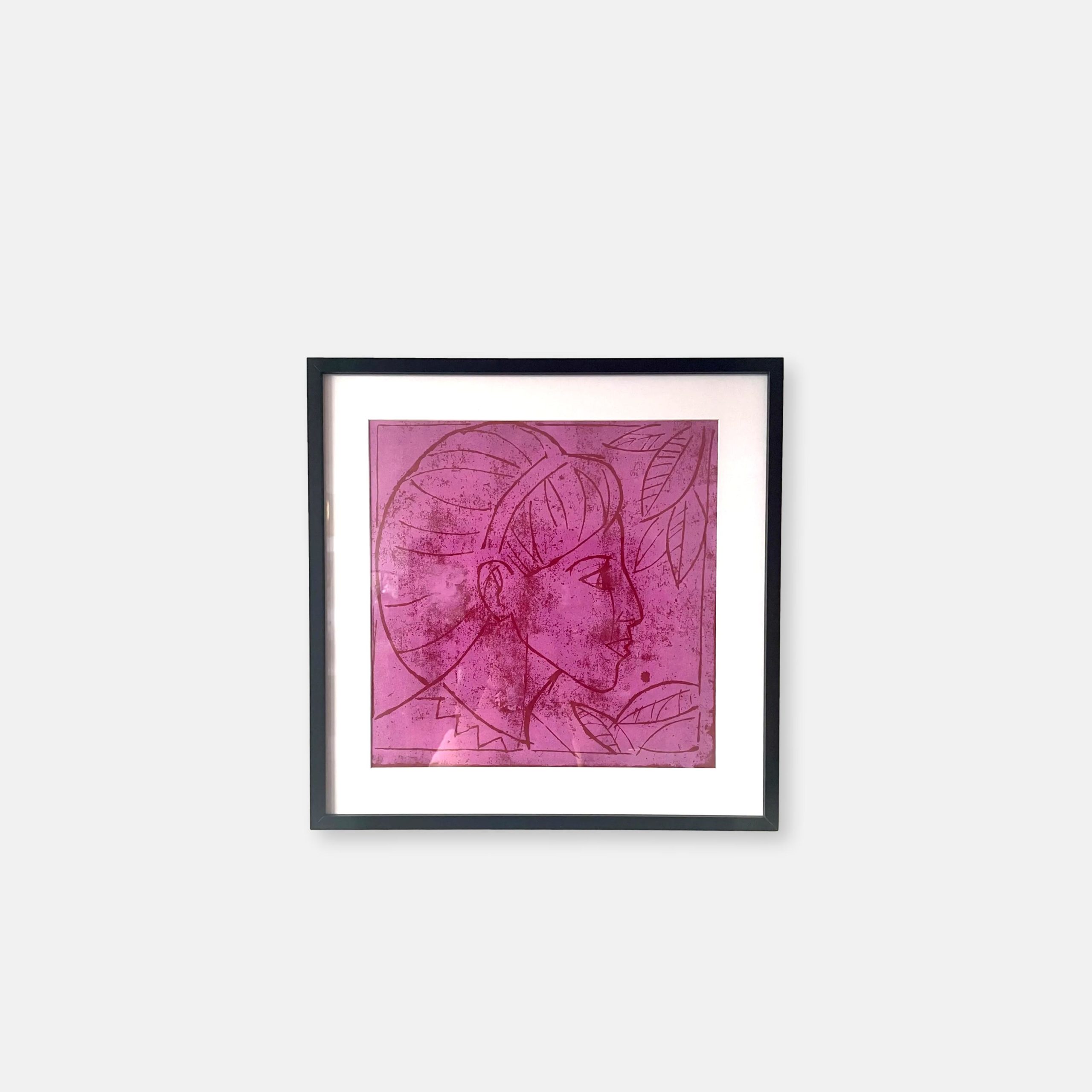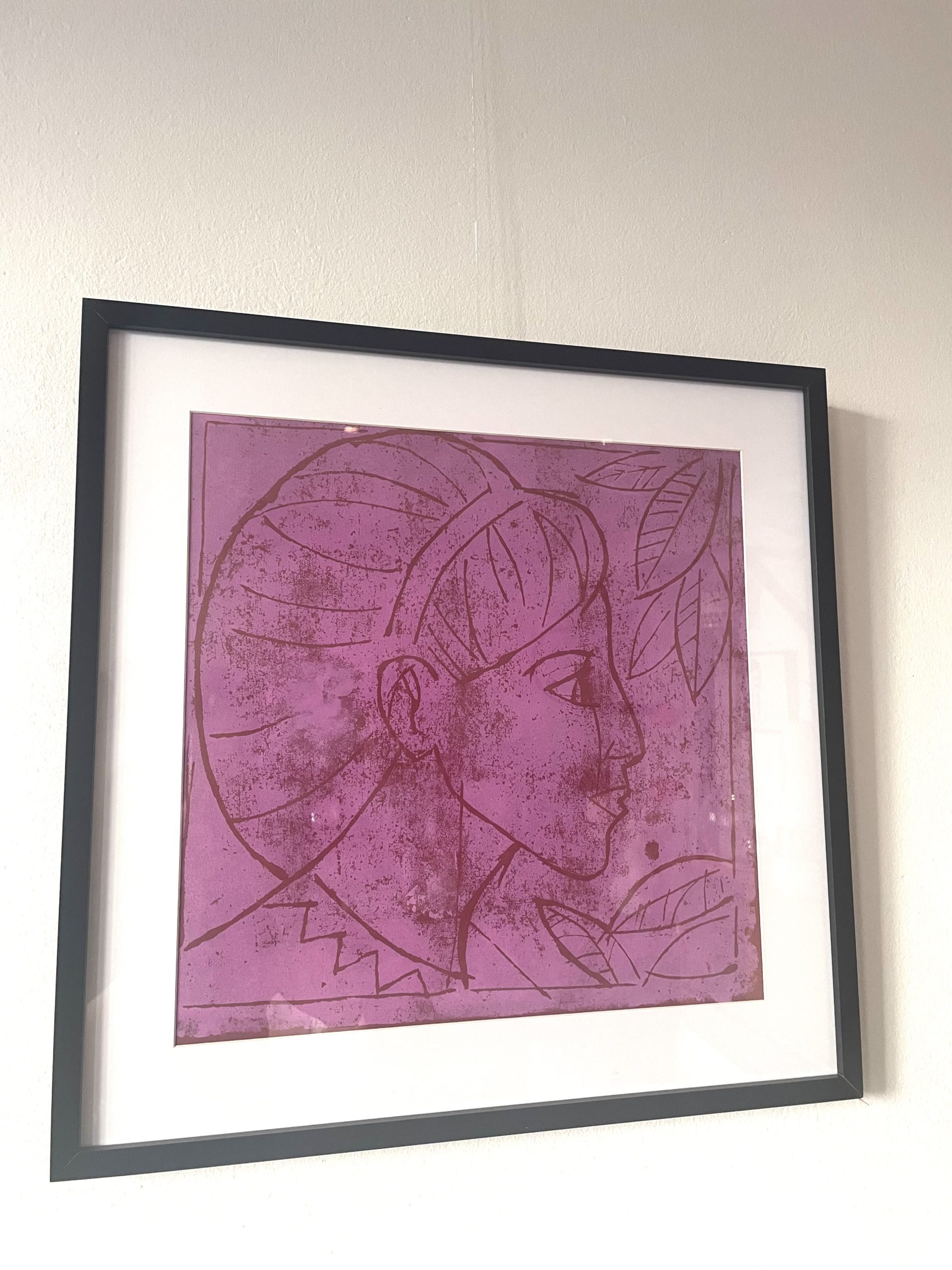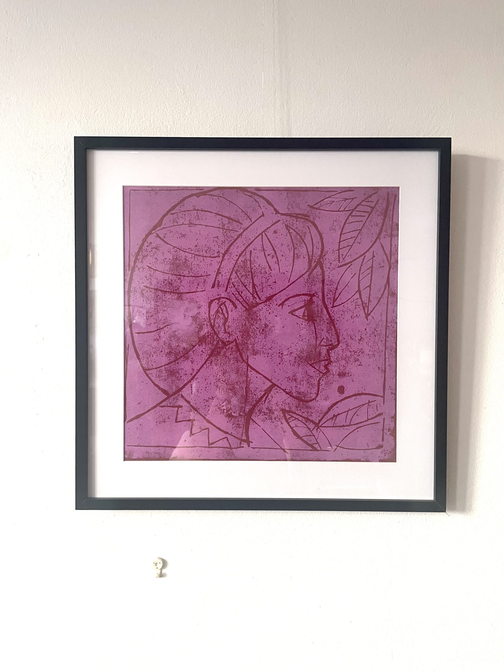 Produit venduSérigraphie sur papier rose/violet inspirée de la muse de Picasso « Sylvette ».