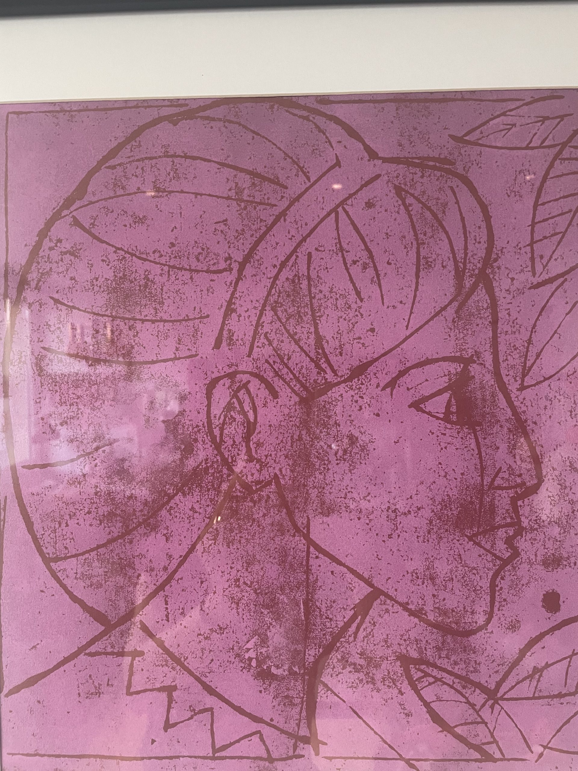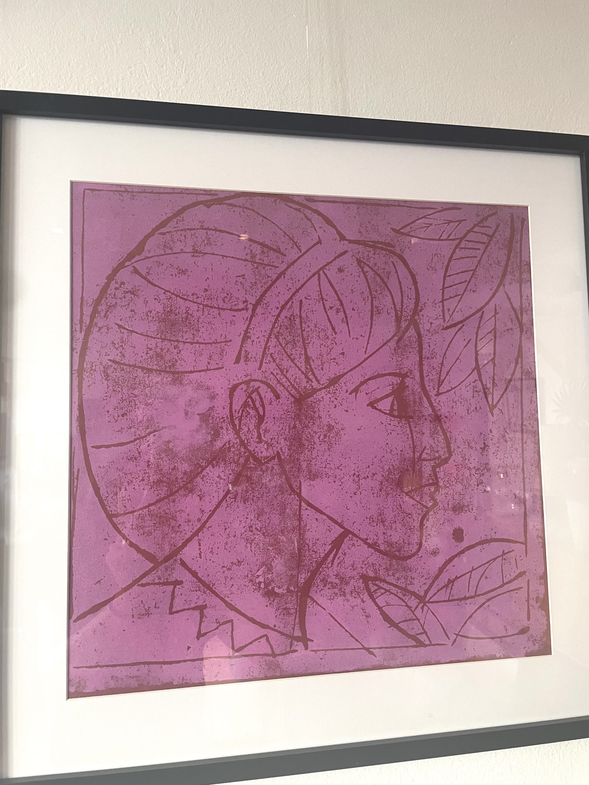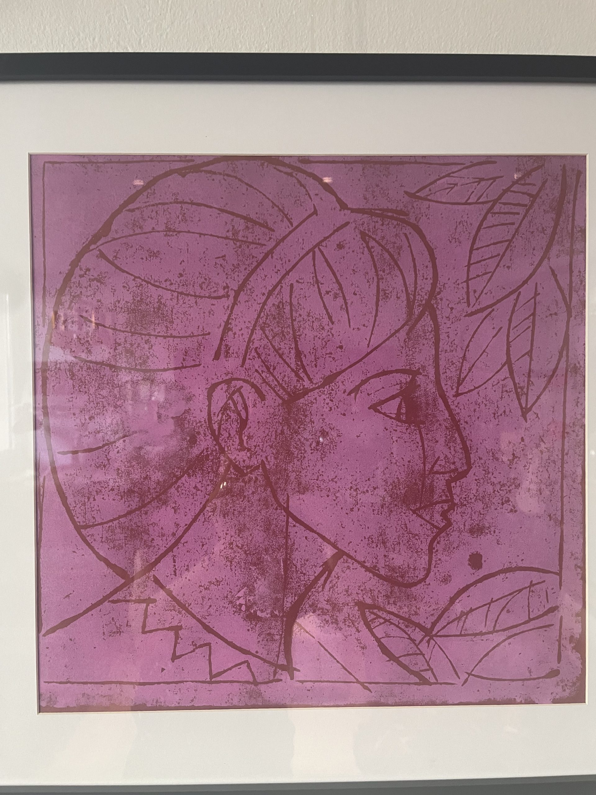 Produit venduSérigraphie sur papier rose/violet inspirée de la muse de Picasso « Sylvette ».