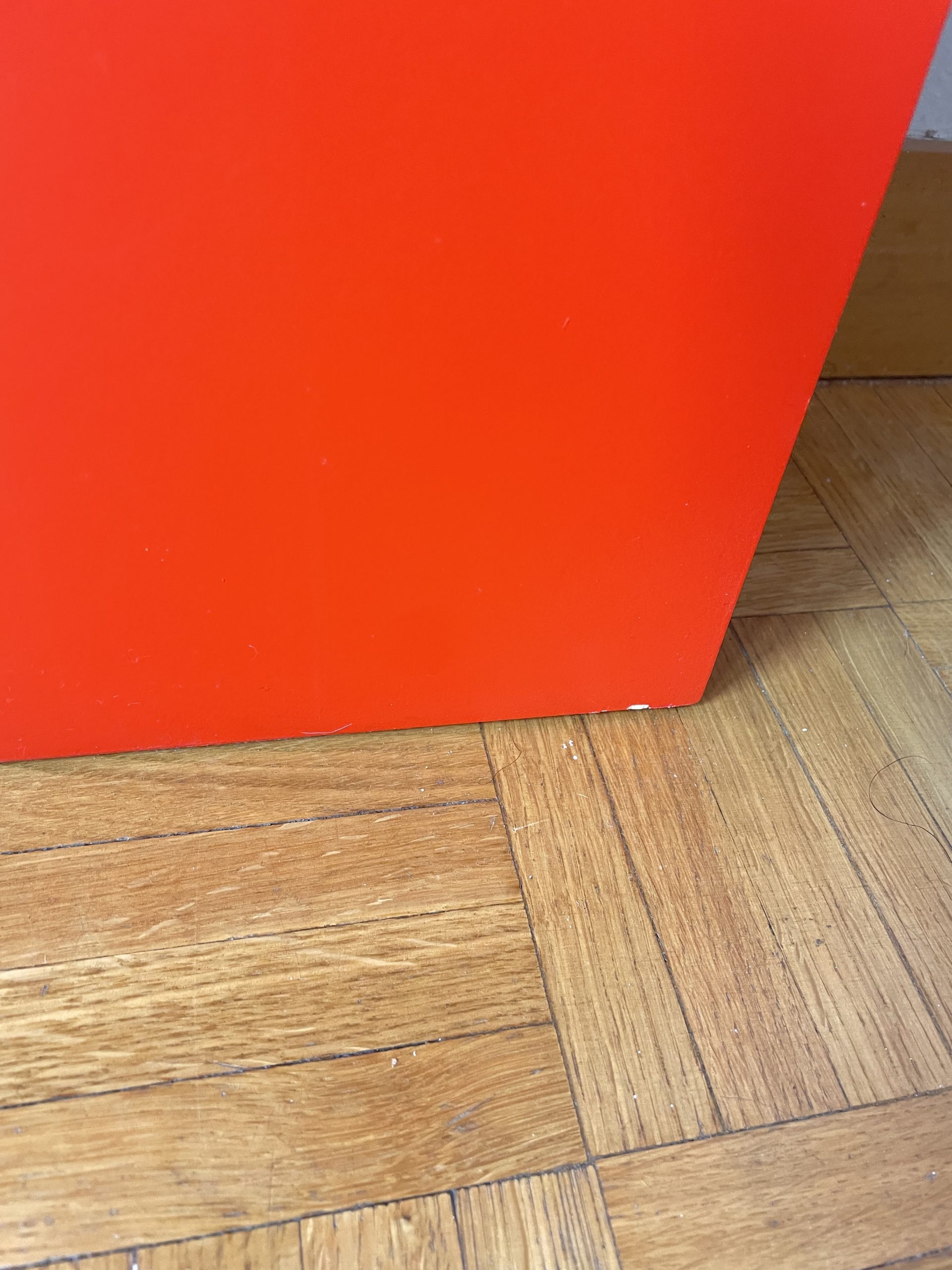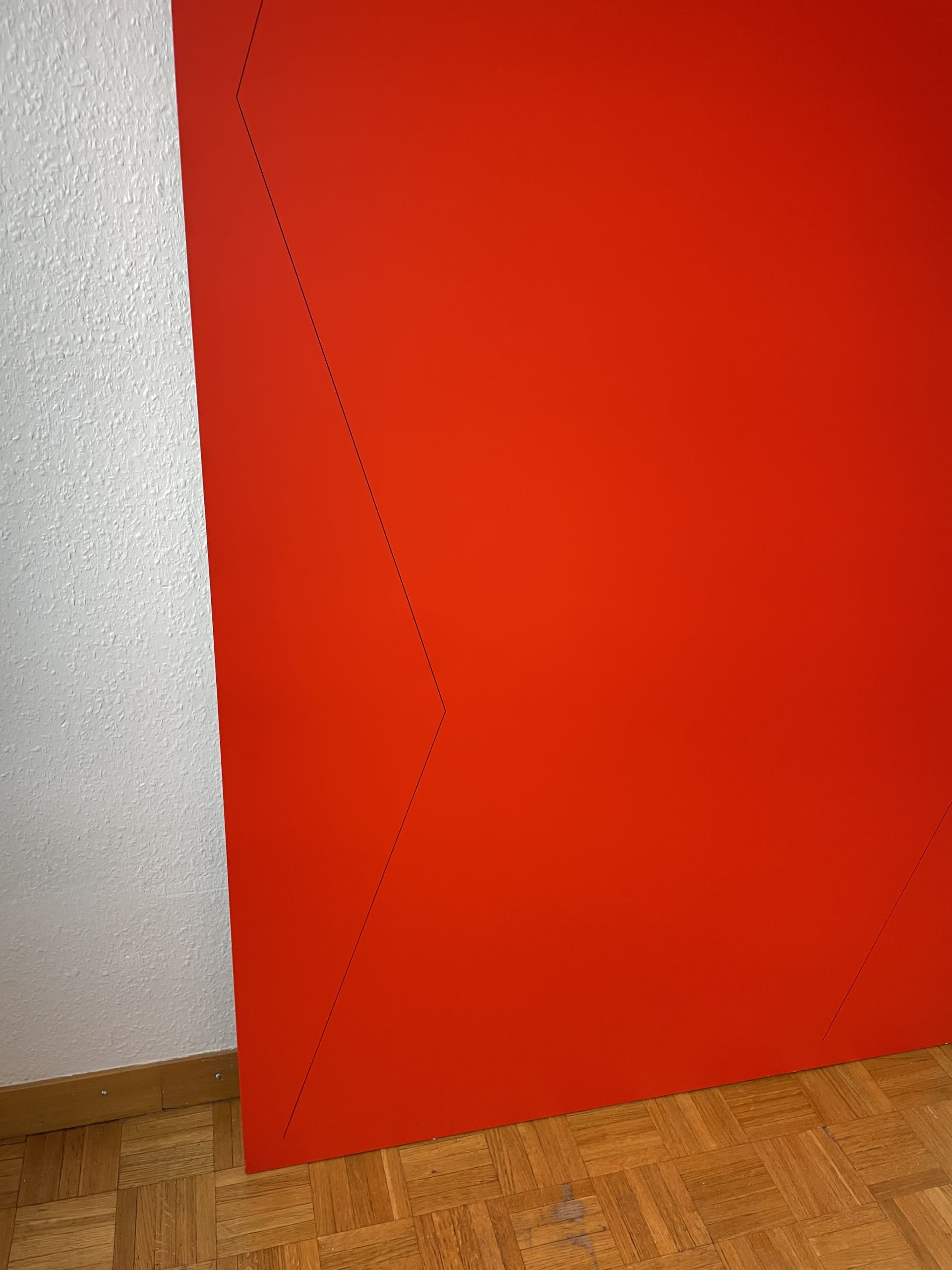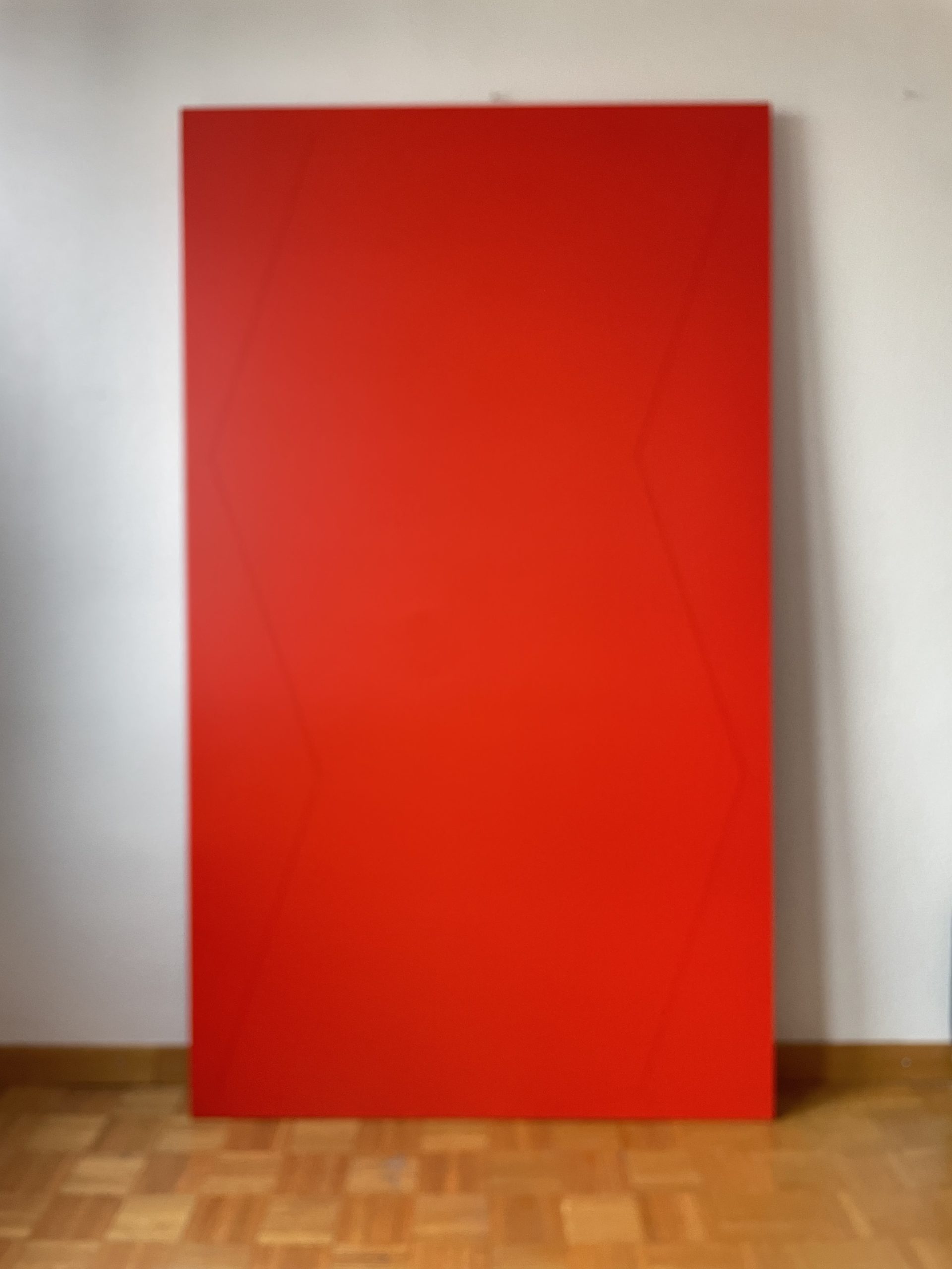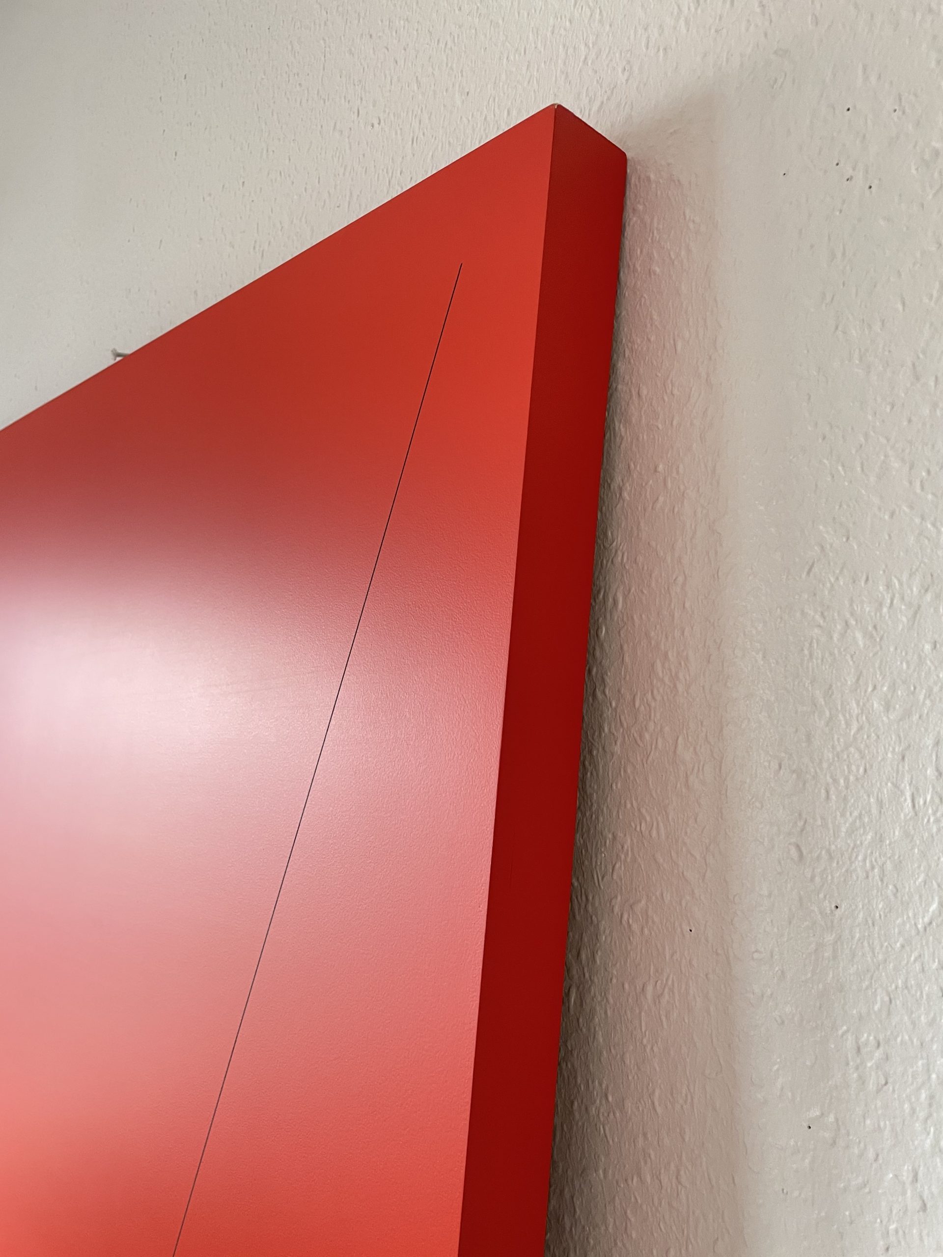 Le tableau format XXL, de couleur rouge avec 2 lignes de couleur grise discrètes, est idéal dans un espace design, pour une décoration contemporaine et affirmée.