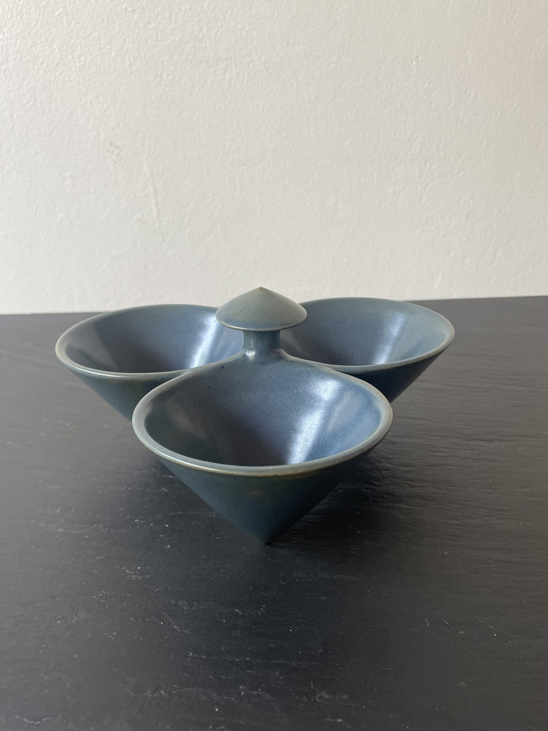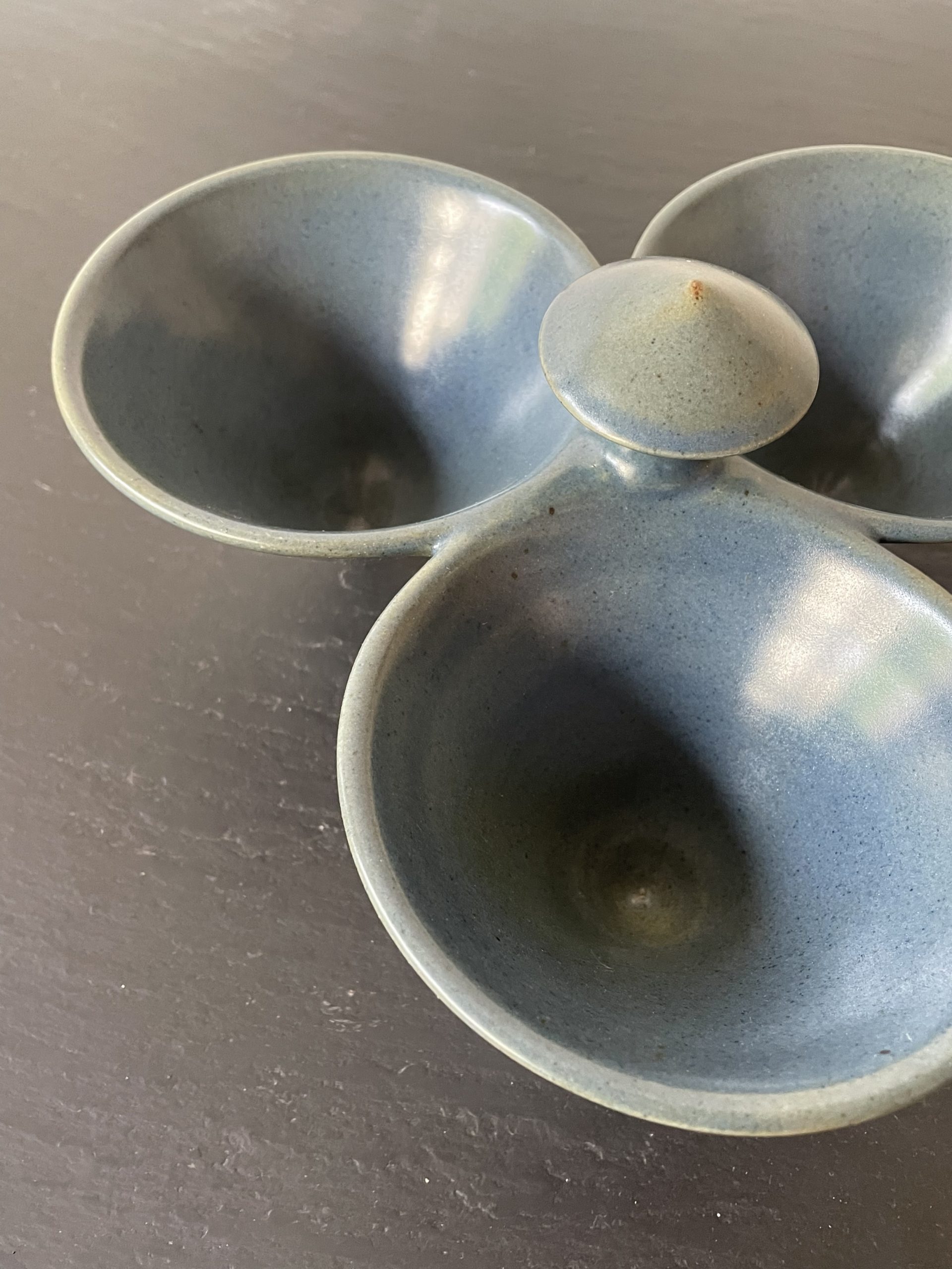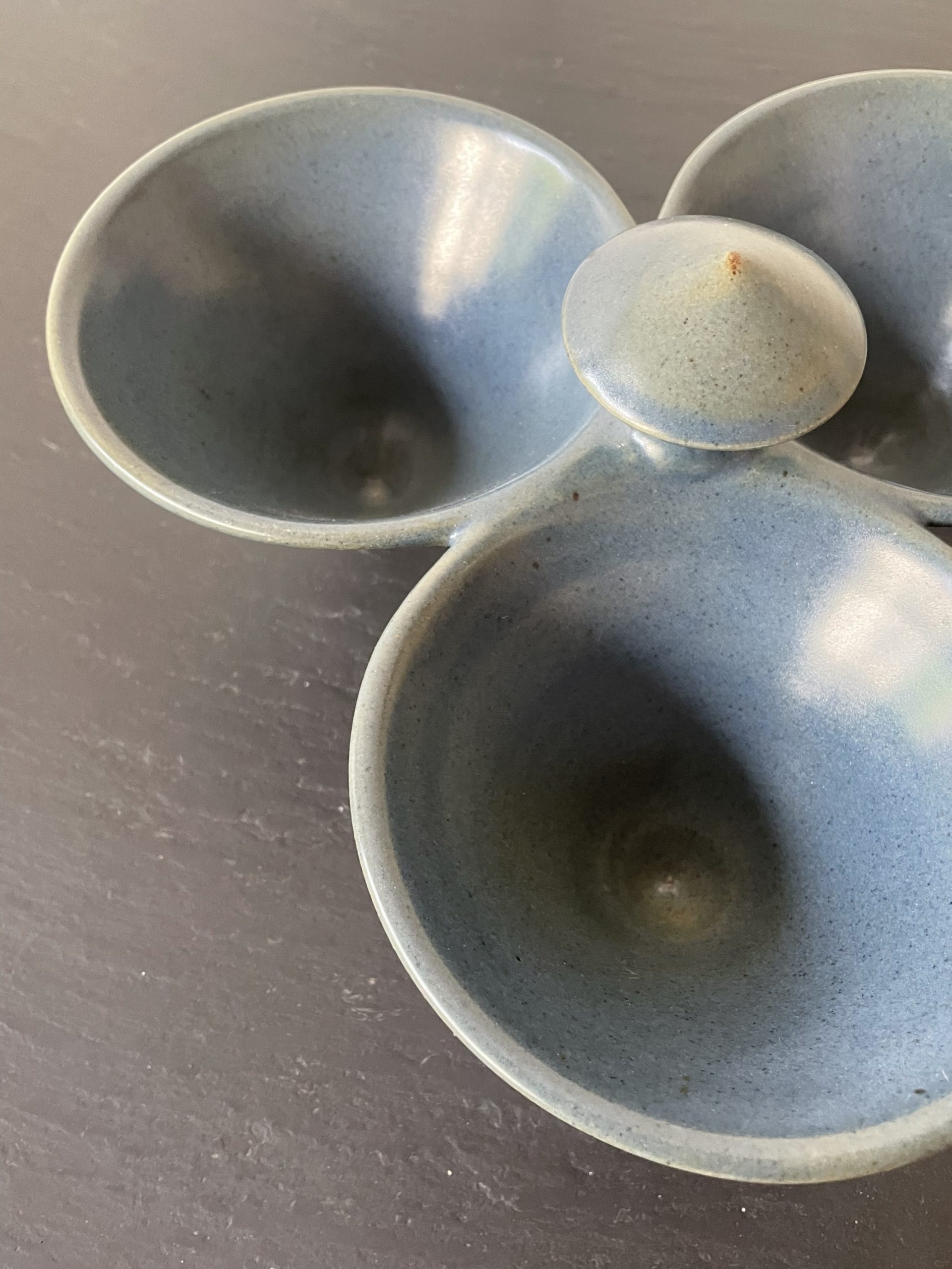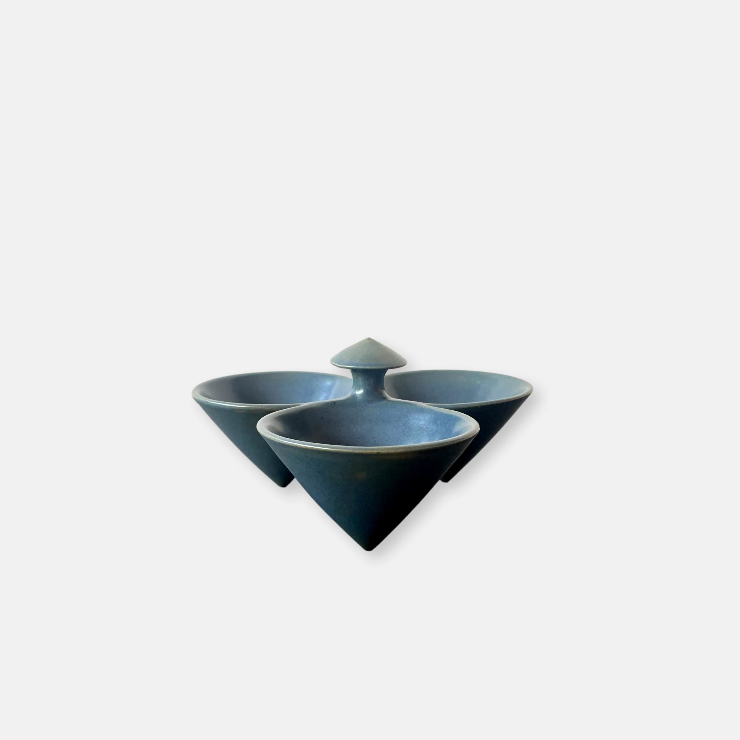 Produit venduCoupe apéritif tripode en céramique émaillée de couleur bleue comprenant 3 contenants.