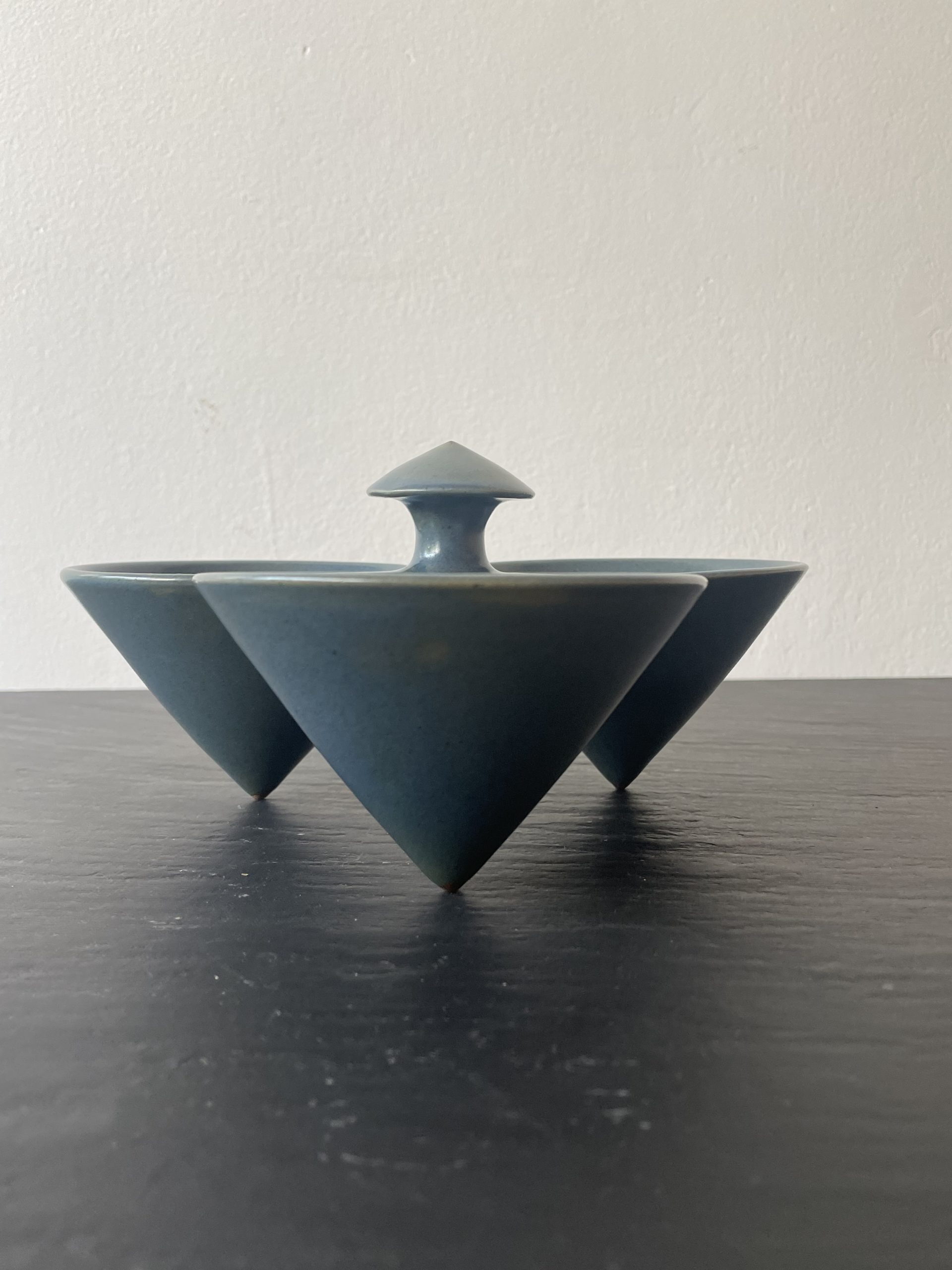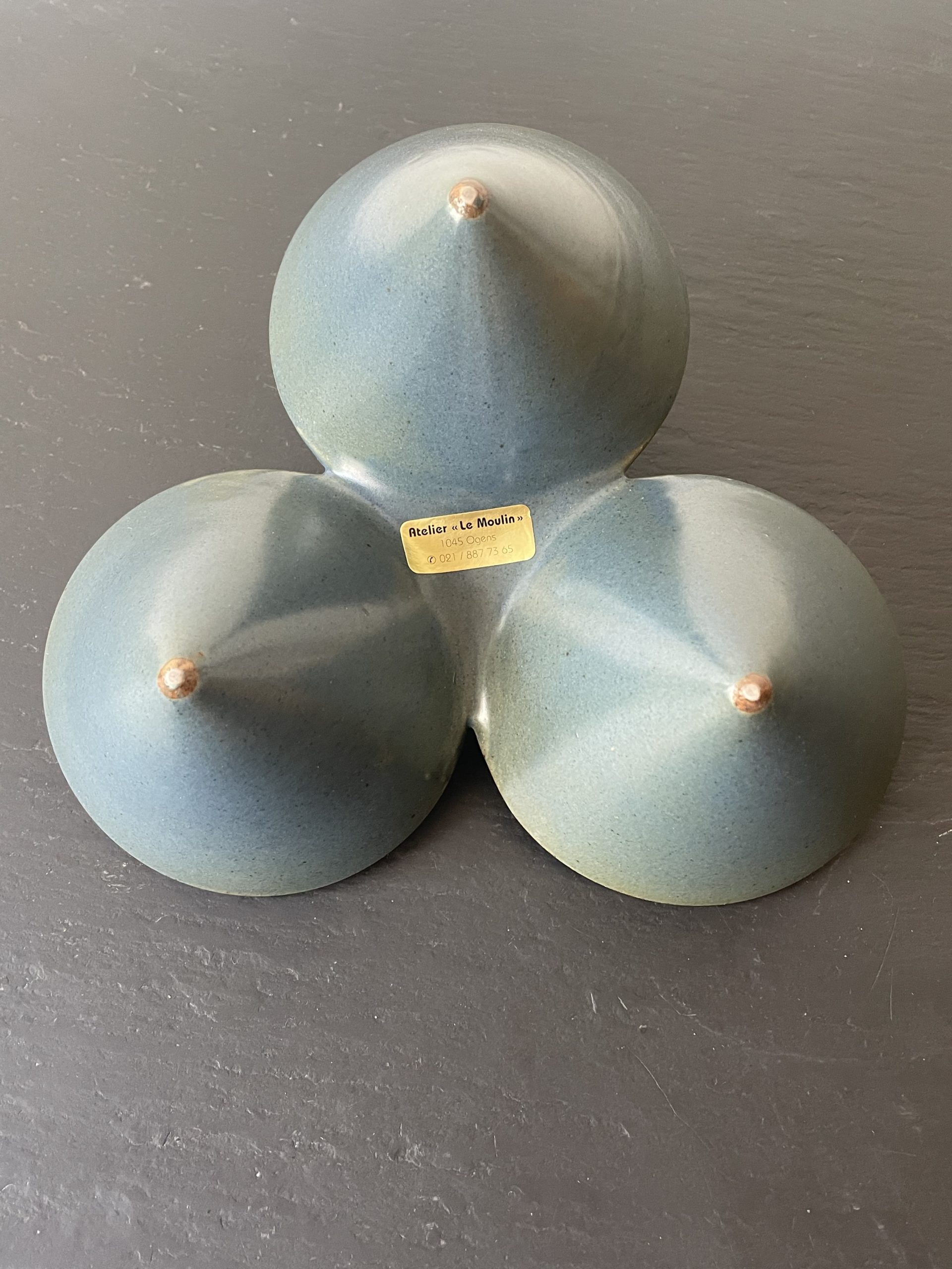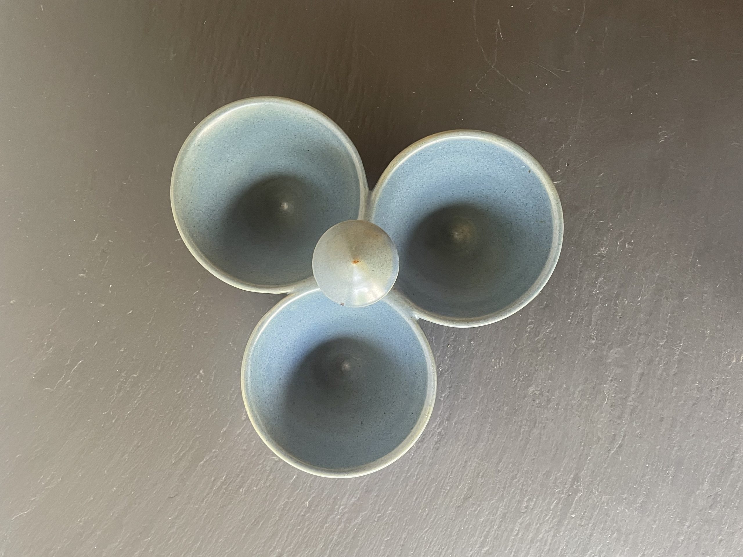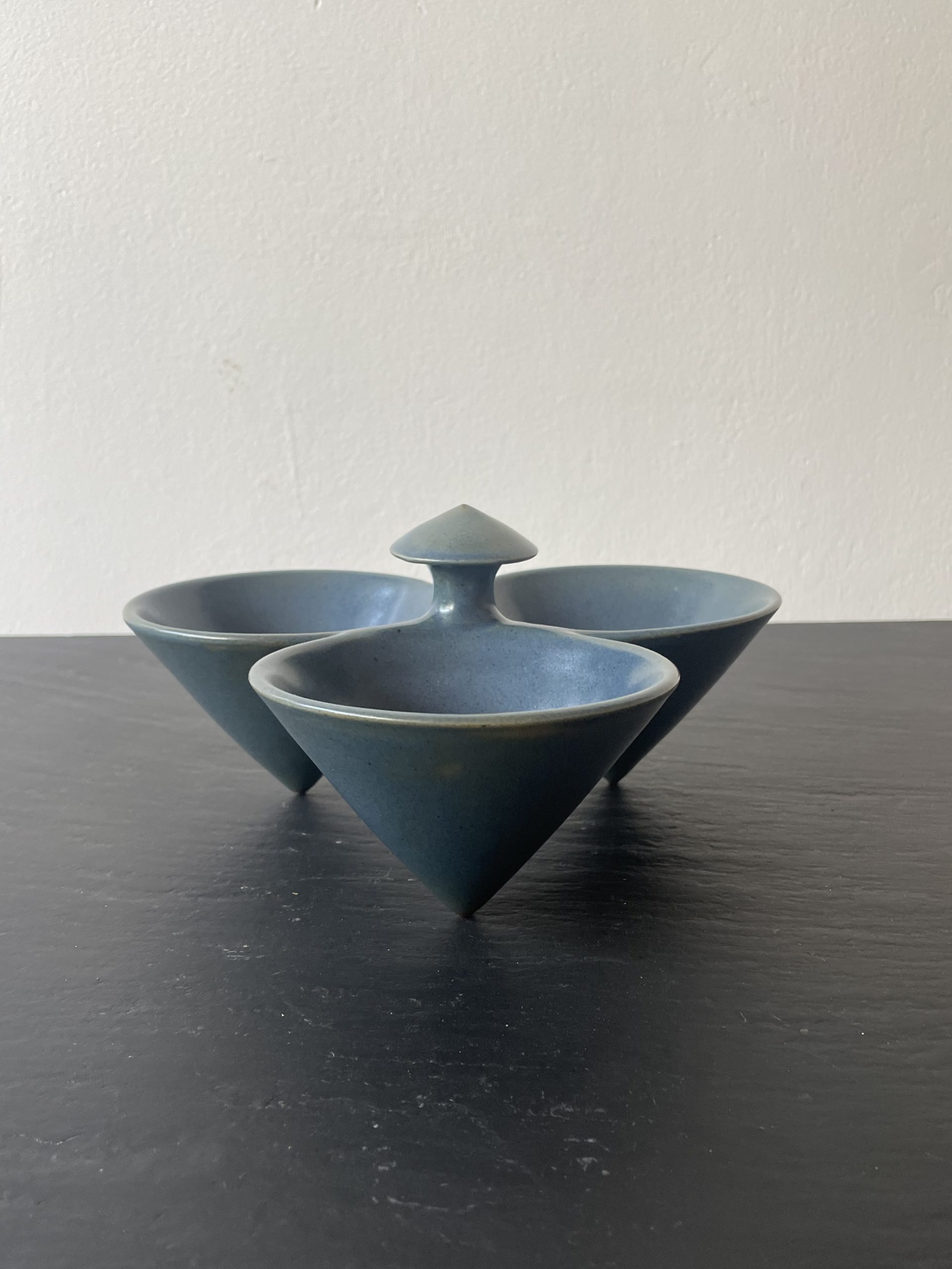 Produit venduCoupe apéritif tripode en céramique émaillée de couleur bleue comprenant 3 contenants.