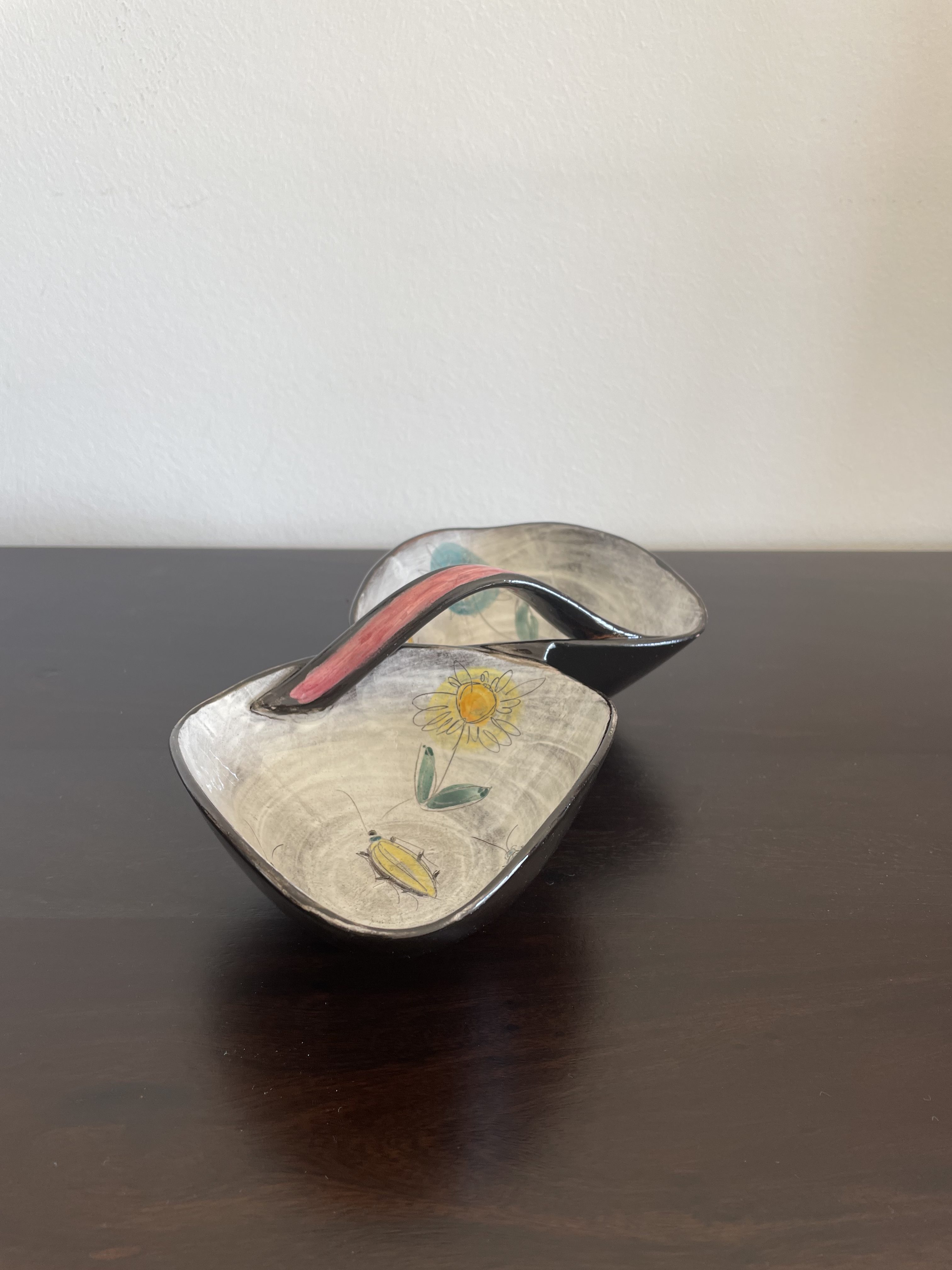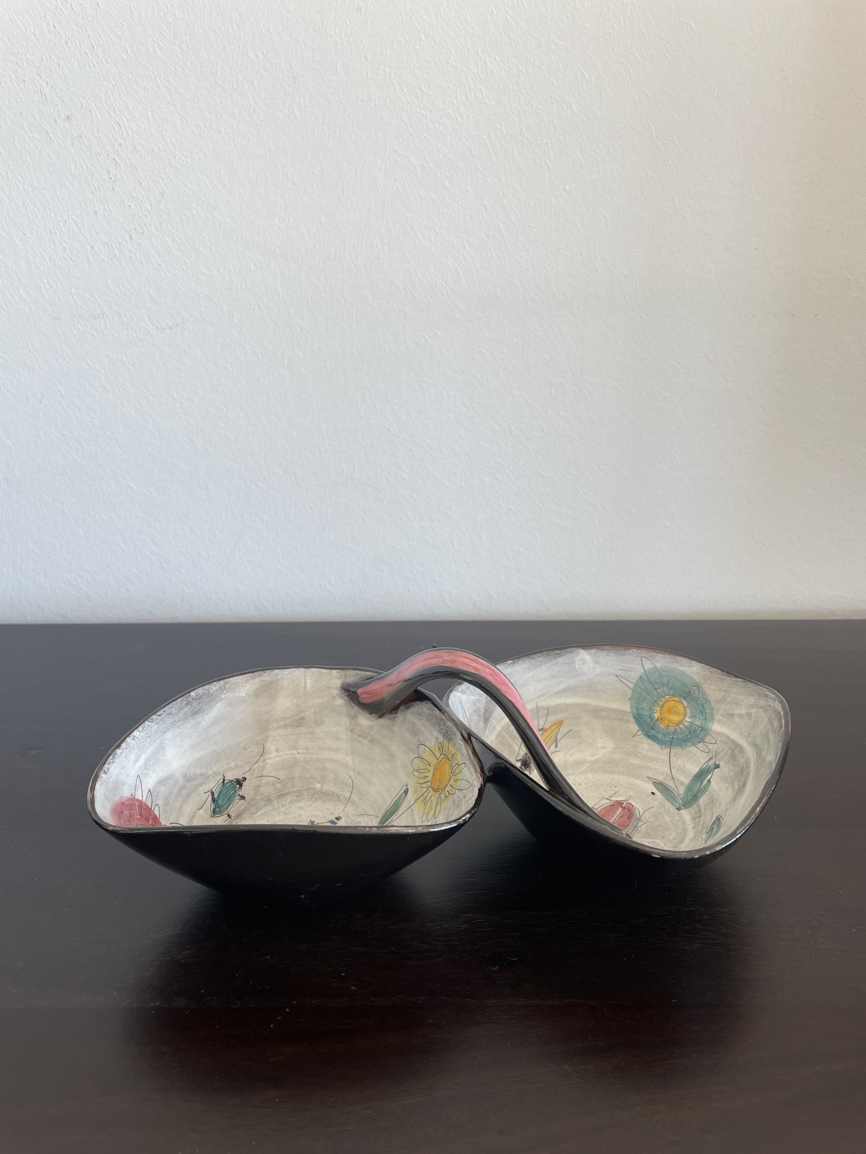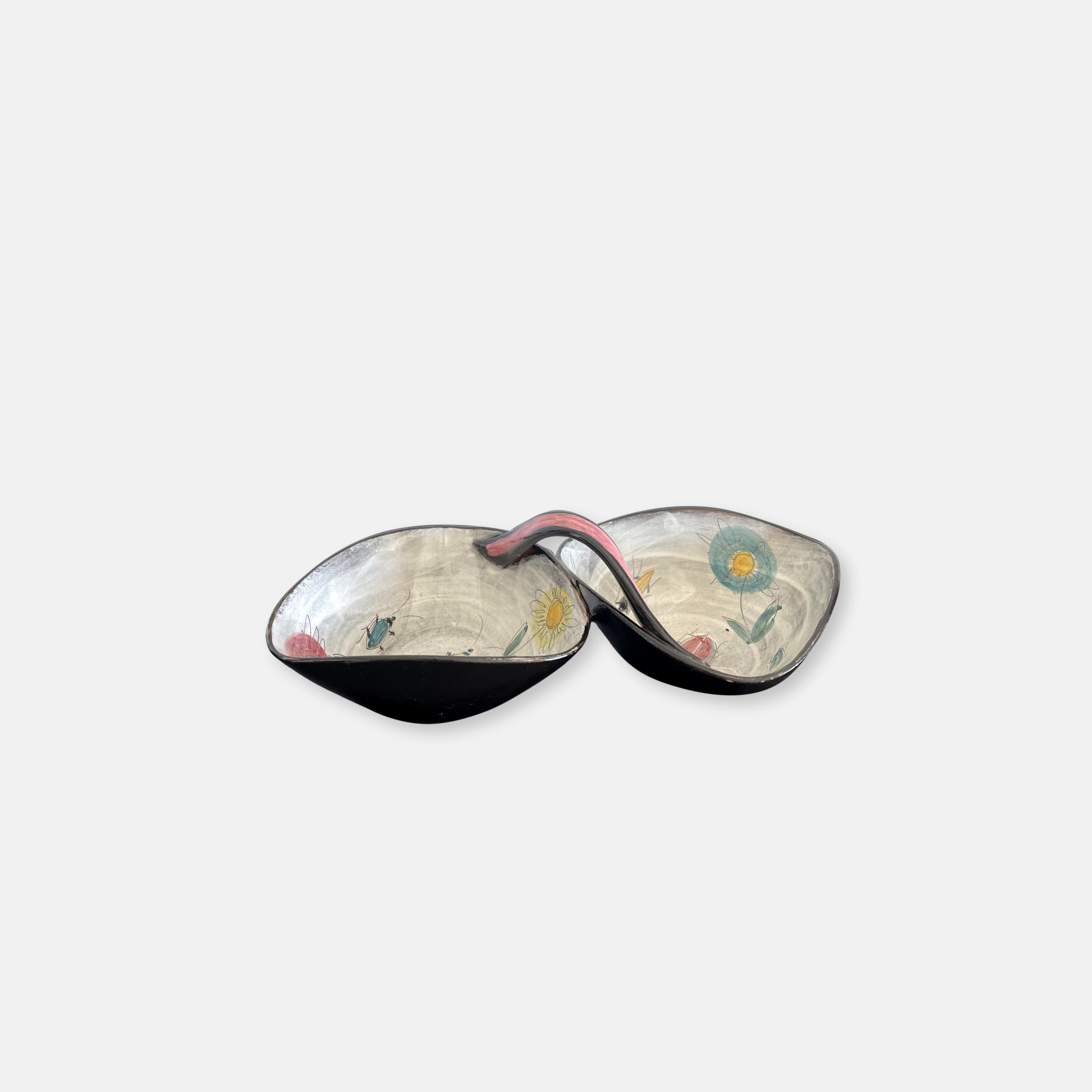 Produit venduJolie coupelle double en céramique Suisse années 50/60 au décor végétal et animal.