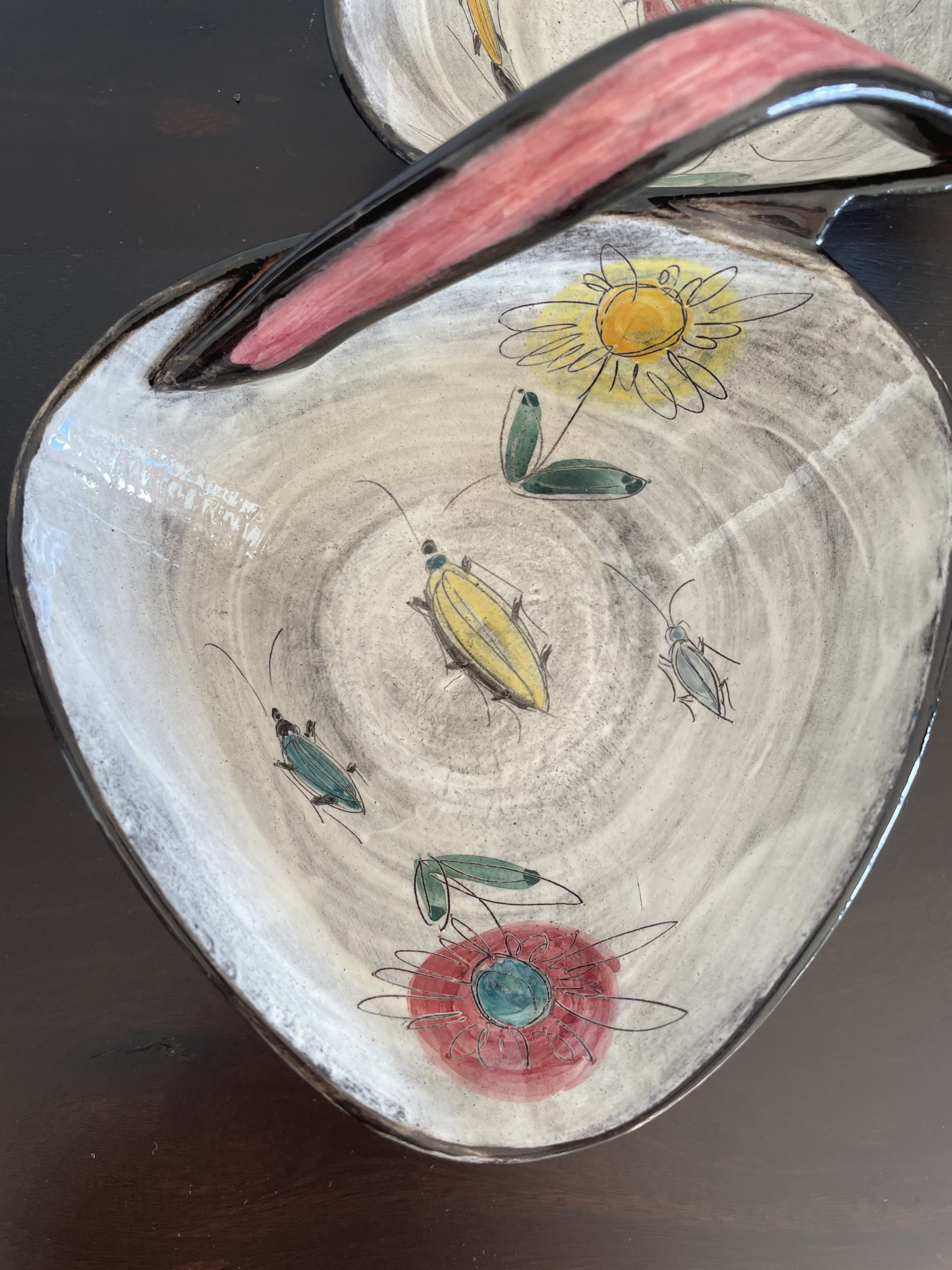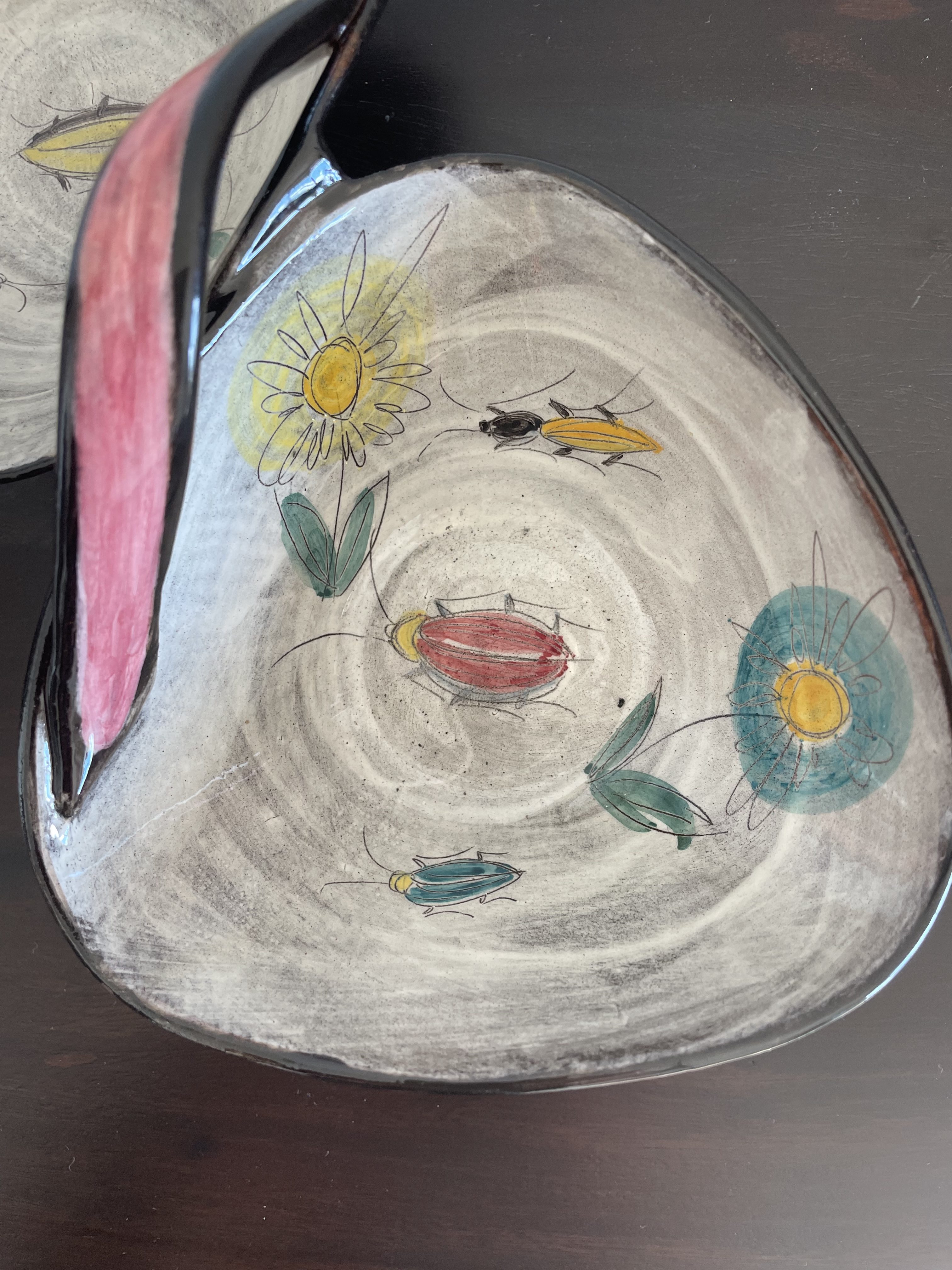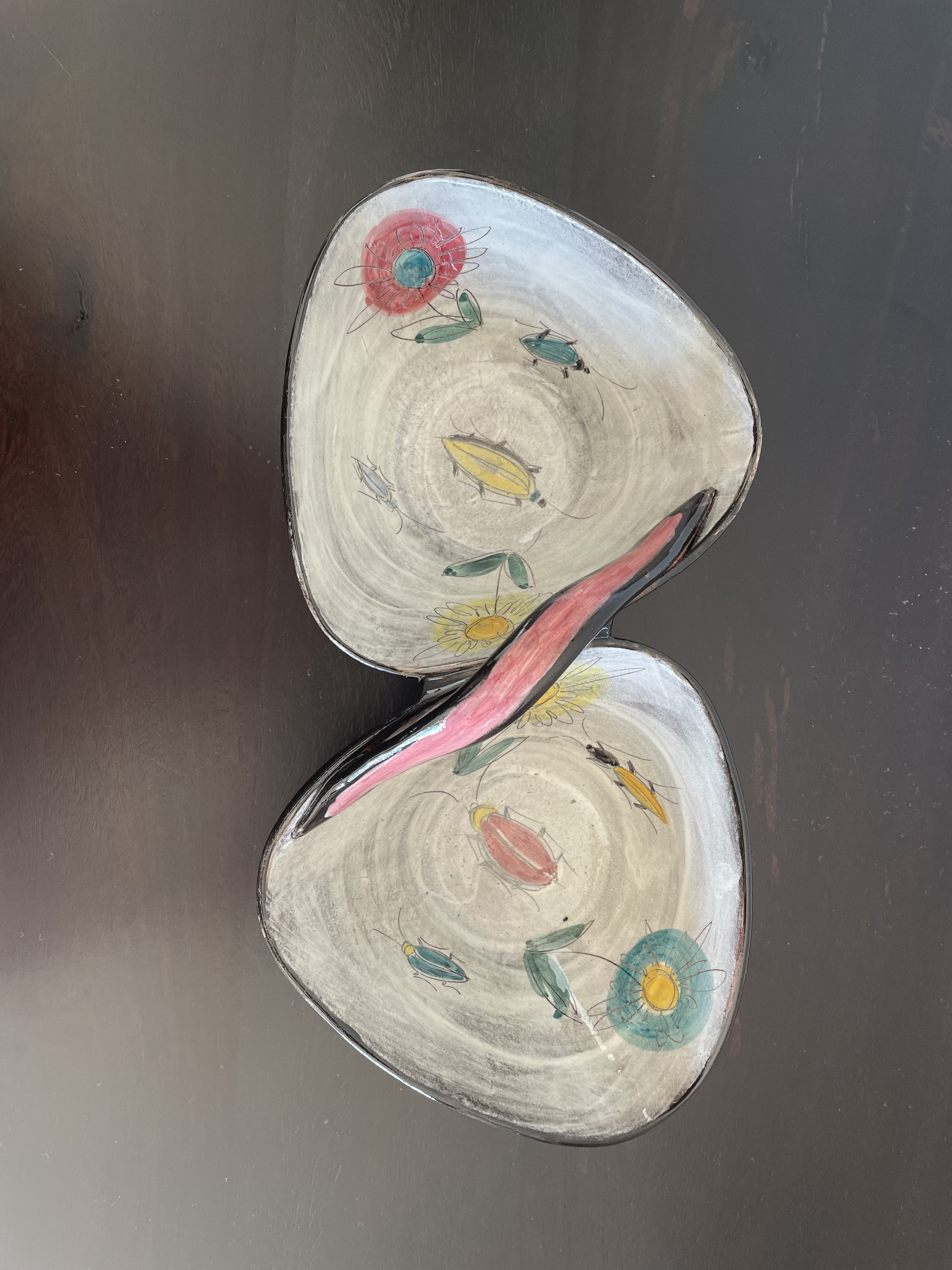 Produit venduJolie coupelle double en céramique Suisse années 50/60 au décor végétal et animal.