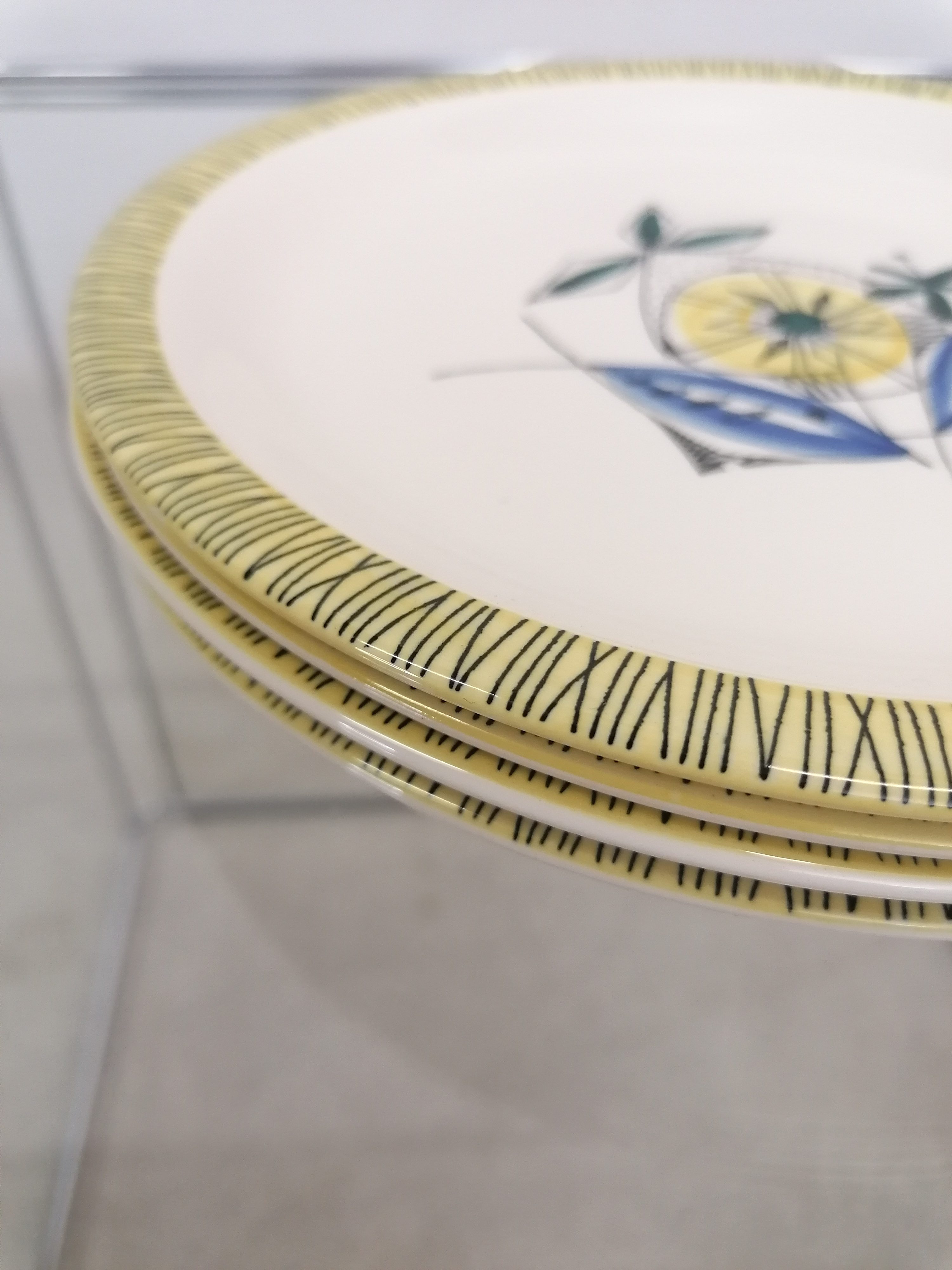 Produit venduLot de 4 assiettes vintage. Produites par l’entreprise Stavangerflint à Stavanger (Norvège) dans les années 50. Modèle bambou dessiné par Inge Waage.