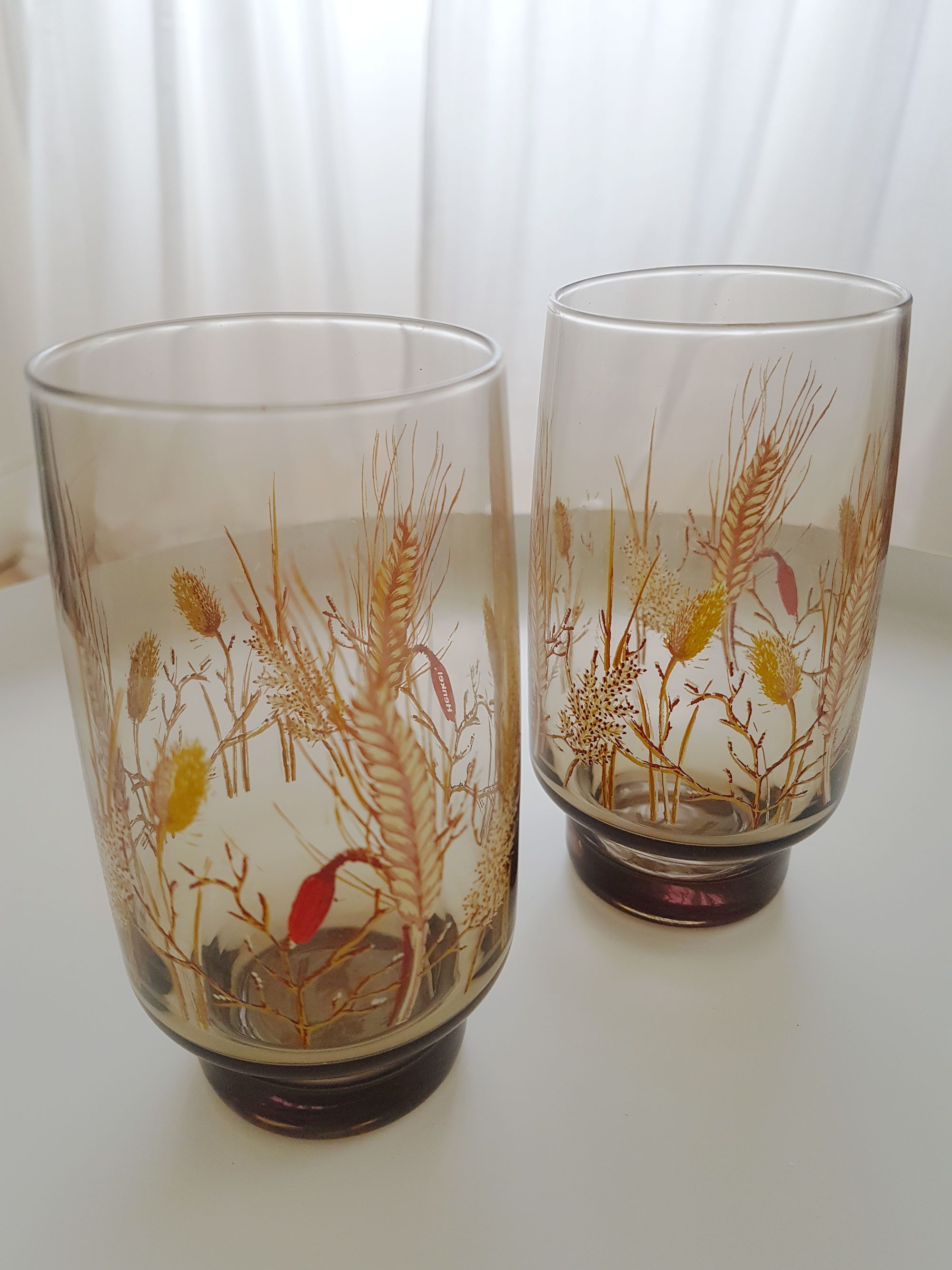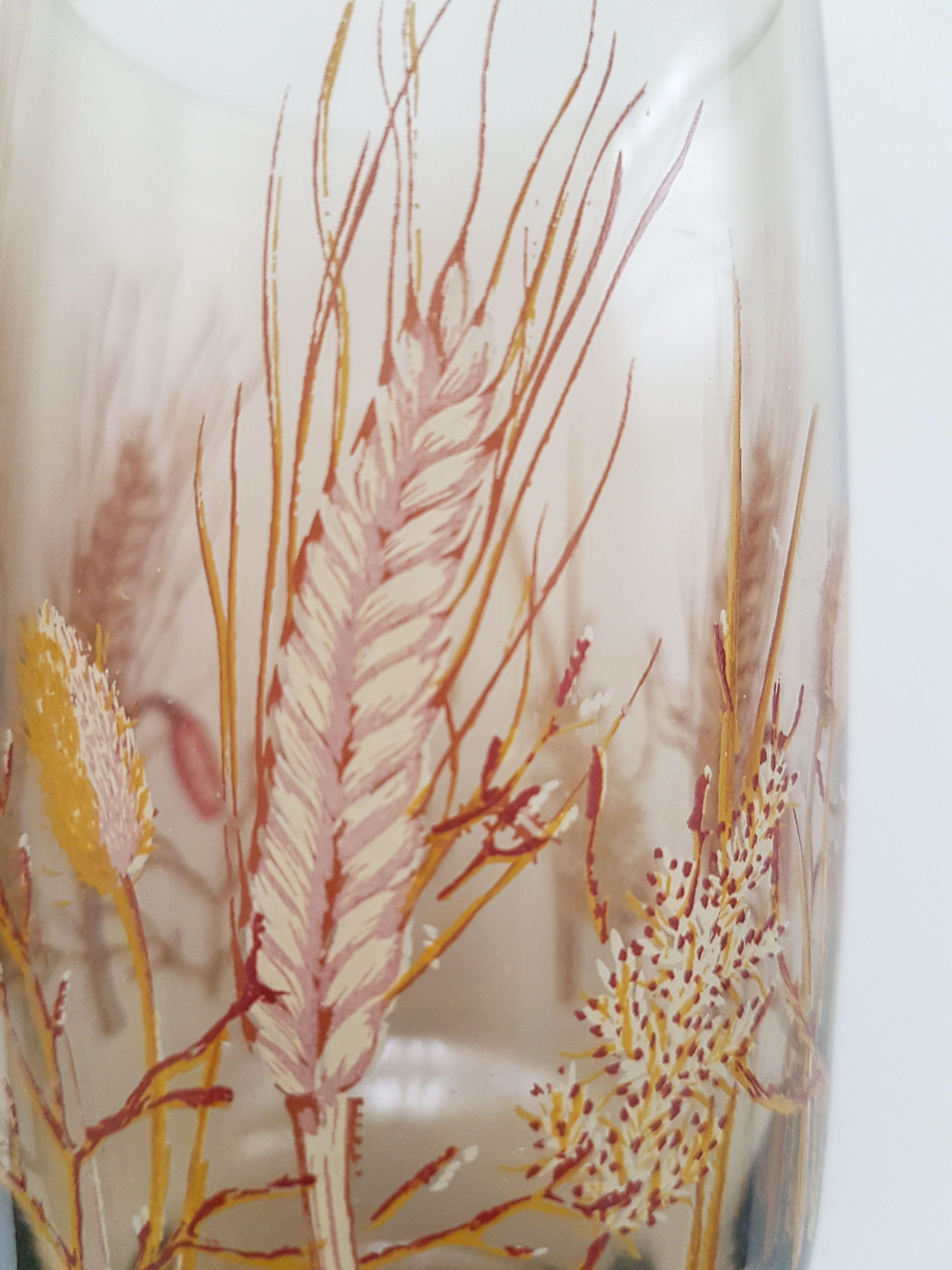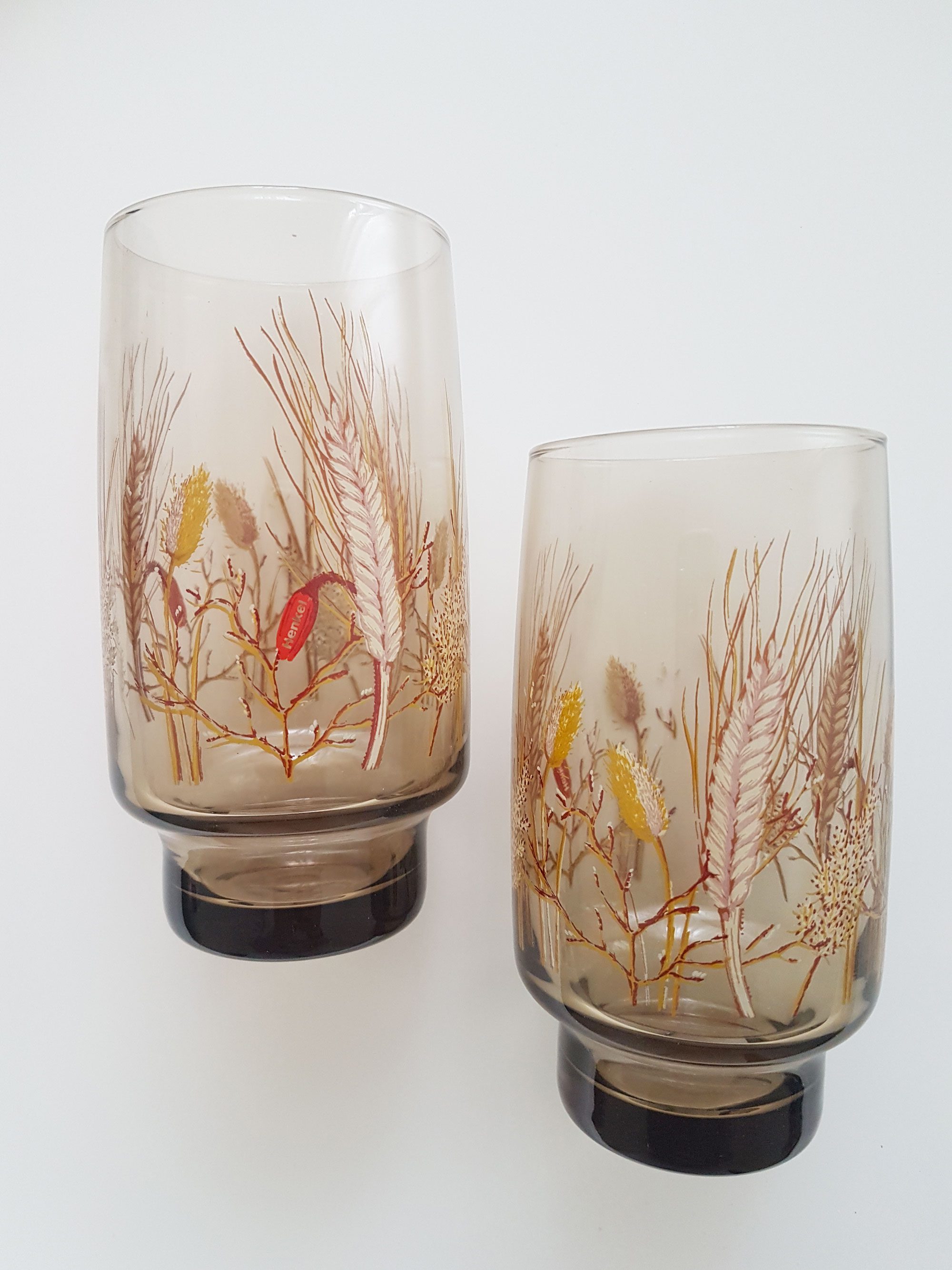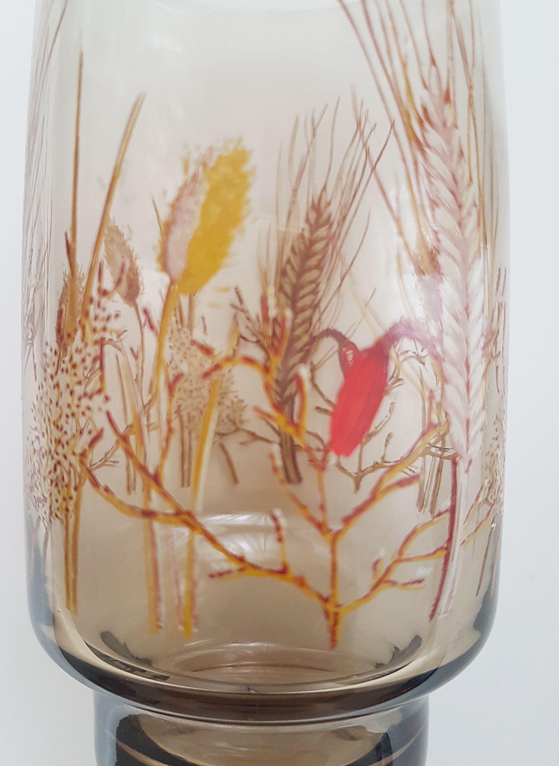 Produit venduVerres à eau “épis” en verre fumé avec socle conique. Décor champêtre représentant différentes graminées.
