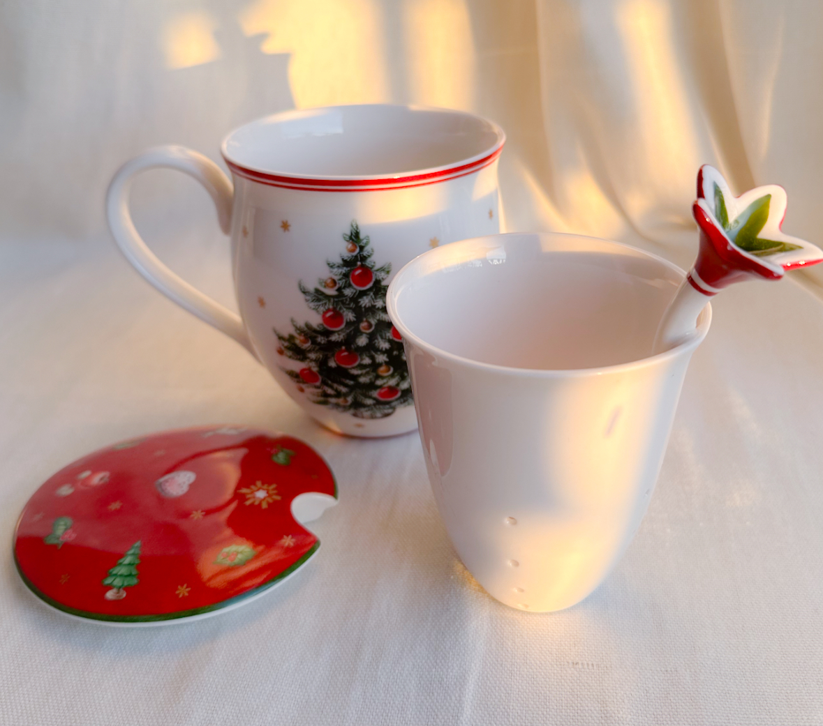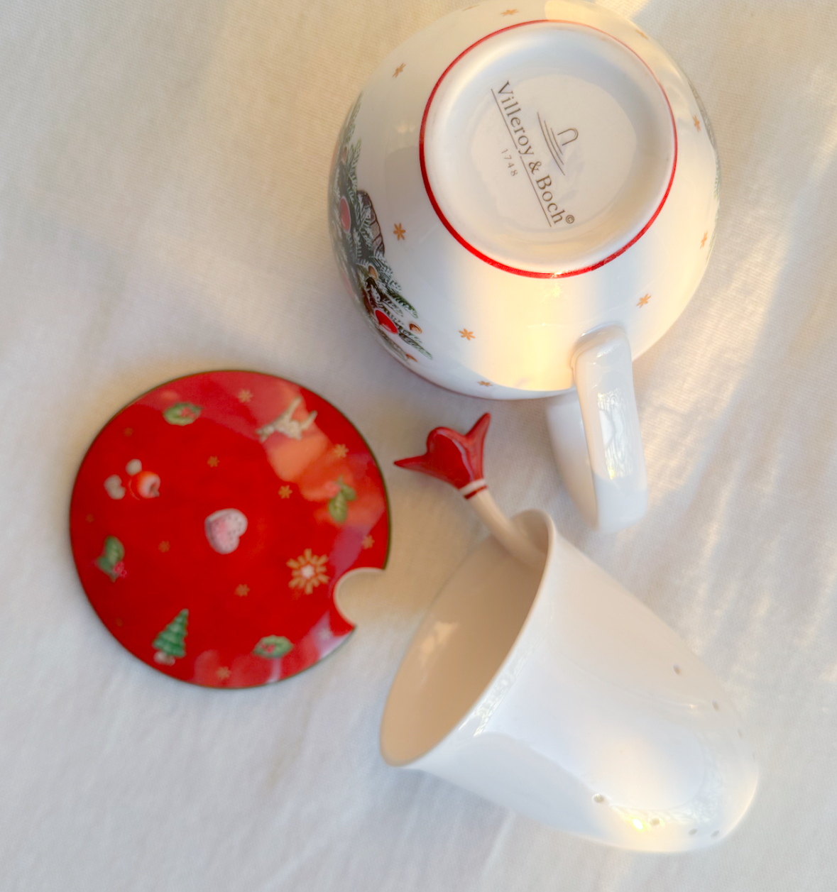Adorable mug de Noël avec sa petite passoire en porcelaine Villeroy&Boch