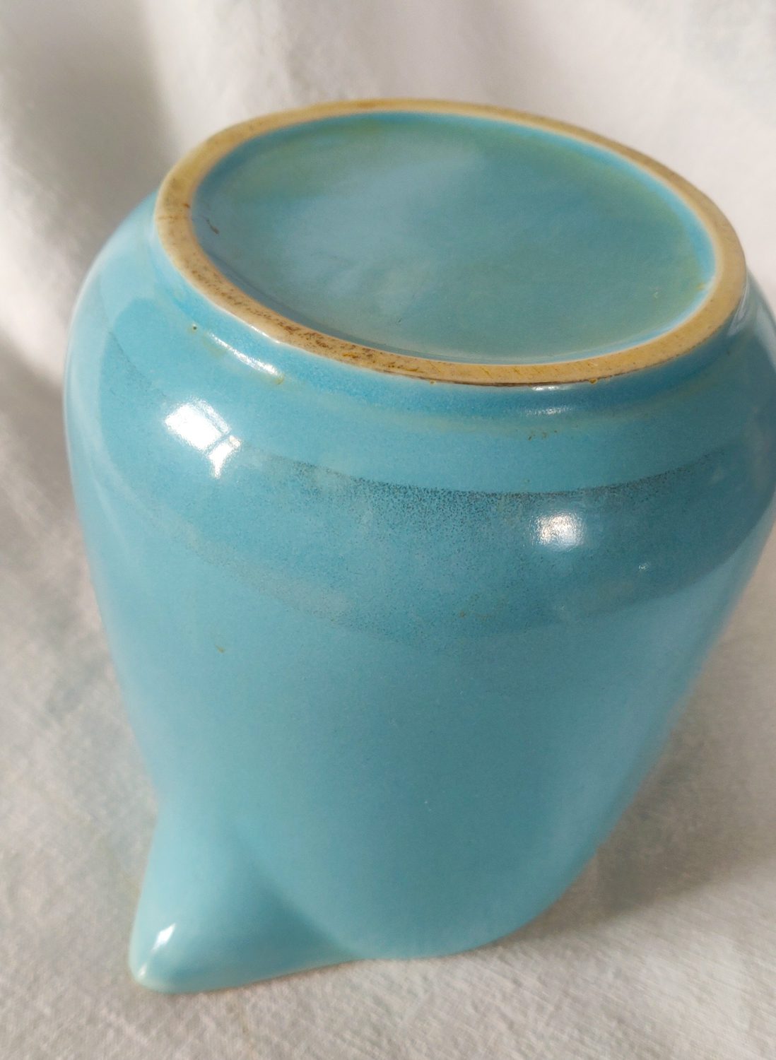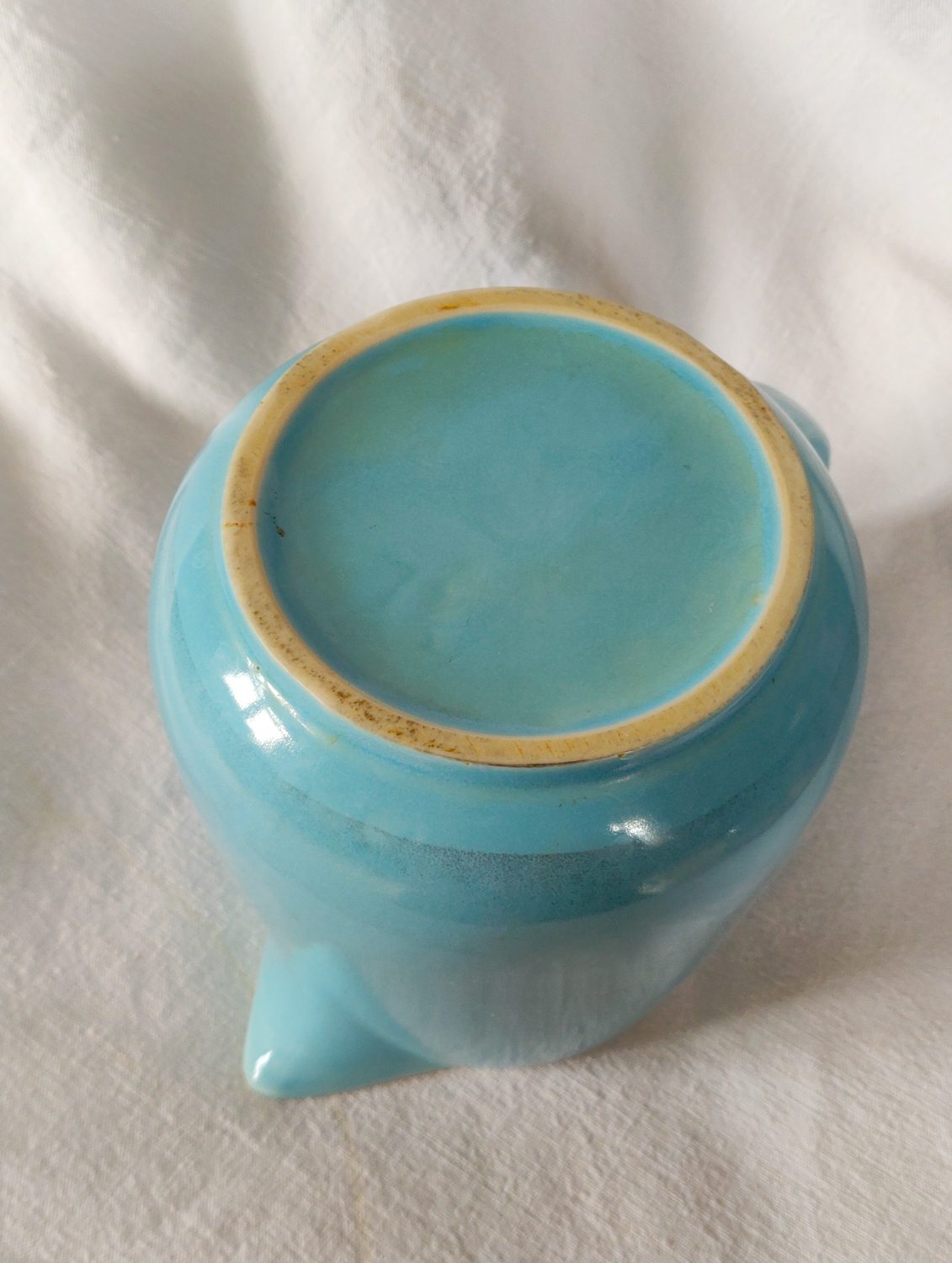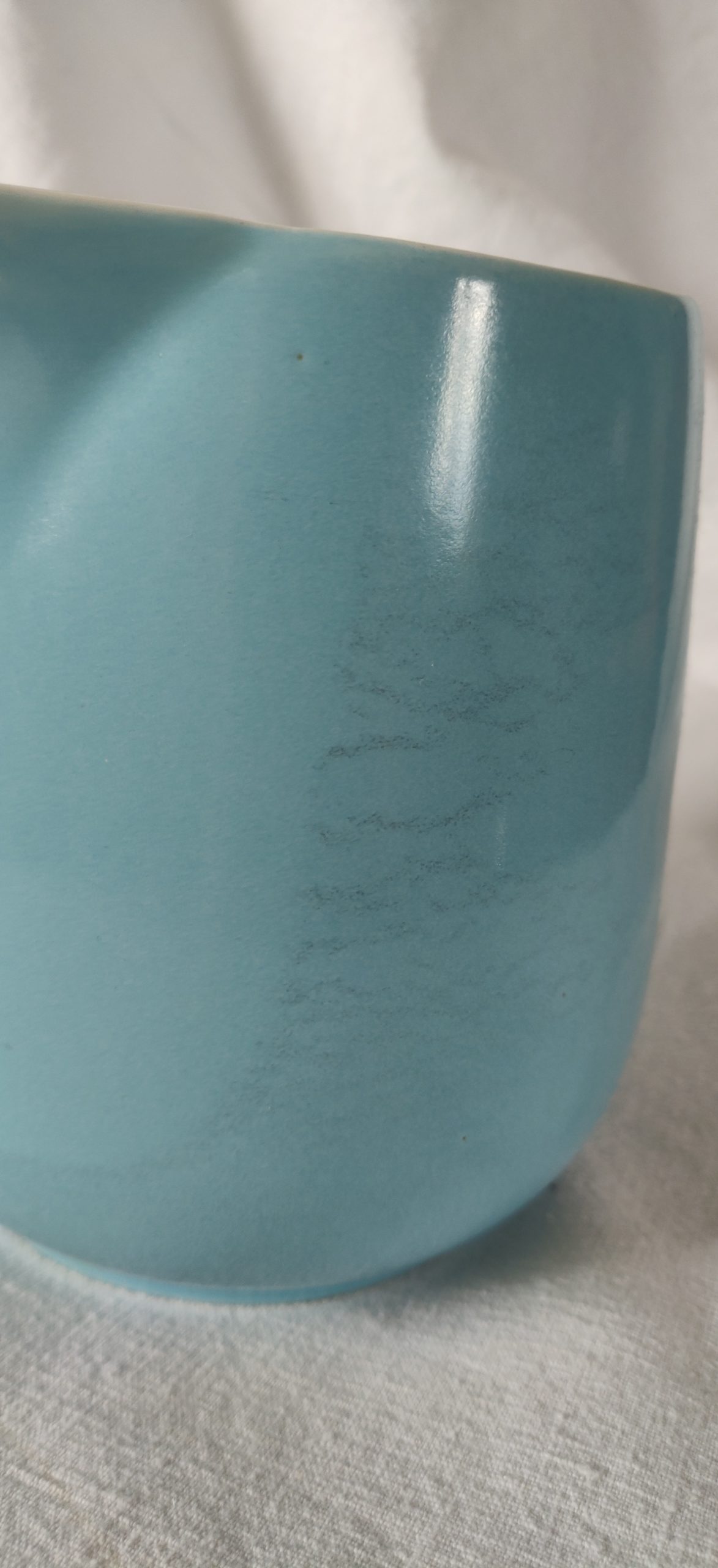 Aucune ébréchure, mais quelques marques du temps sur la faïence, notamment des marques grises (voir photo).