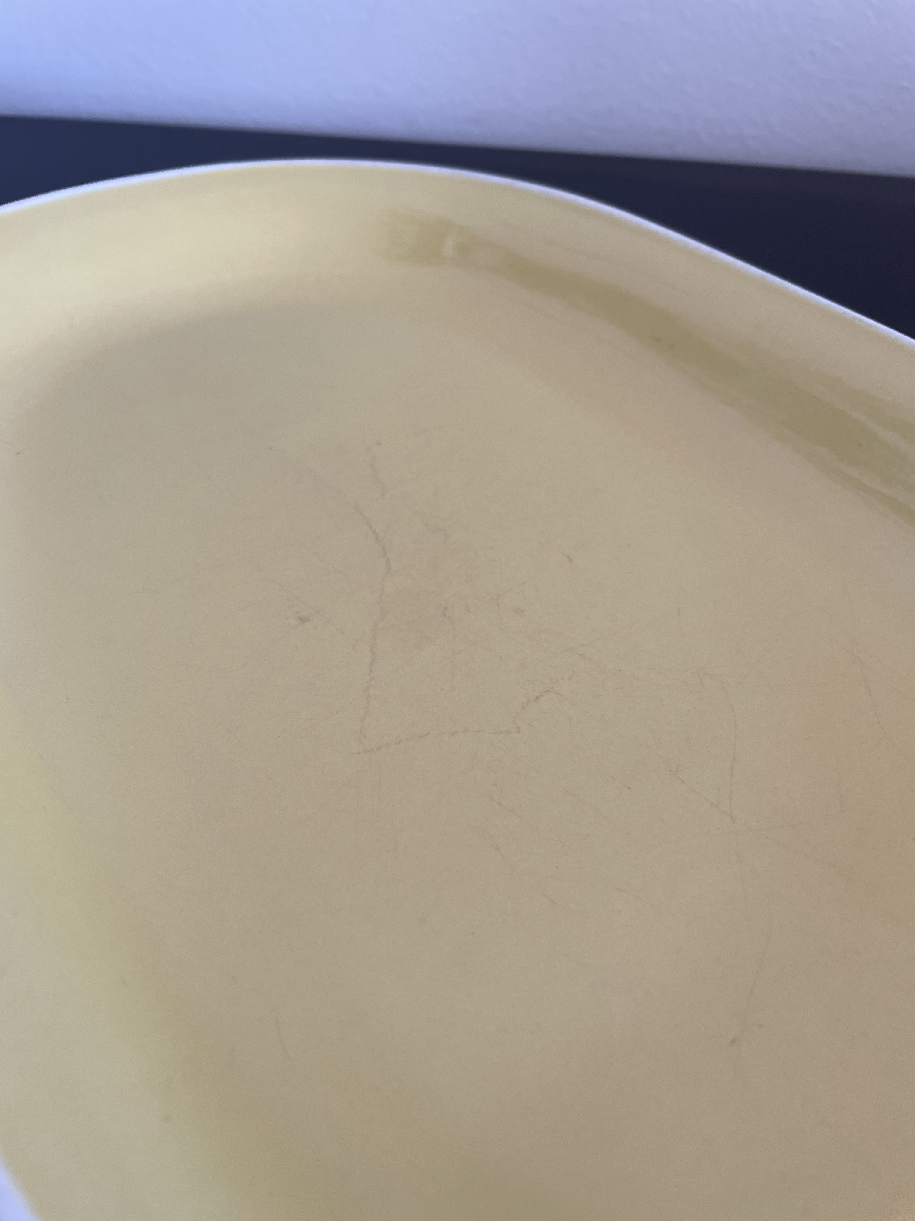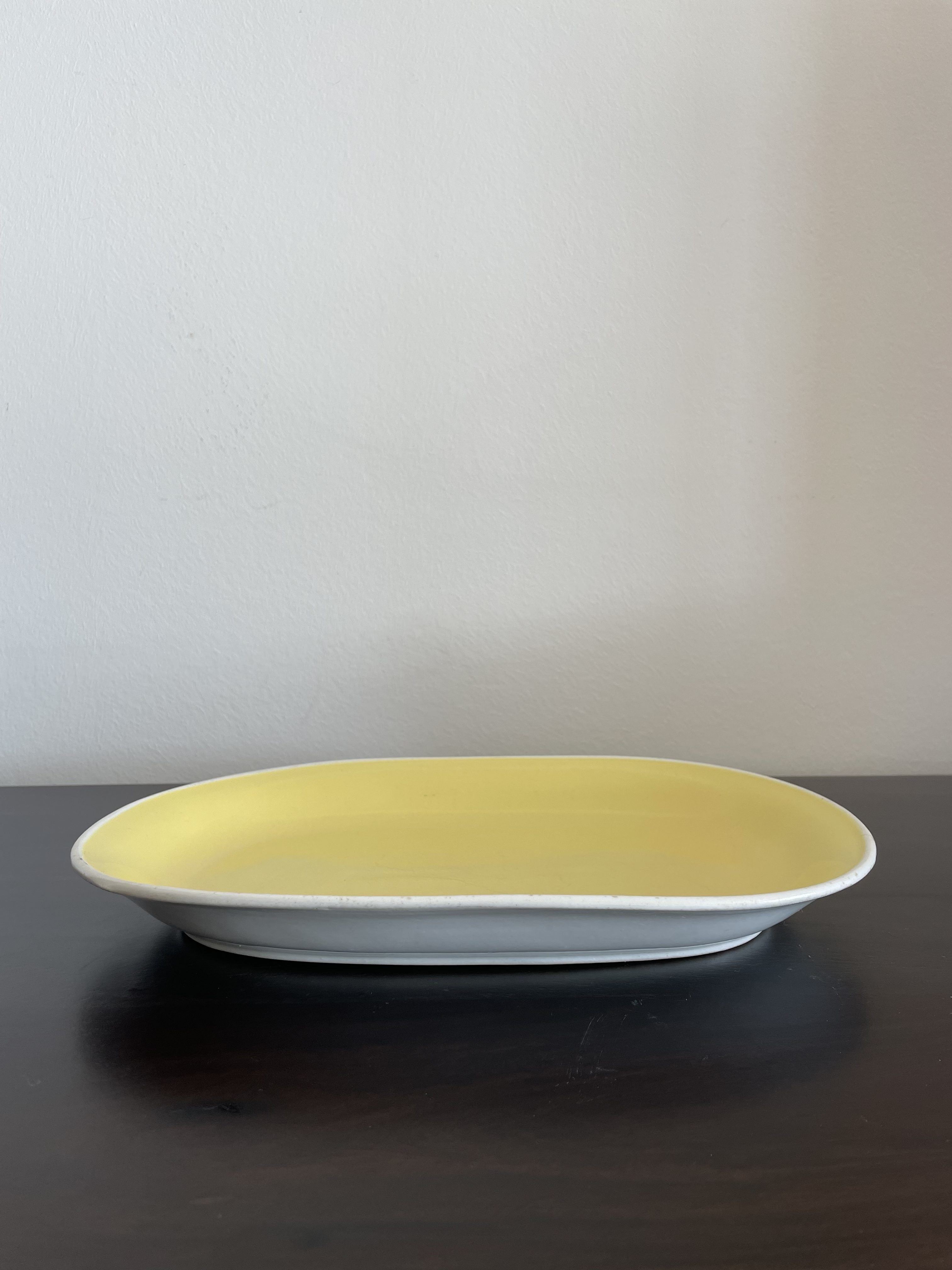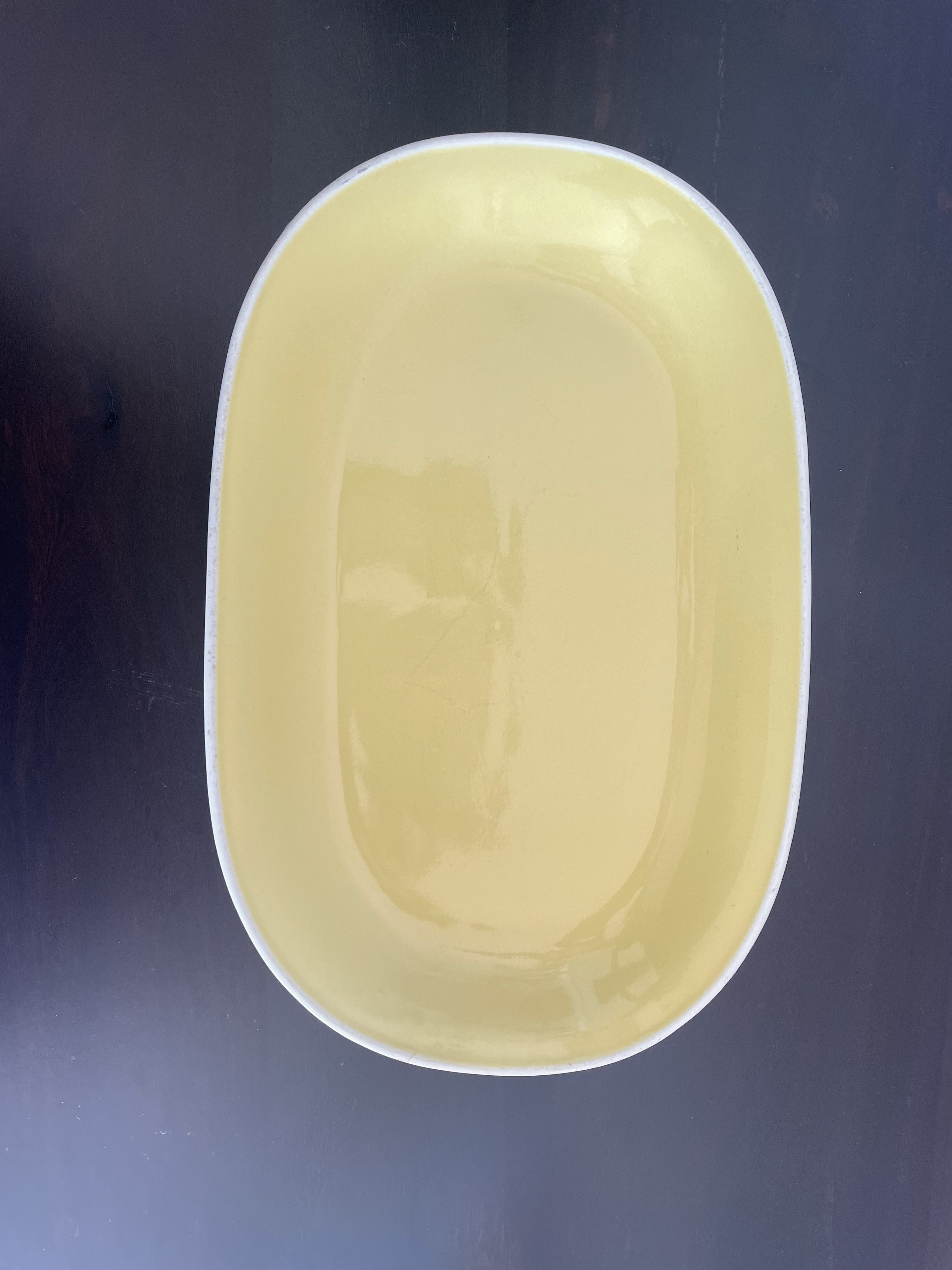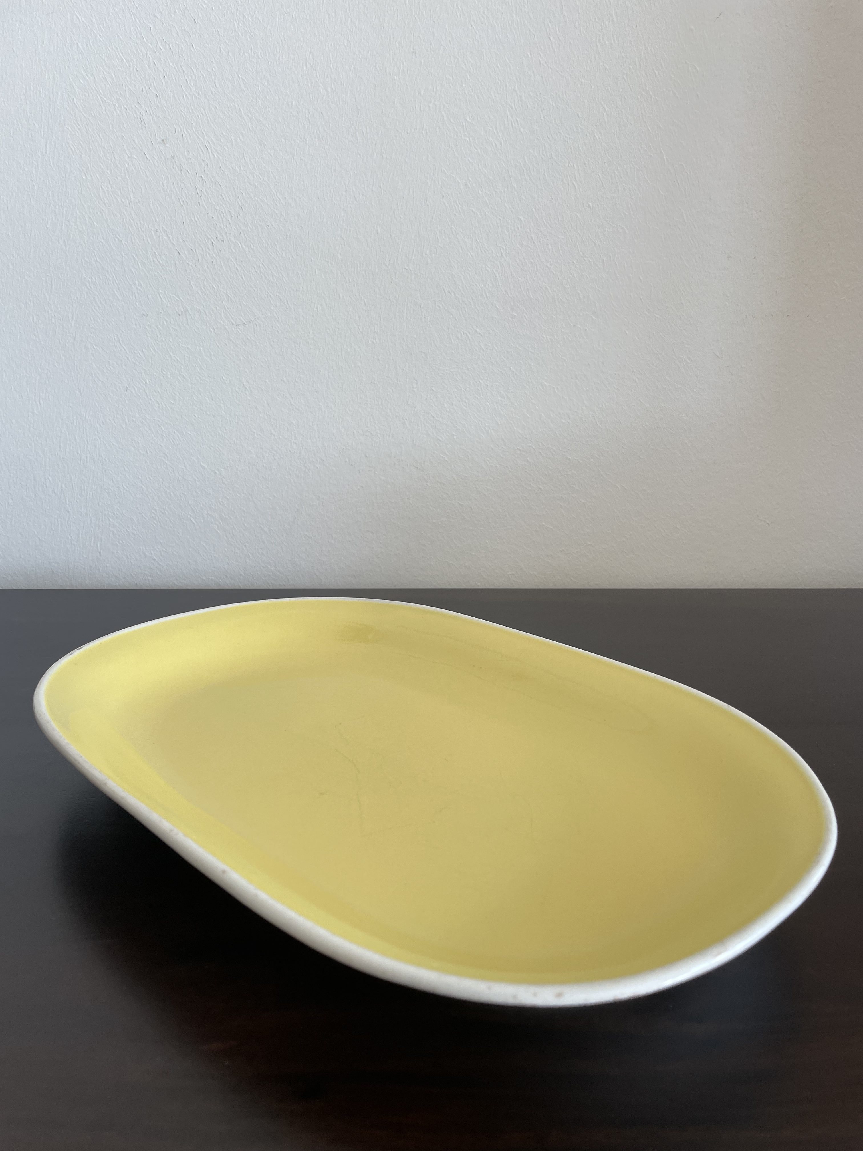 Produit venduGrand plat de service Rössler circa années 50/60 en céramique de couleur jaune et blanche.